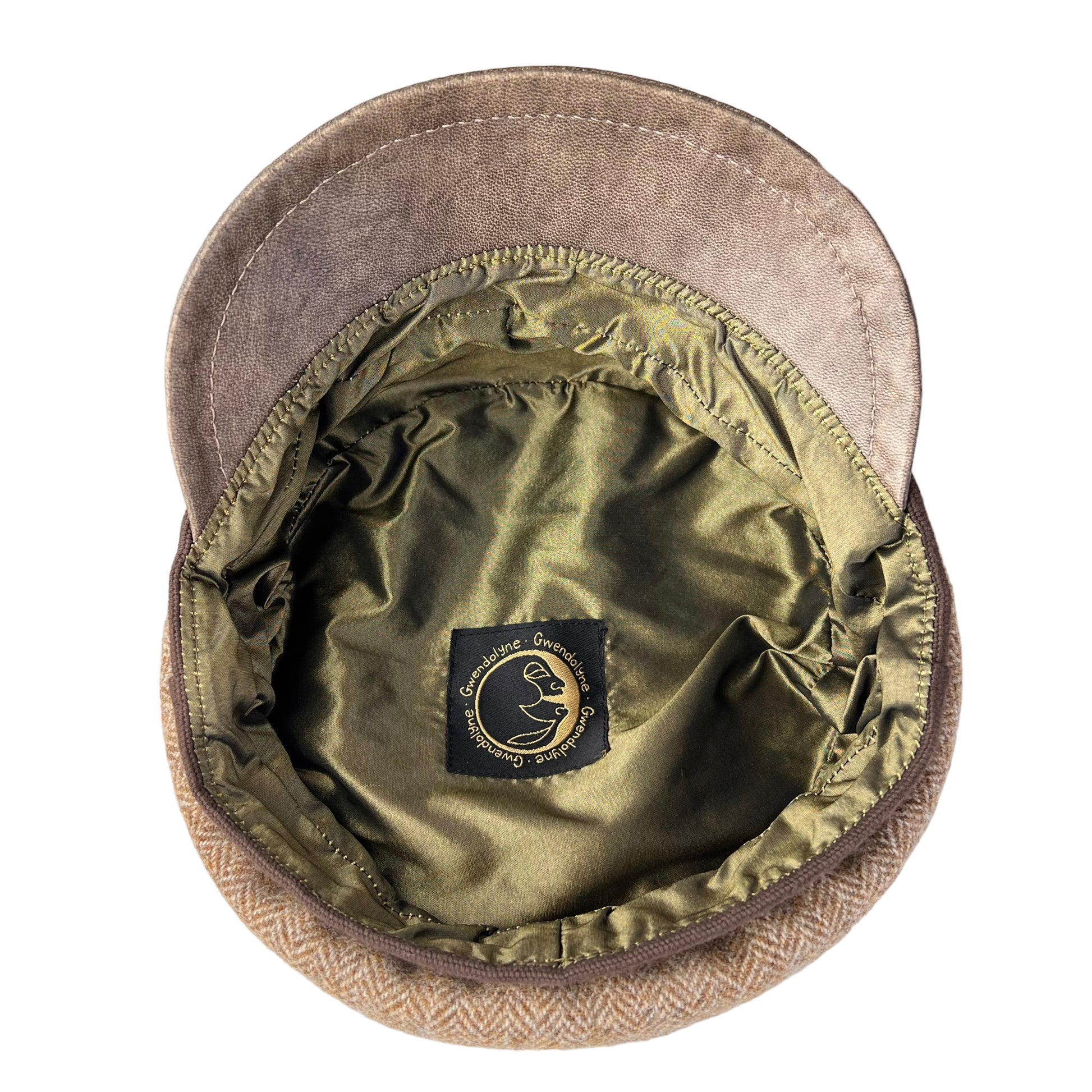 The lining is cut from a olive green taffeta silk which makes the cap very breathable and eliminates hat hair, due to the natural choice of materials.