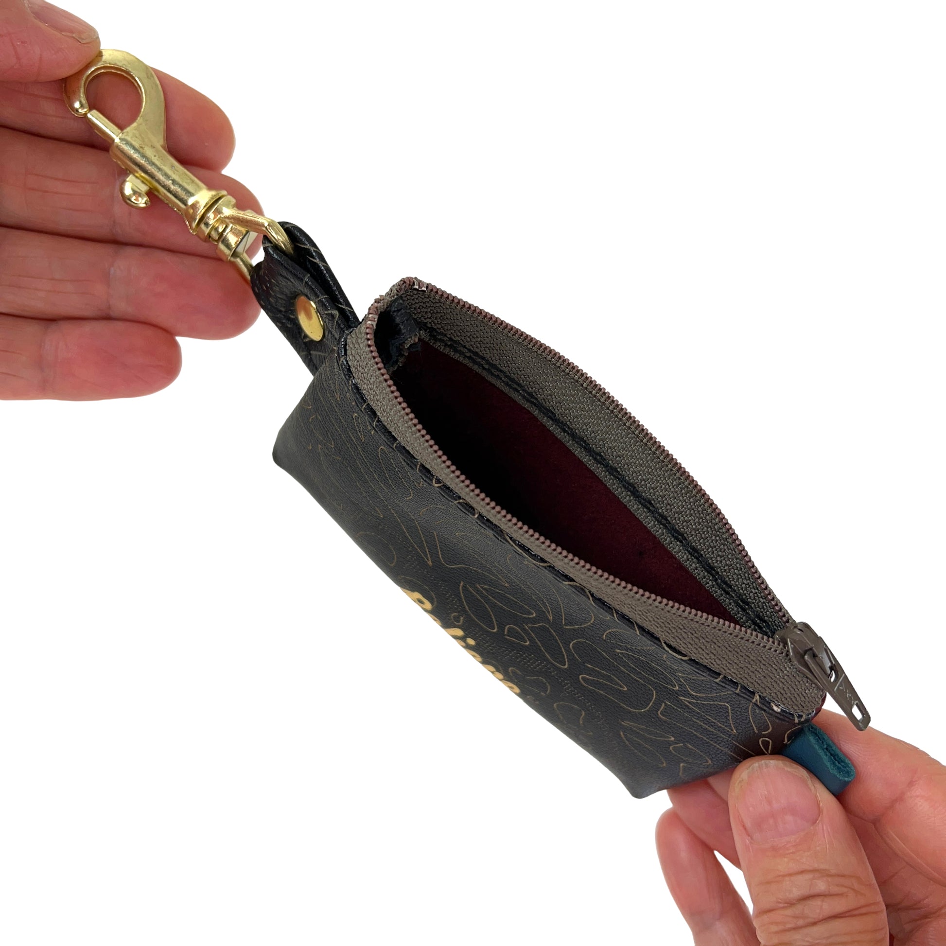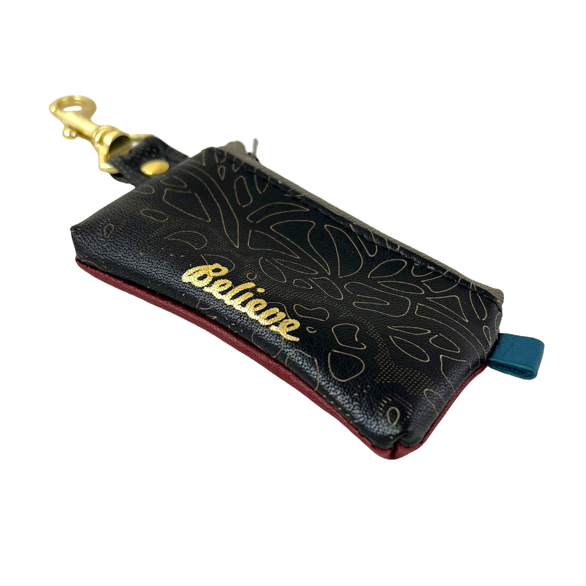 This "BELIEVE" attachable zipper Positive Change / Card purse is made from hand cut lamb leather that has been embossed with gold leaf on both sides. Each one is unique with it's own colour combination. Made to attach to ones key ring.