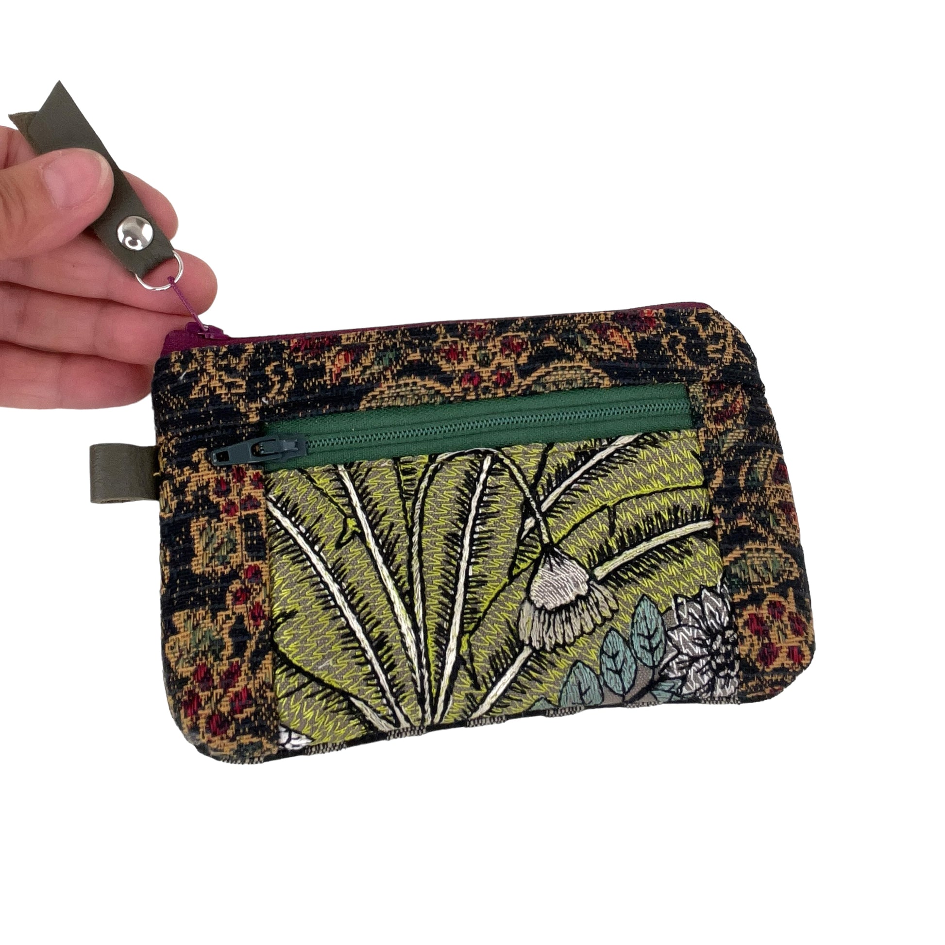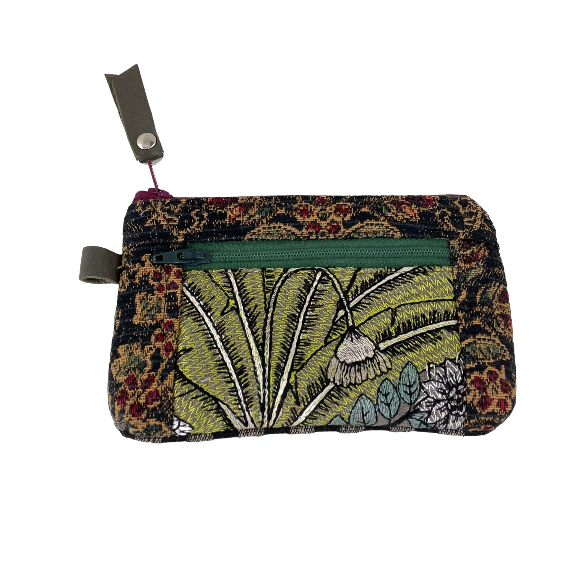Black Green Patchwork Tapestry Zipper Card Wallet