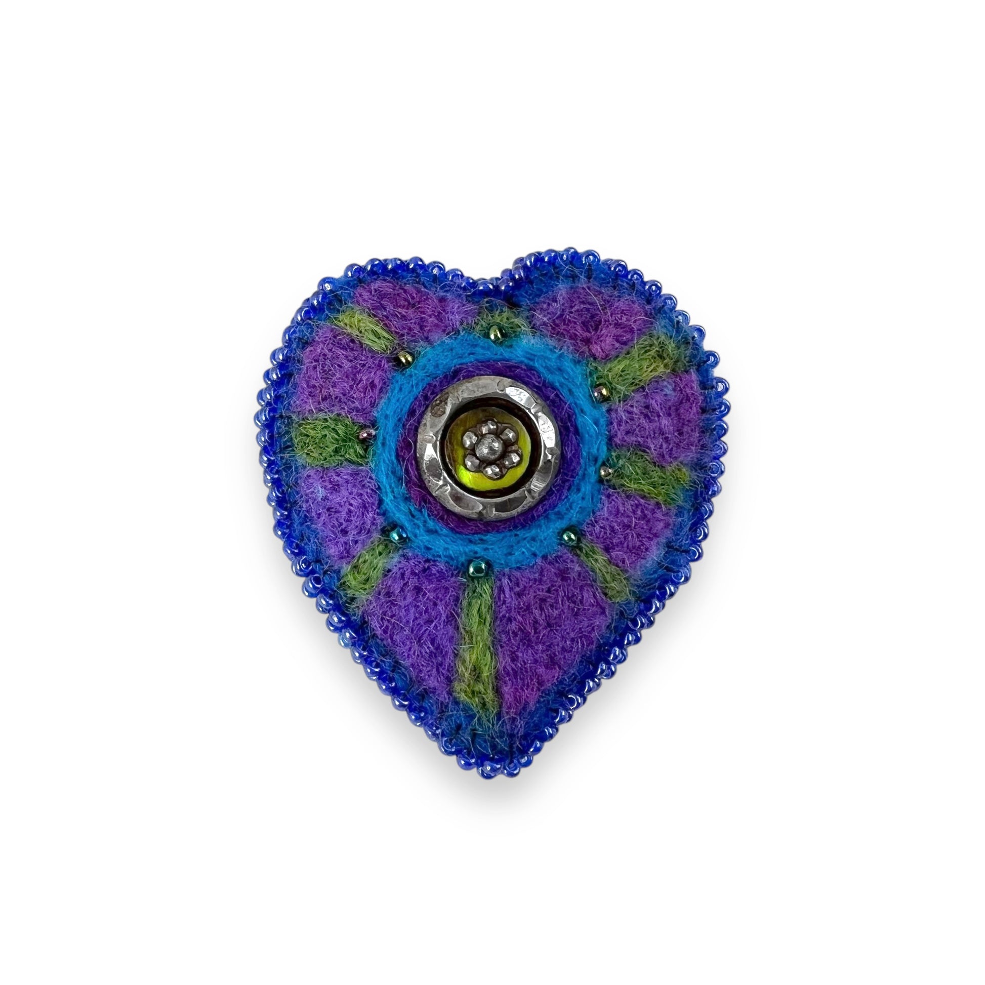 Blue and Purple Hand Felted Heart Brooch edition #15