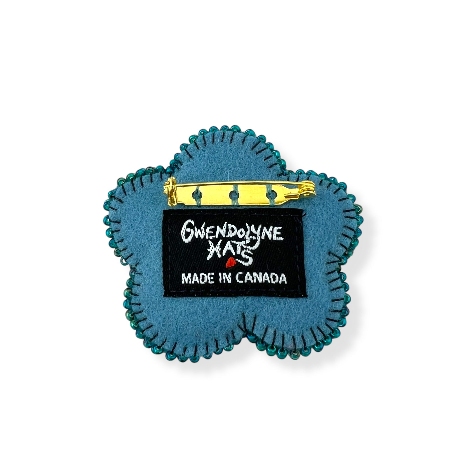 To create this brooch I work with coloured carded wool fleece, needle felting the wool  into this unique design.  Once finished I make a hand sewed beaded border with a lock brooch pin on the back.