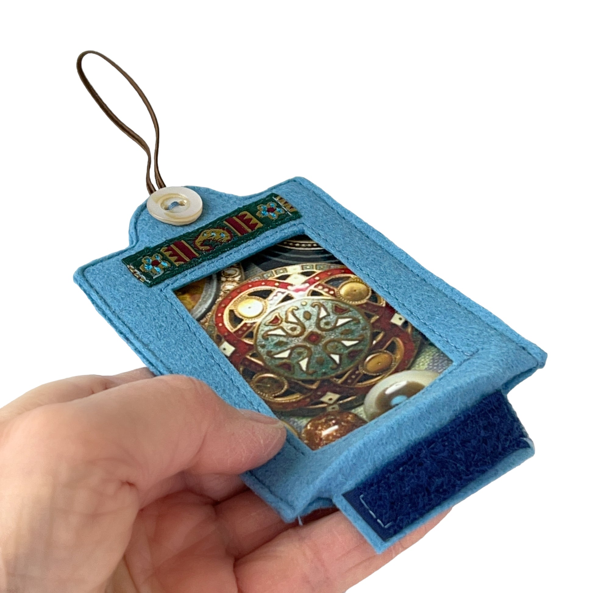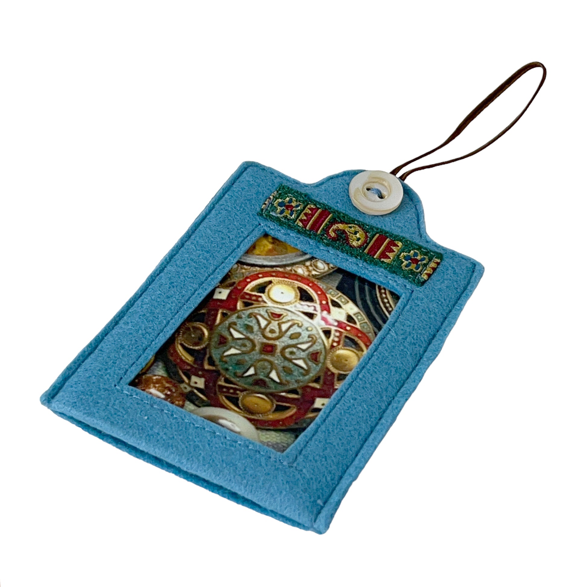 Blue Felt Ornamental Hanging Felt Frame - Antique Enamel Button