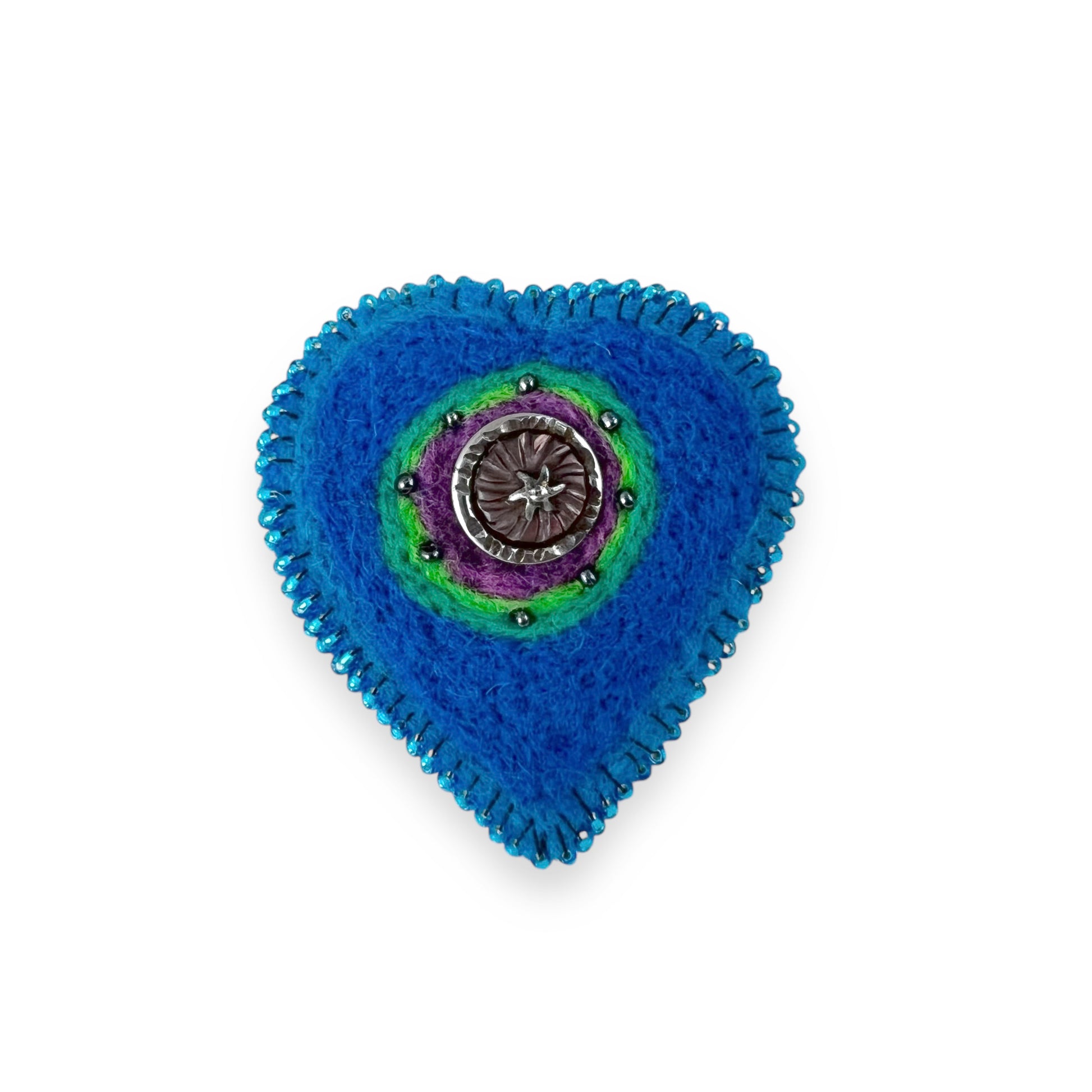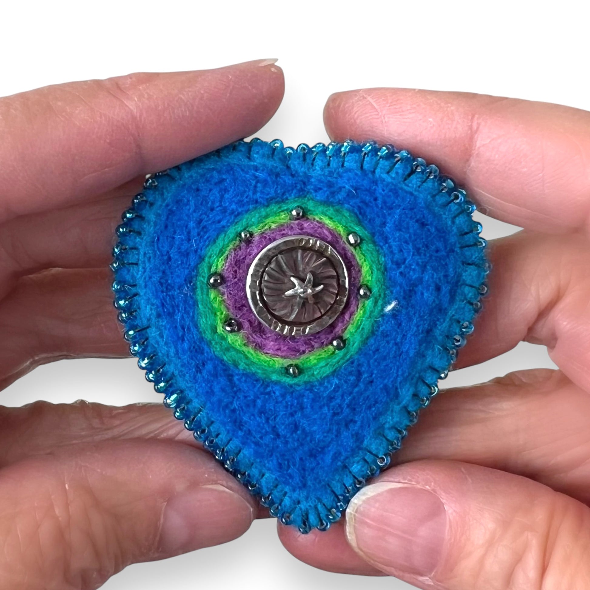 This blue heart felted brooch pin is the twentieth brooch I created, edition #20.