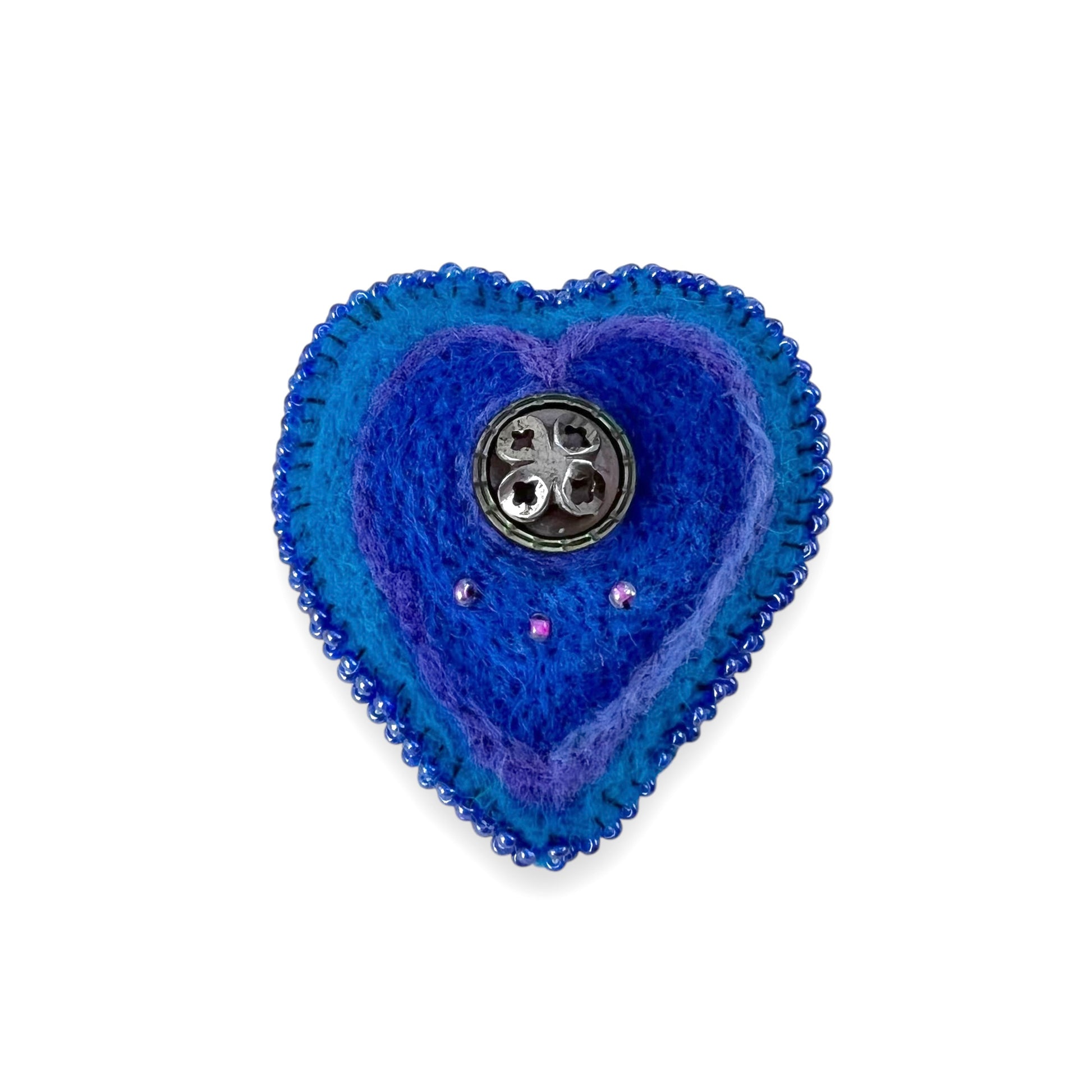 This blue heart felted pin is the ninth brooch I created, edition #9.