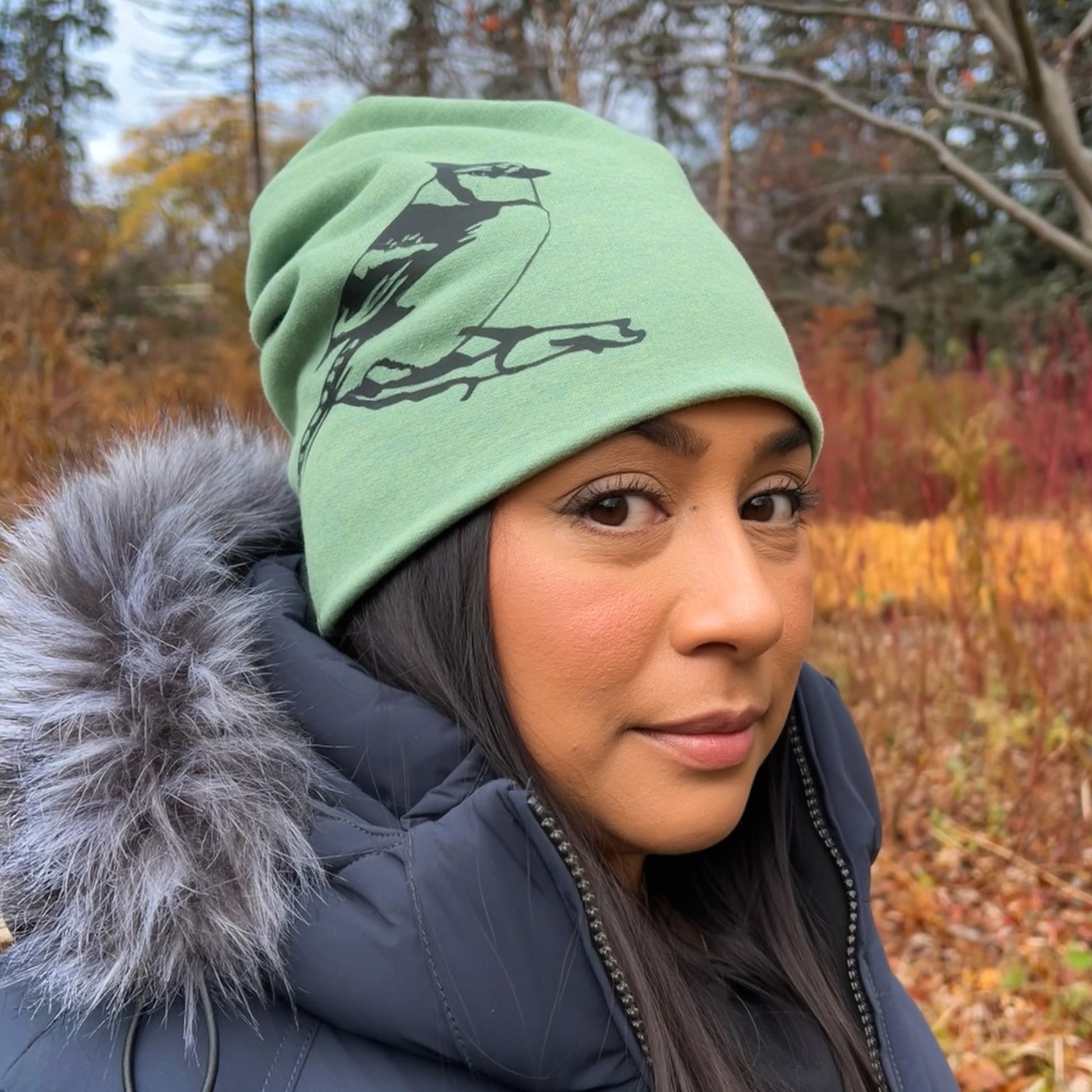 Blue Jay Slouchy Bird Toque Hat Heather Green