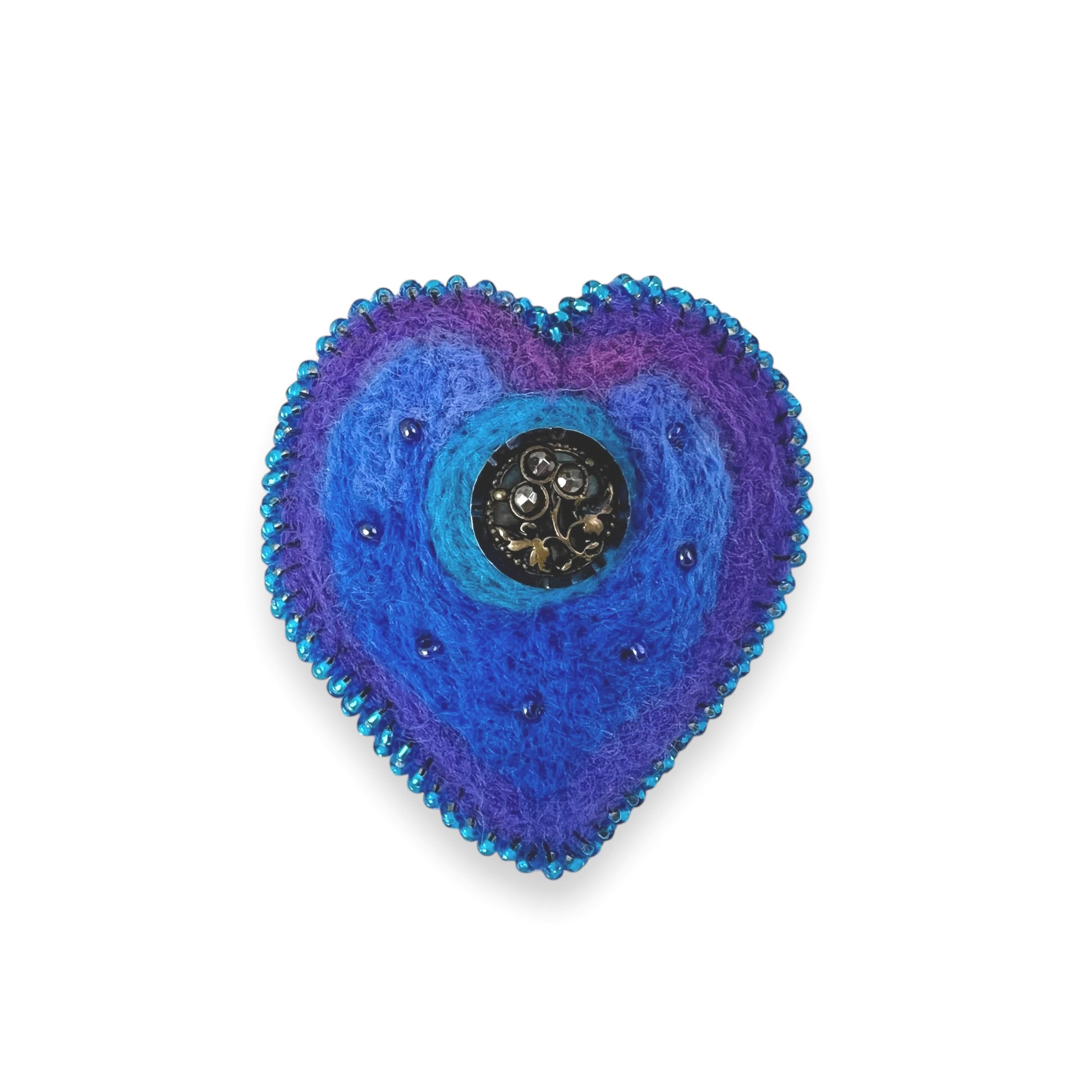 This blue and purple heart felted pin is the twelfth brooch I created, edition #12.
