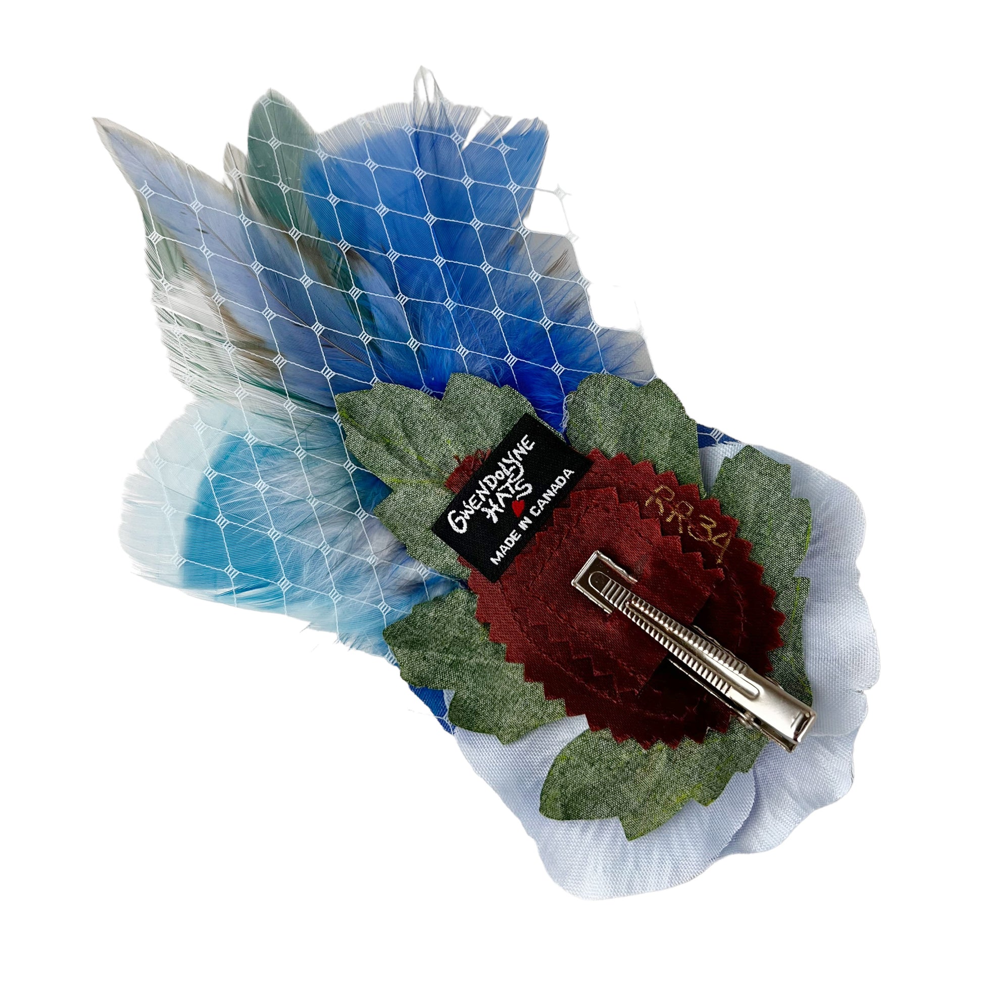 This periwinkle blue rose feather fascinator hair clip was made in its own unique individual colouir palette designed to compliment an individual. The exquisite antique button accent comes from my own treasured button collection.
