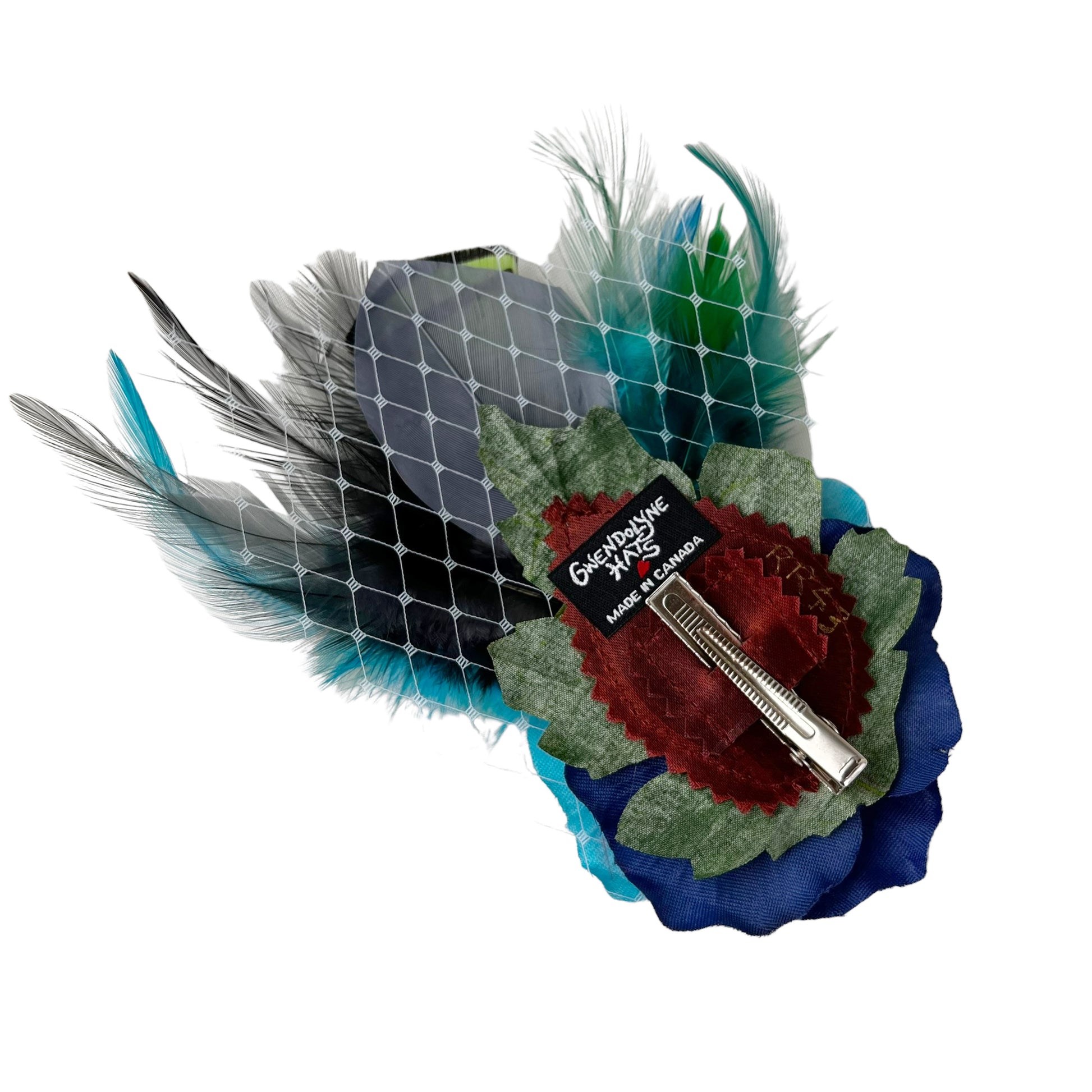 Blue Turquoise Rose Fascinator Feather Hair Clip