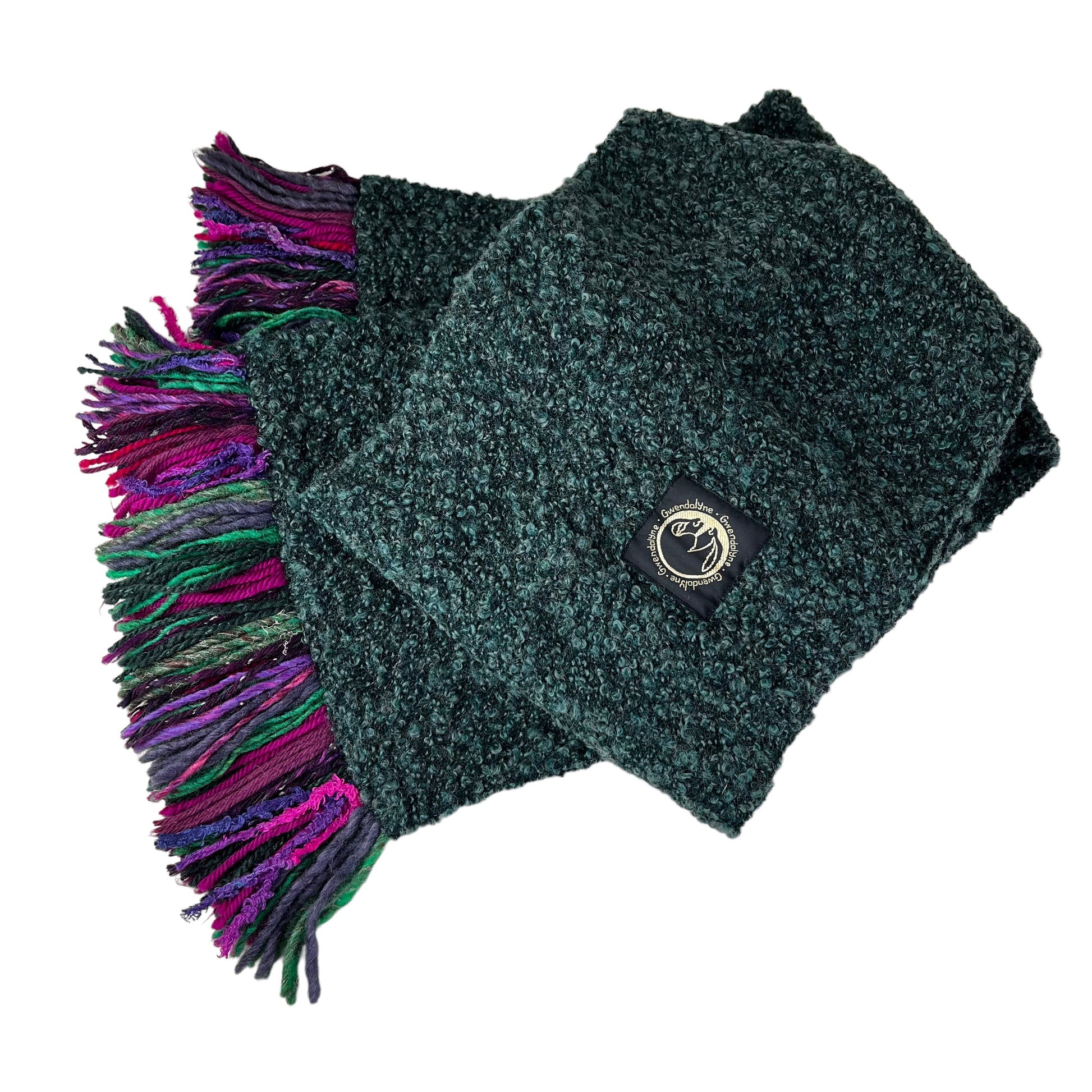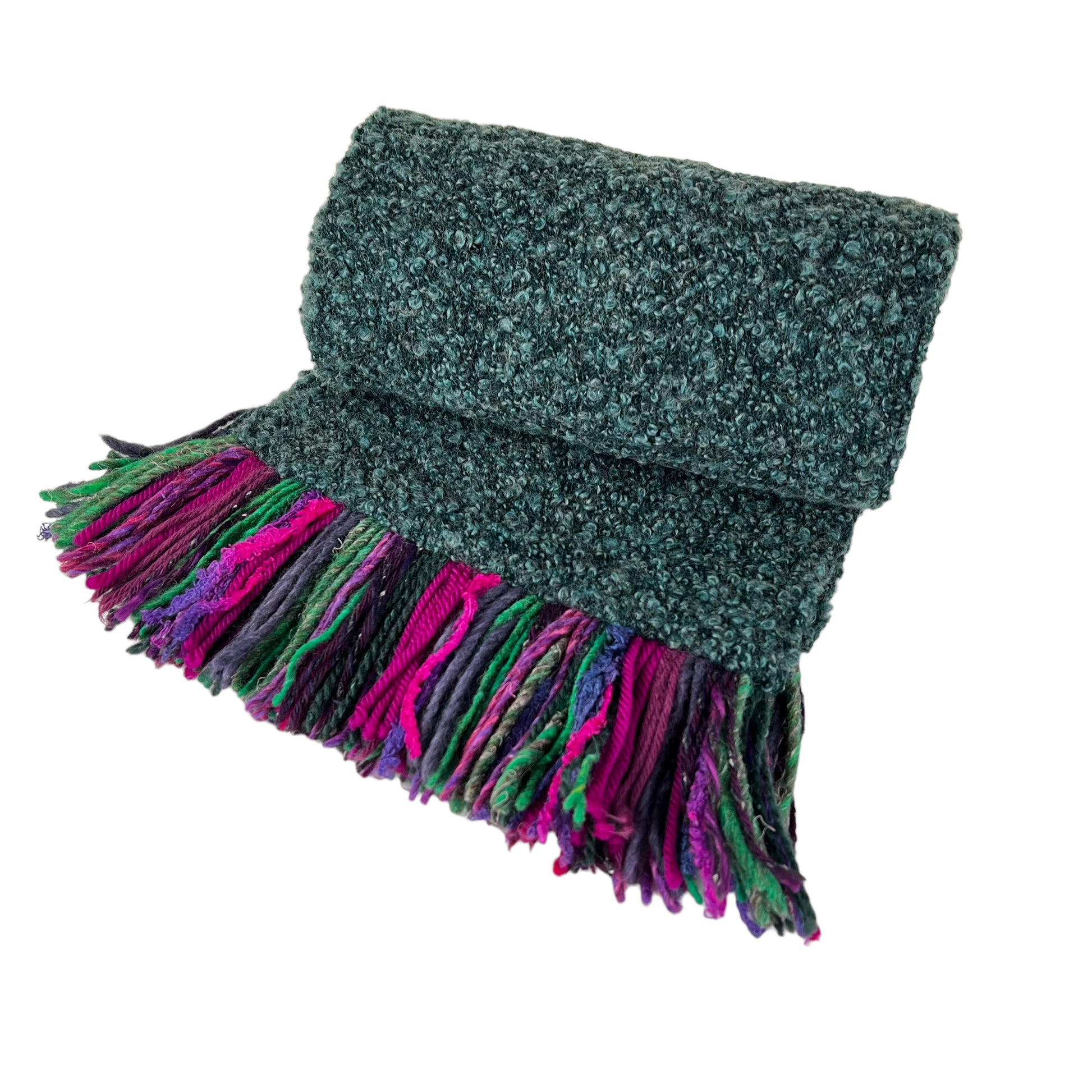 Boucle Double Knit Layer Fringe Scarf Emerald Green 2