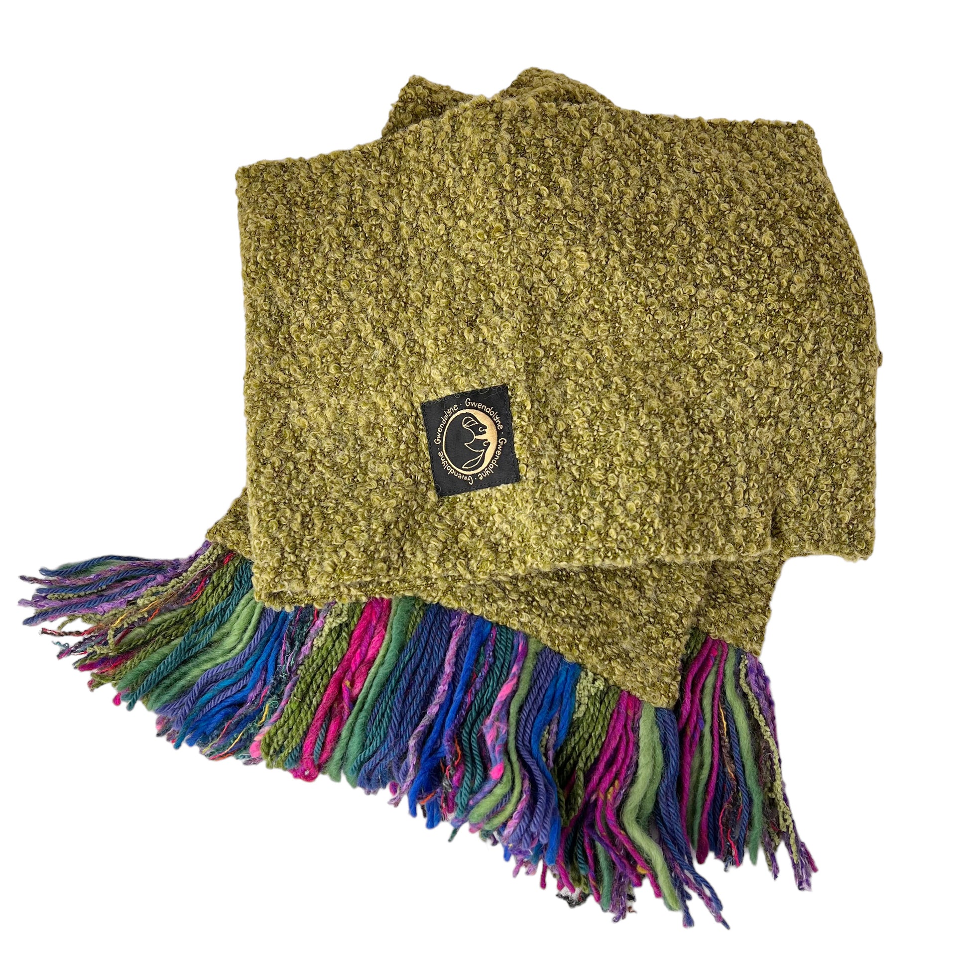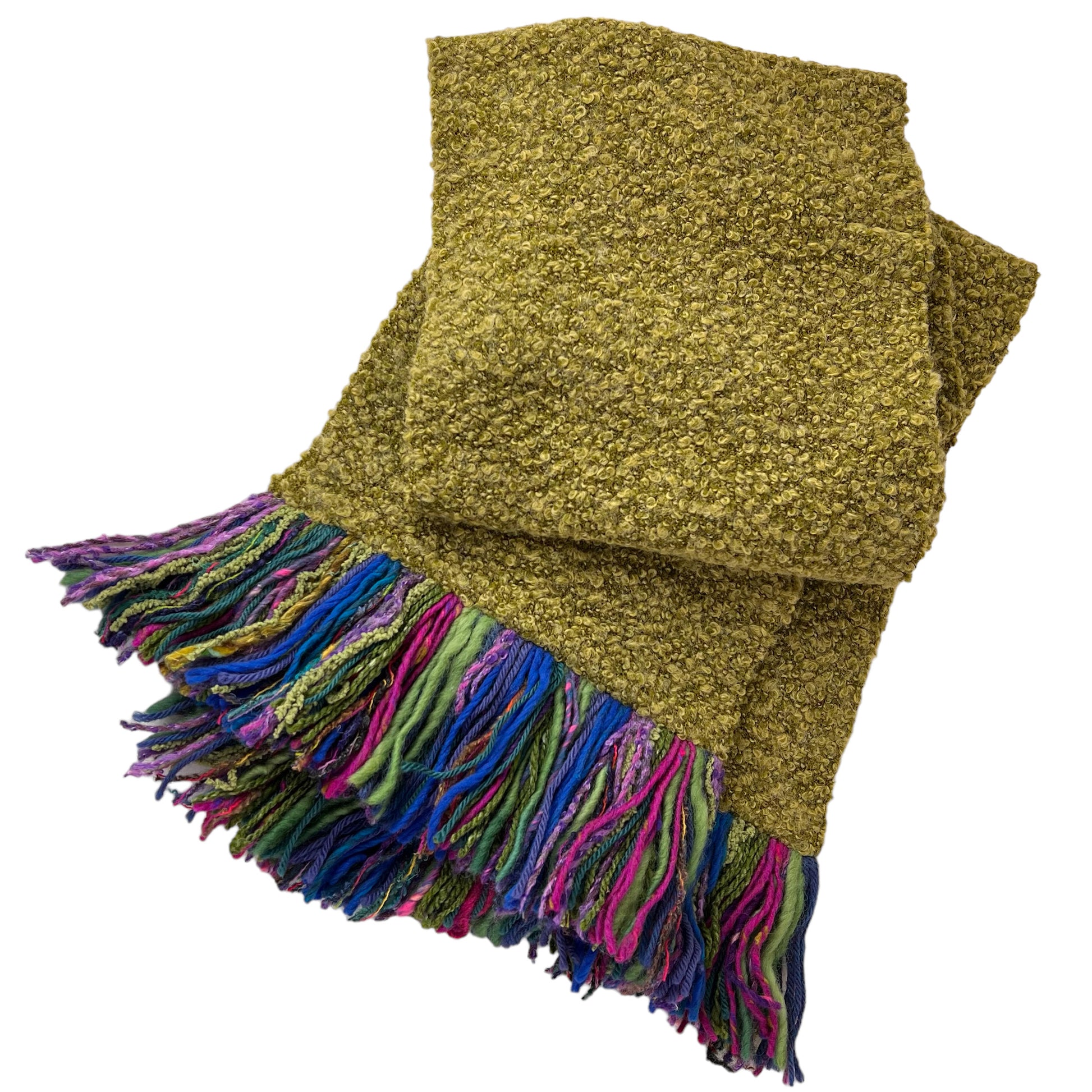 Boucle Double Knit Layer Fringe Scarf Lime 2