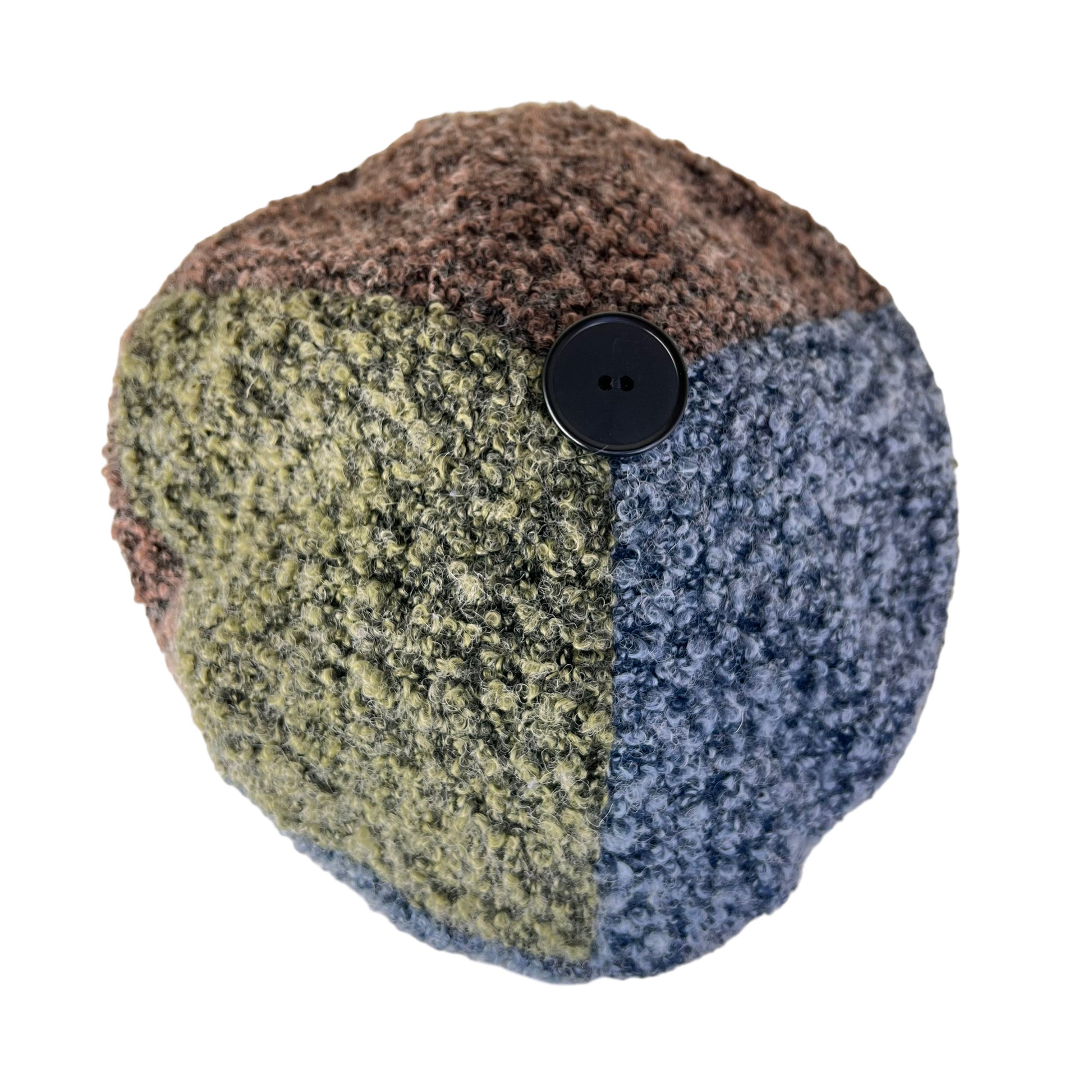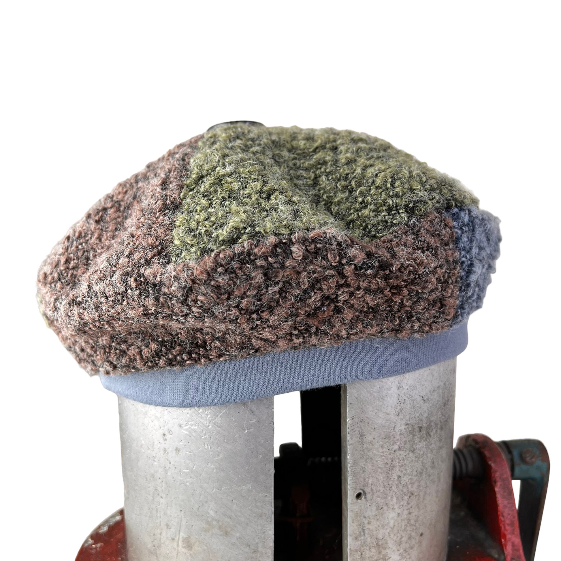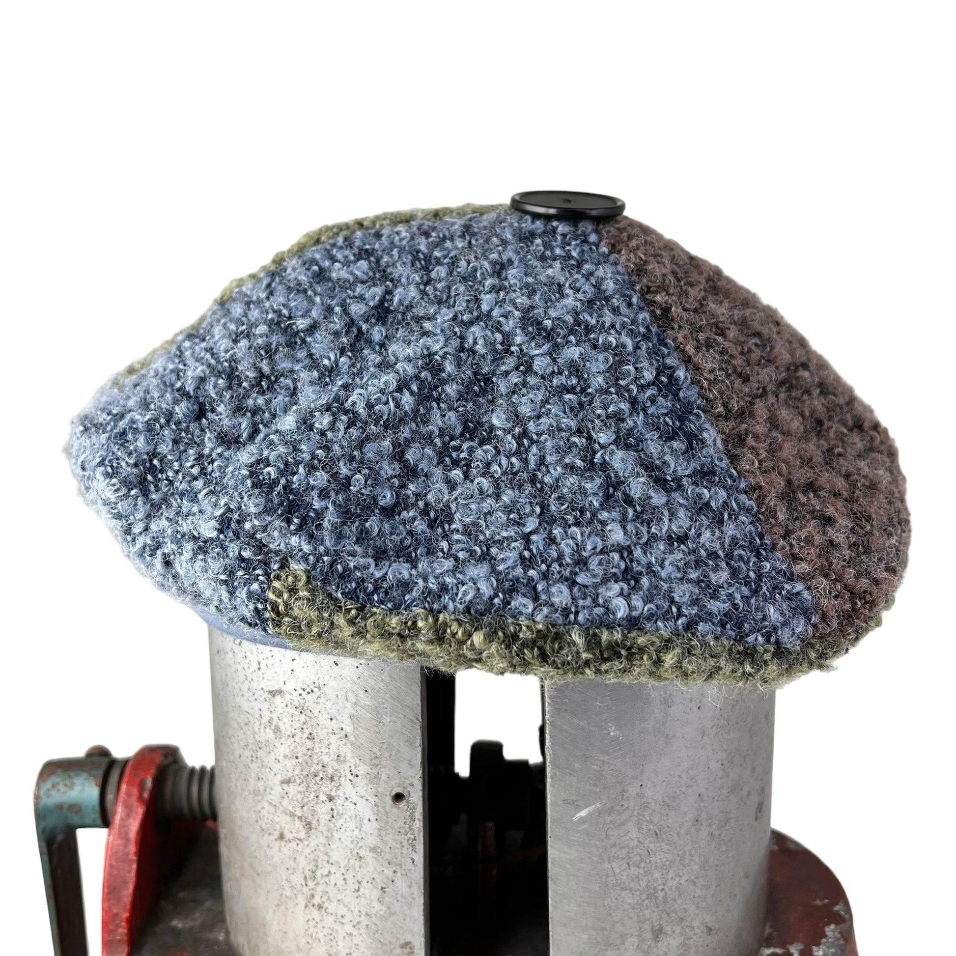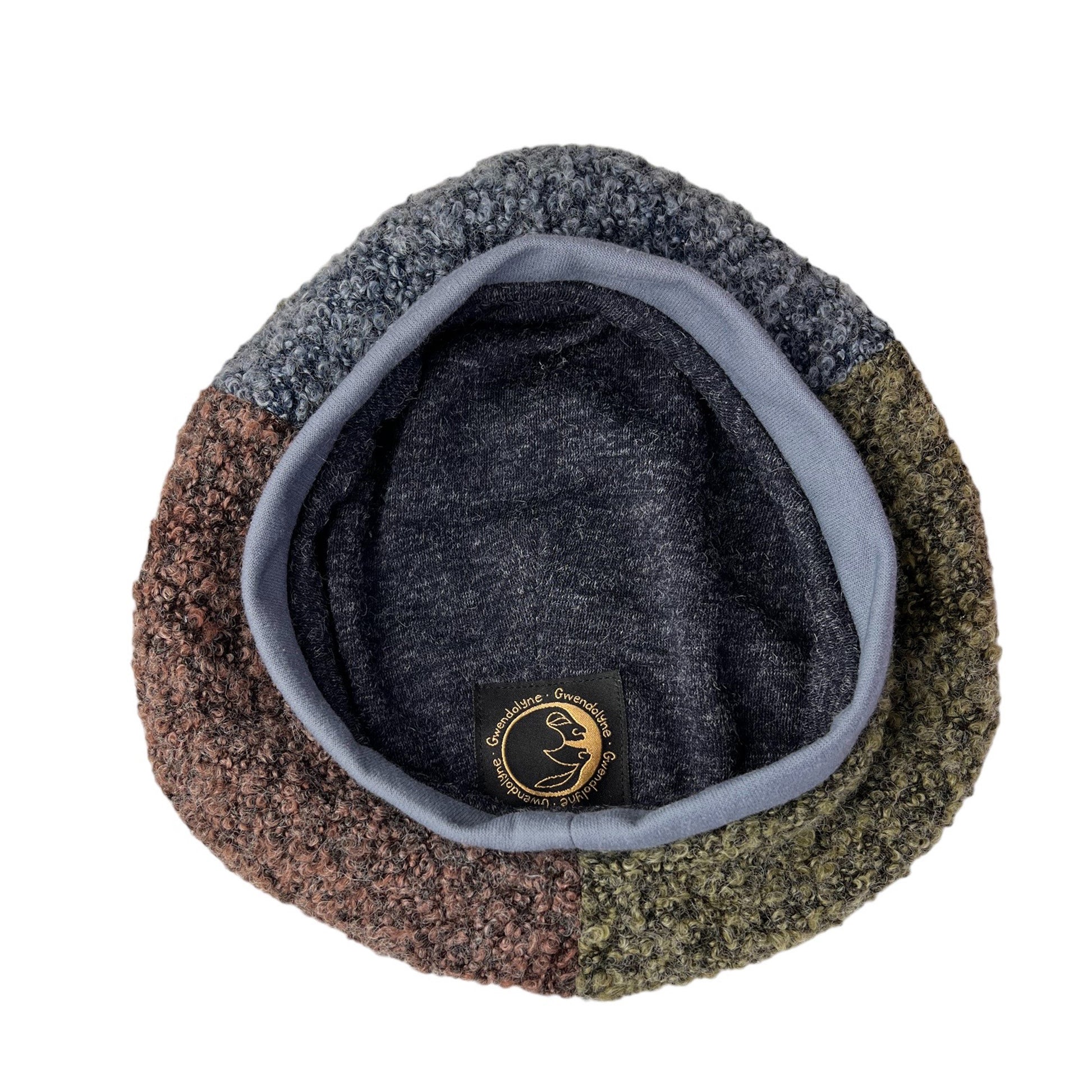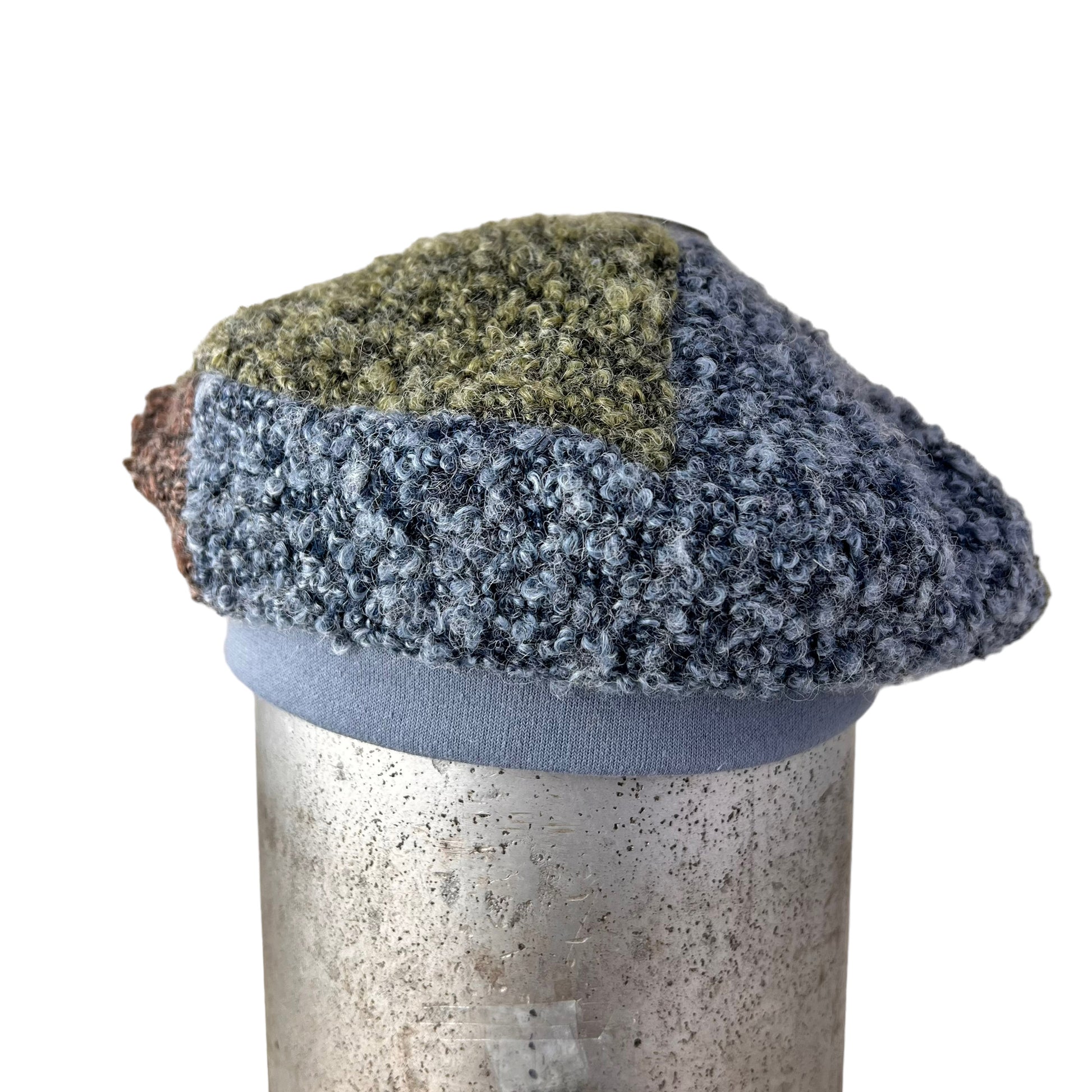This soft floppy brown and blue boucle knit one of a kind beret tam is a full body style. It is both cozy and comfy for the cold winter months.