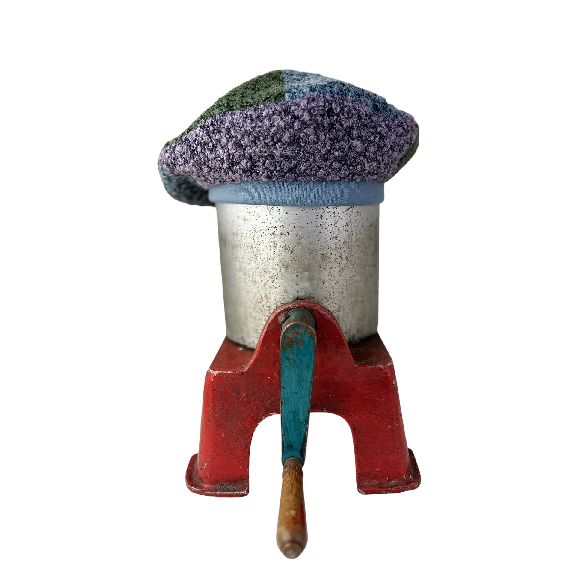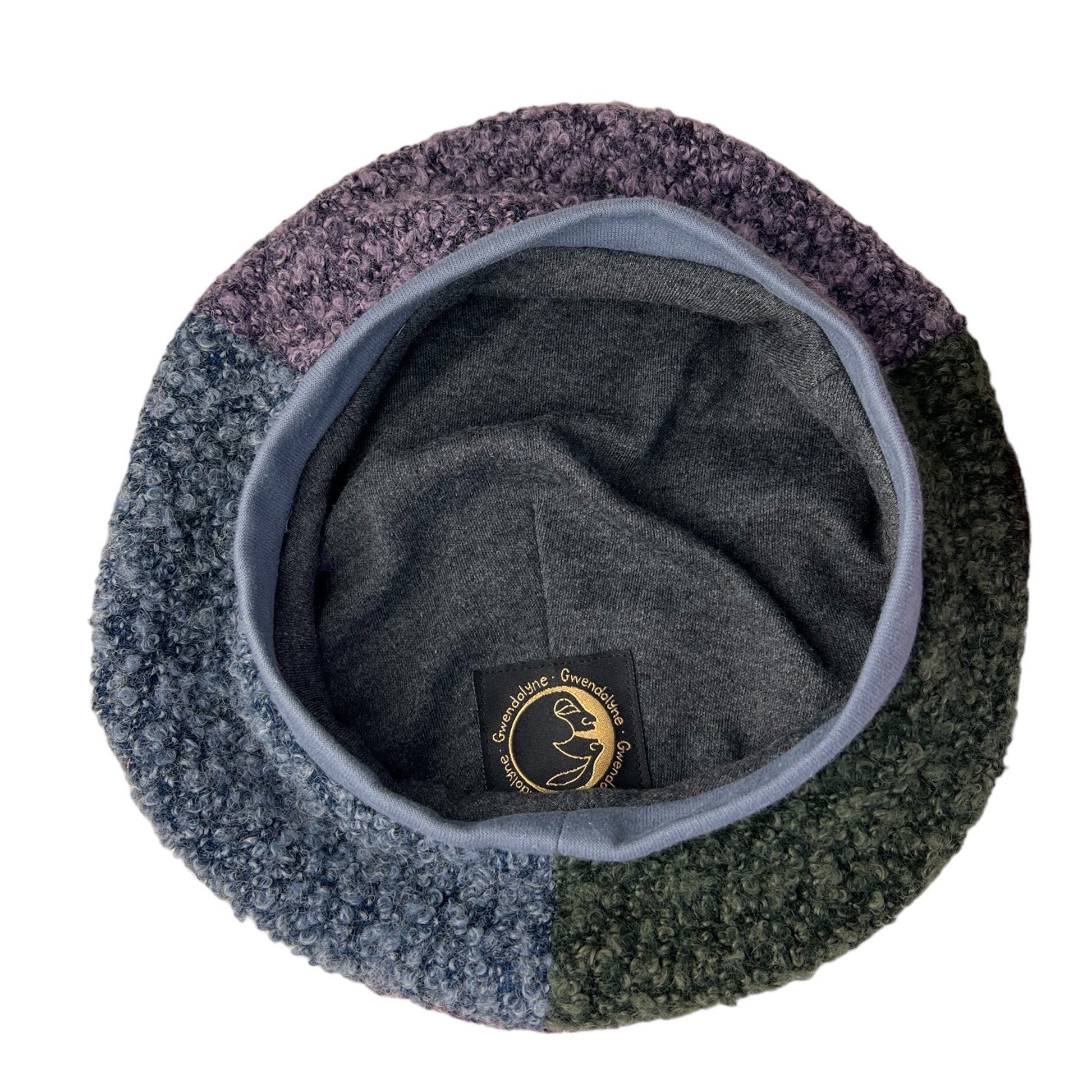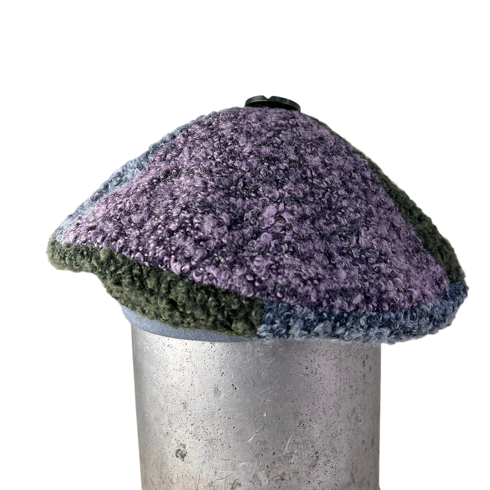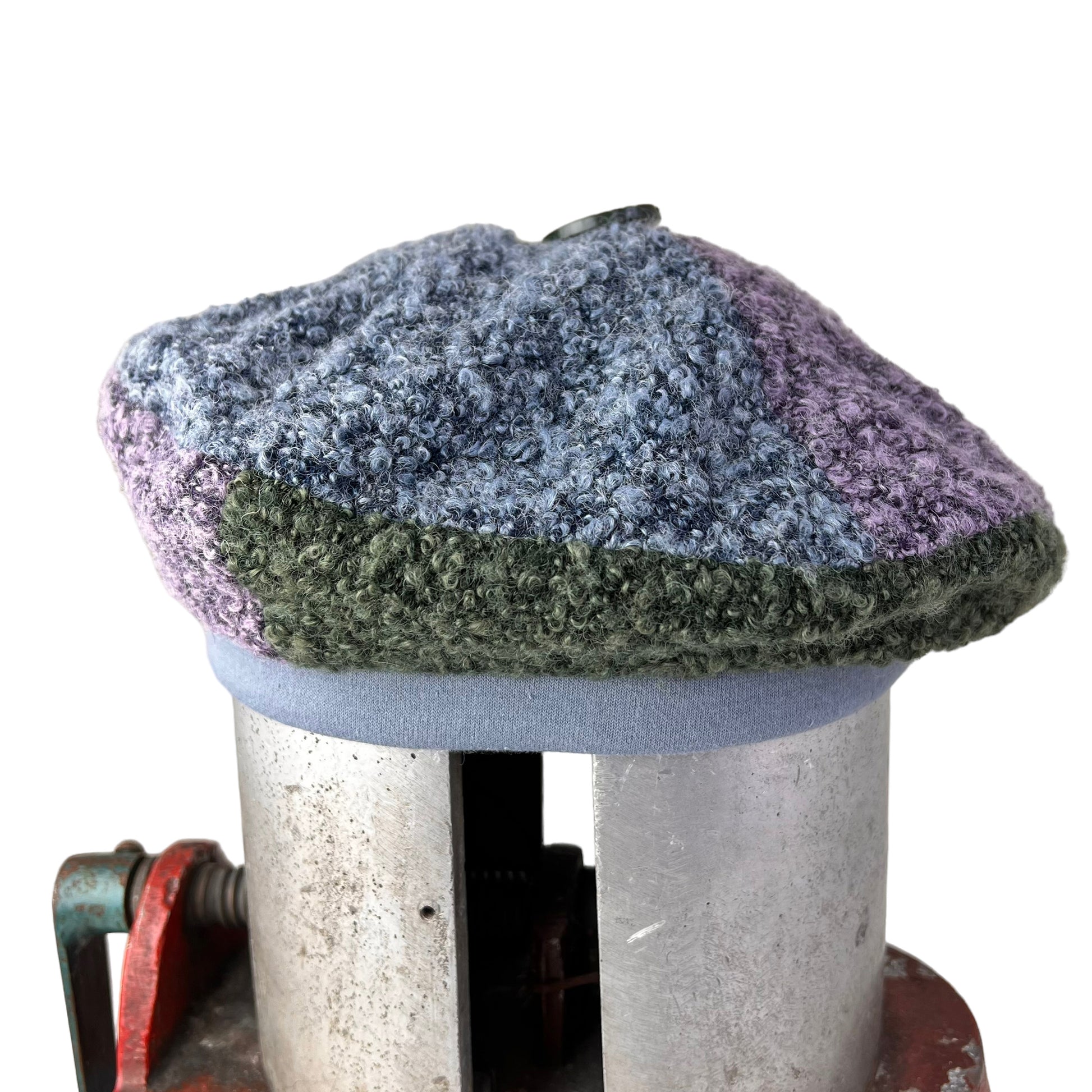 This soft floppy purple green and blue boucle knit one of a kind beret tam is a full body style. It is both cozy and comfy for the cold winter months.