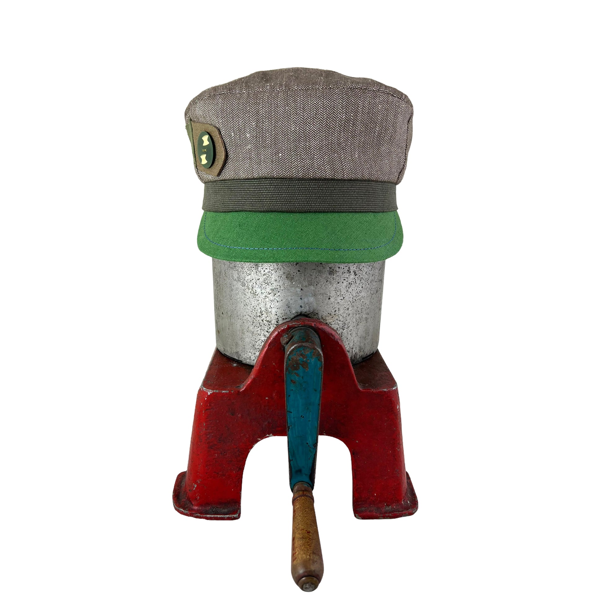 Brown and Kelly Green Peak Robin Linen Cap Size Medium Large