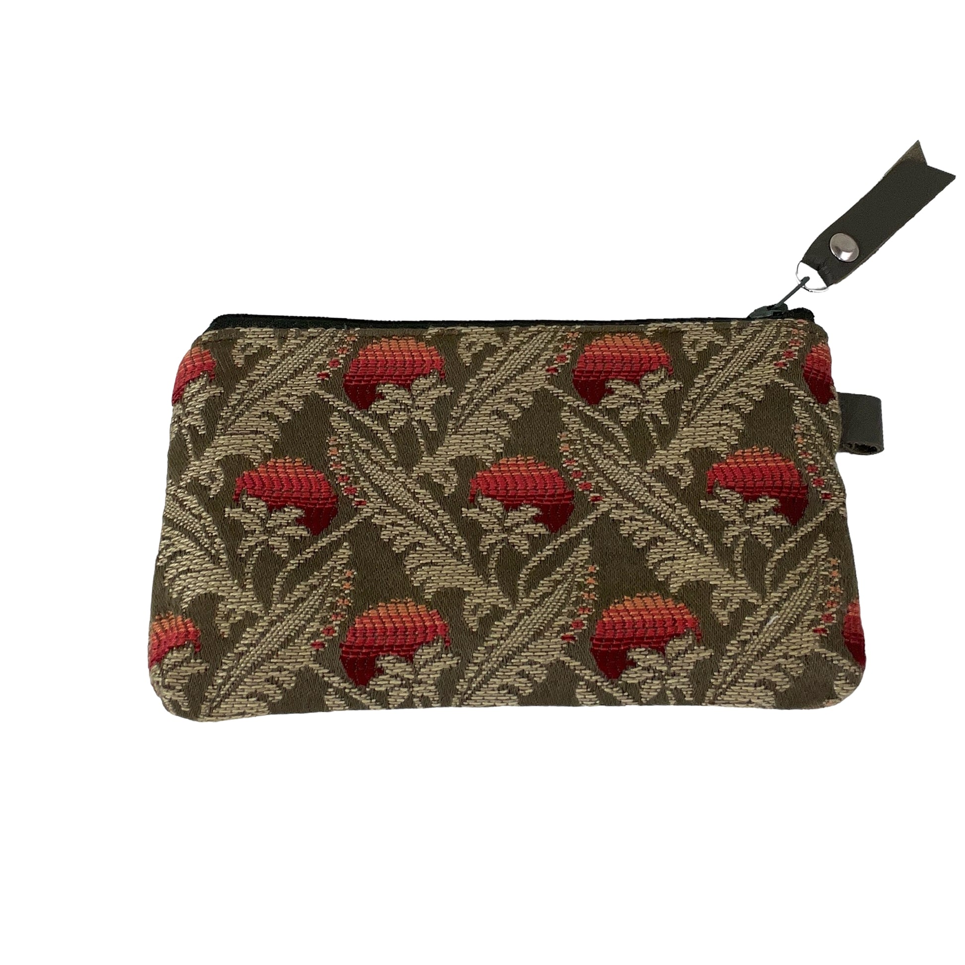 This one of a kind small black green brown and taupe zipper wallet purse has been cut from a selection of exquisite tapestries creating its one of a kind patchwork wallet purse.