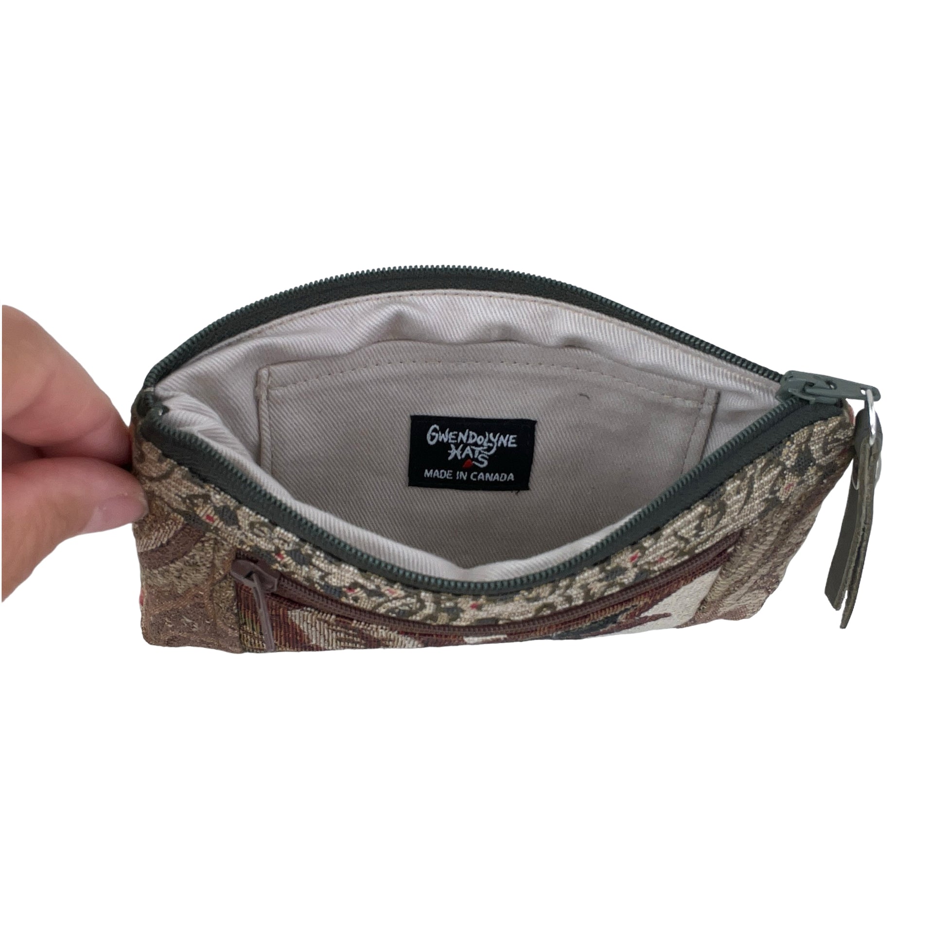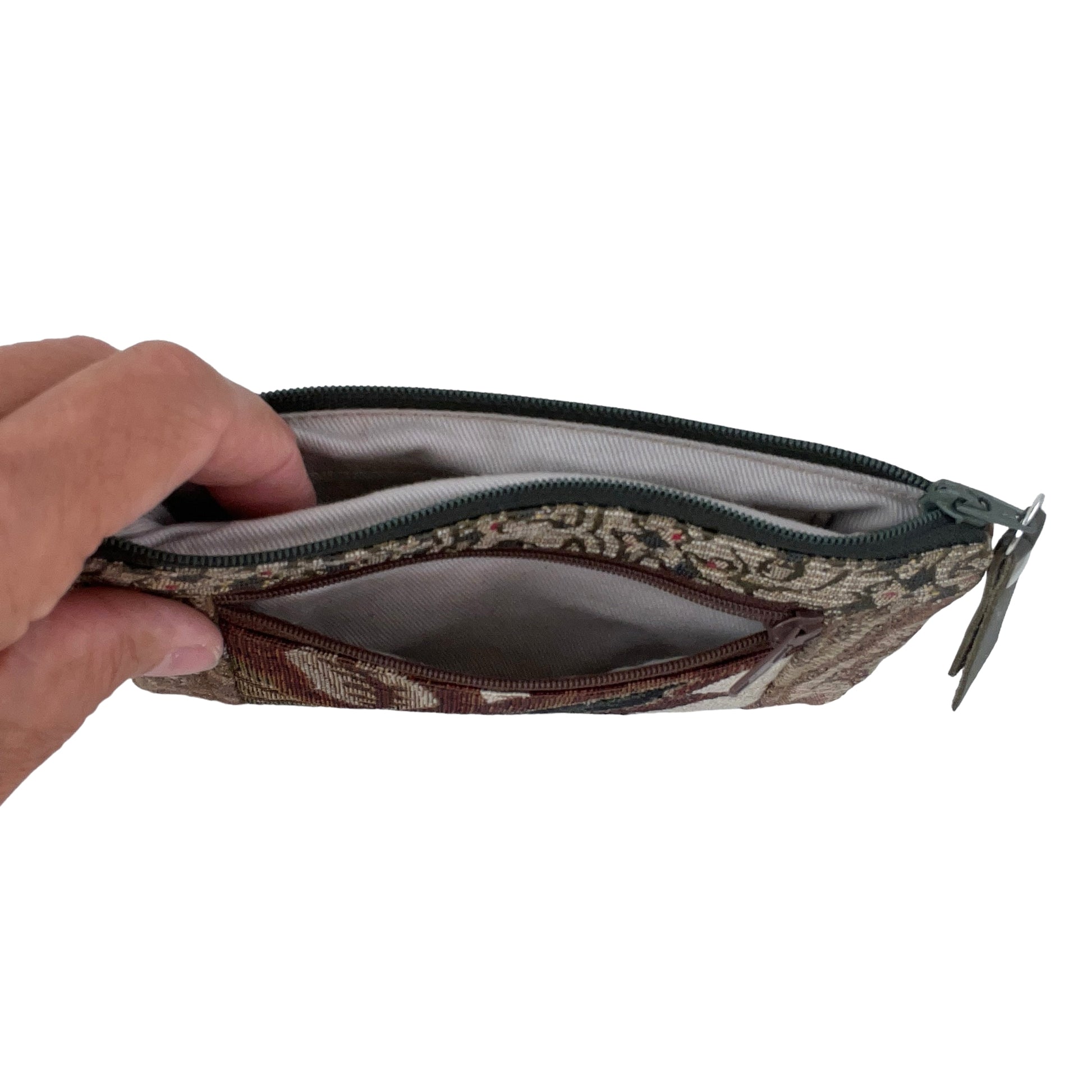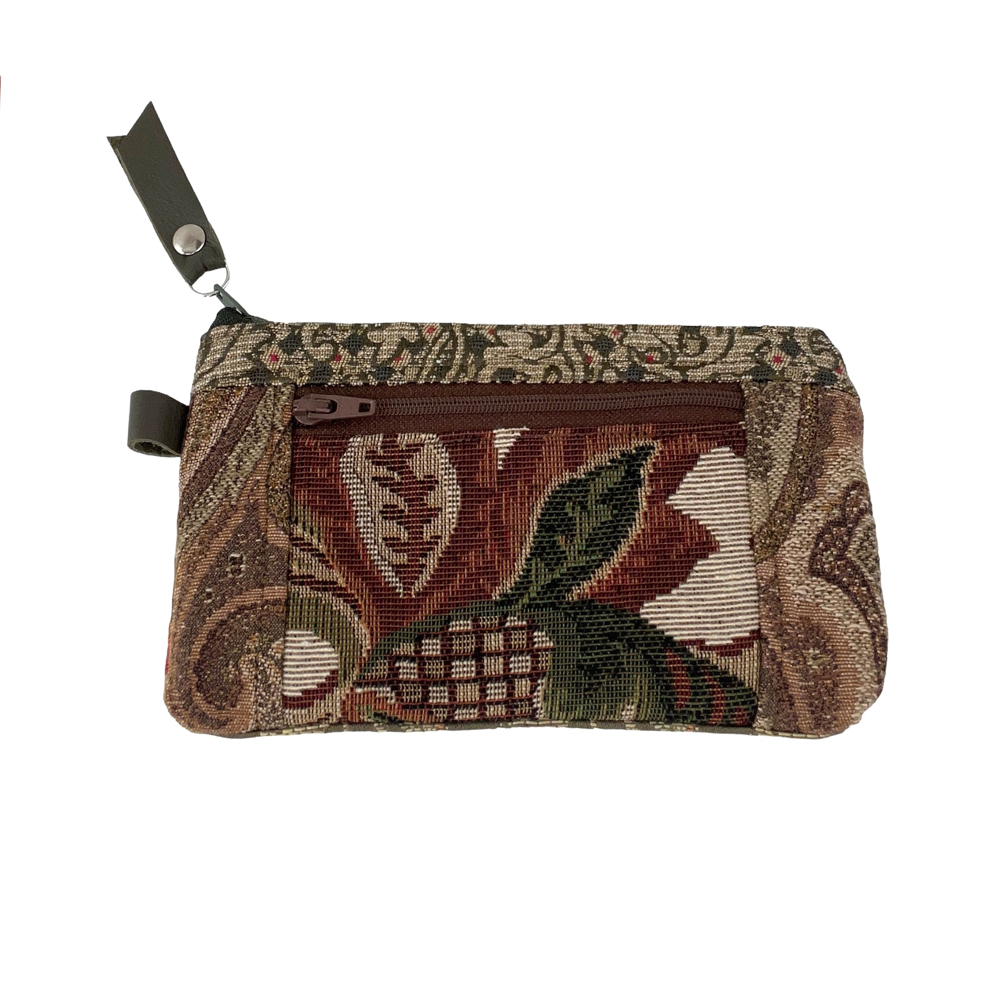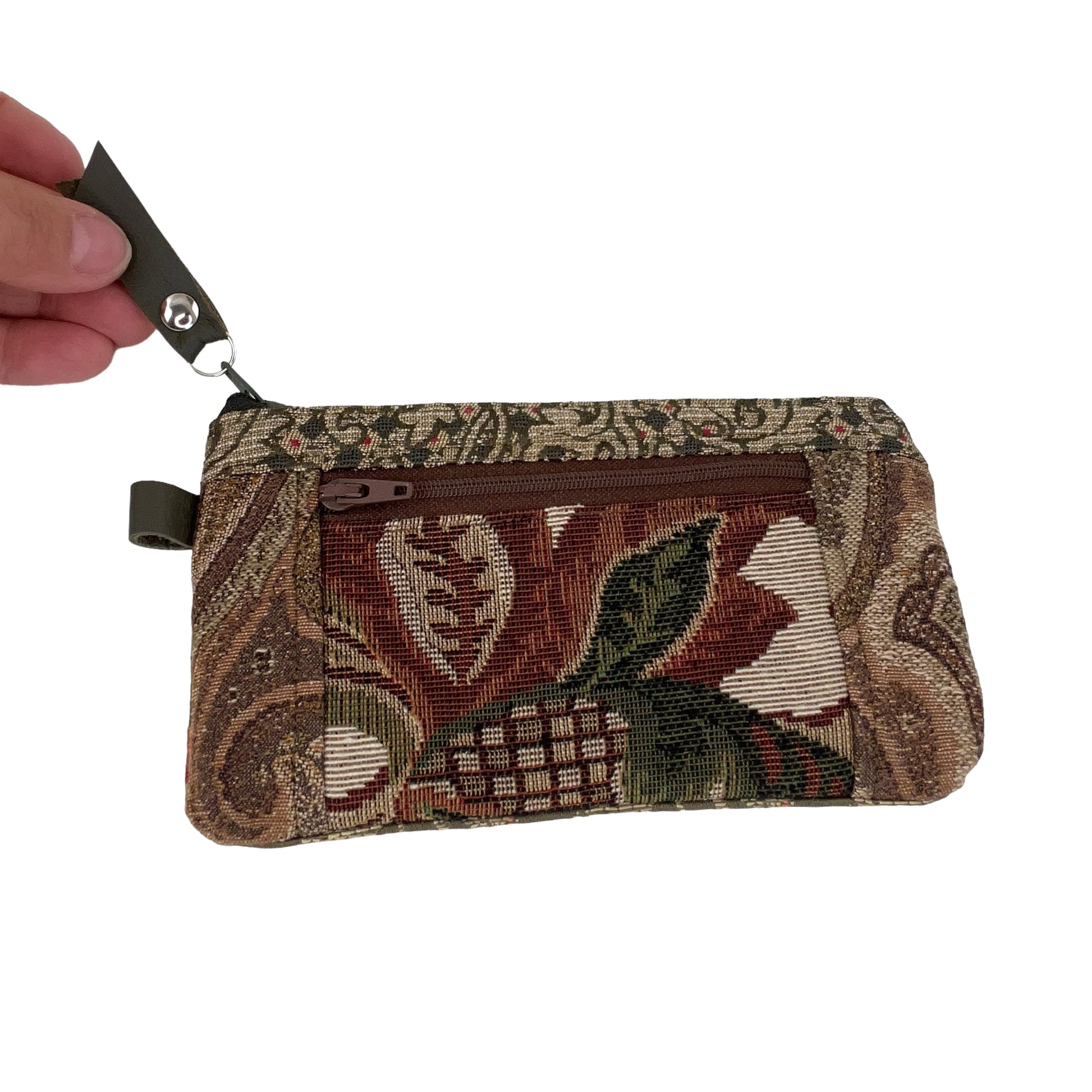 Brown Green Taupe Patchwork Tapestry Zipper Card Wallet