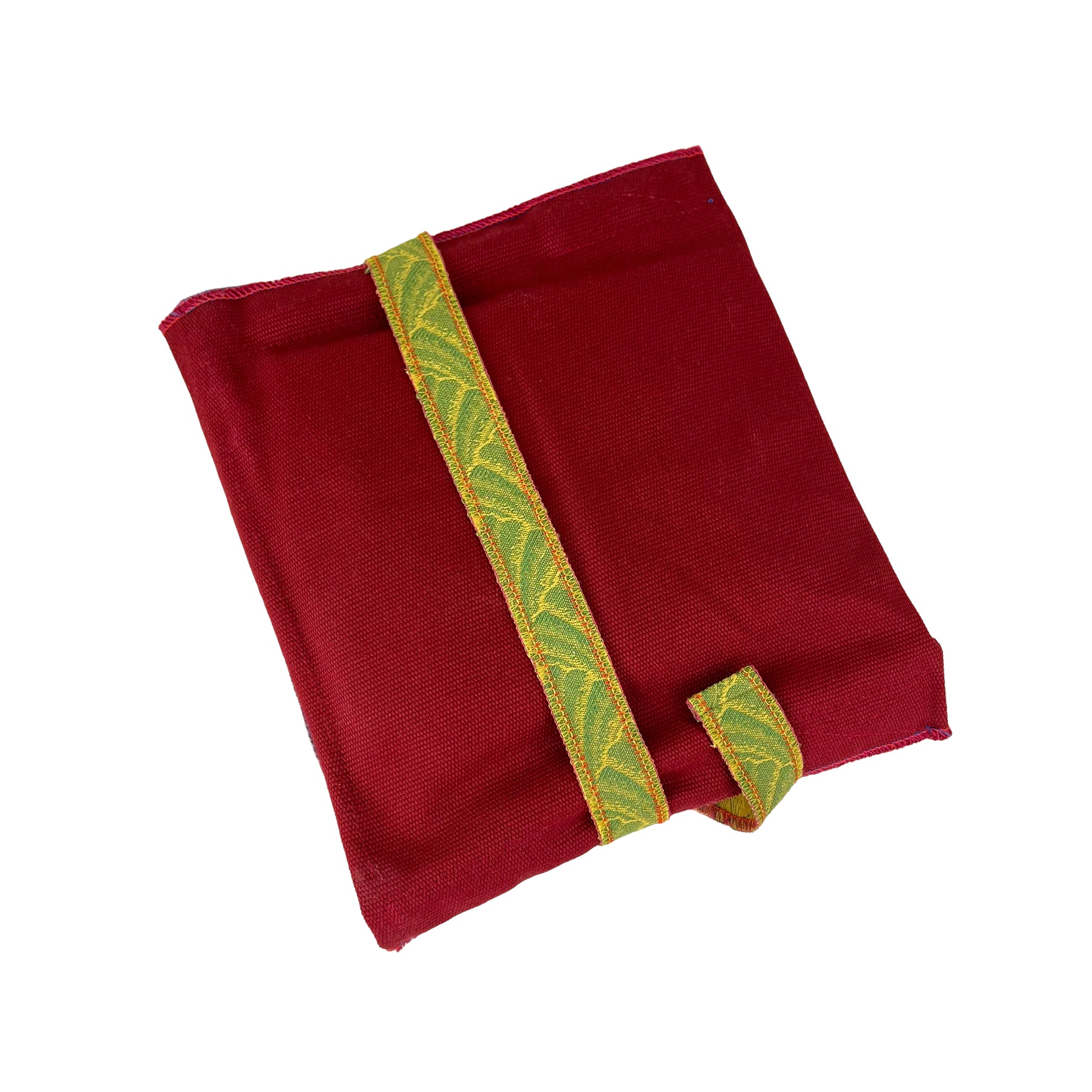 When this embroidery kit pouch is closed it measures a 9" square. Inside the top flap has 3 layers to hold embroidery needles, a pouch to hold supplies, and a scissor and pencil sleeve.