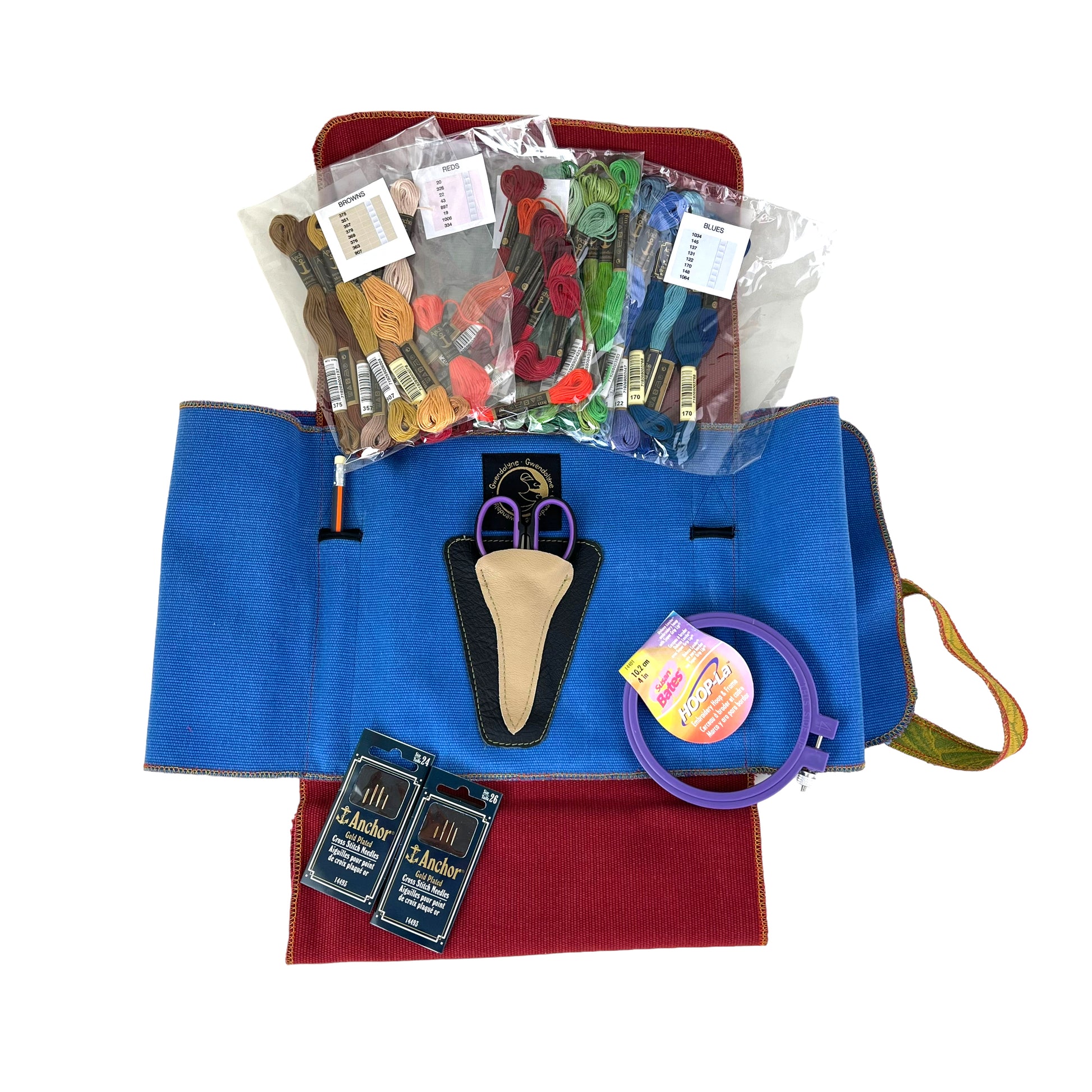 Embroidery Starter Kit Travel Pouch Royal Blue Red