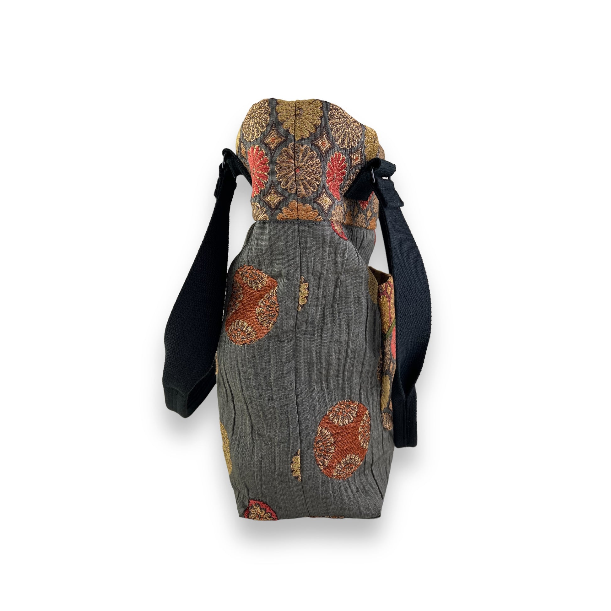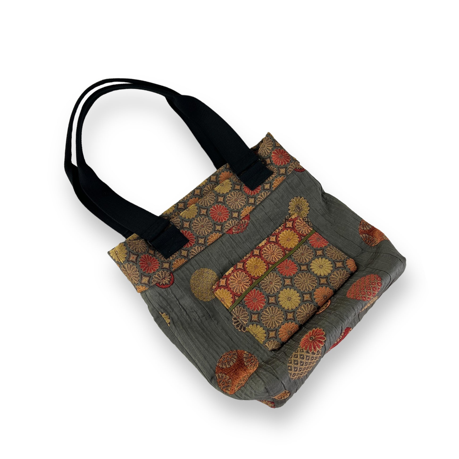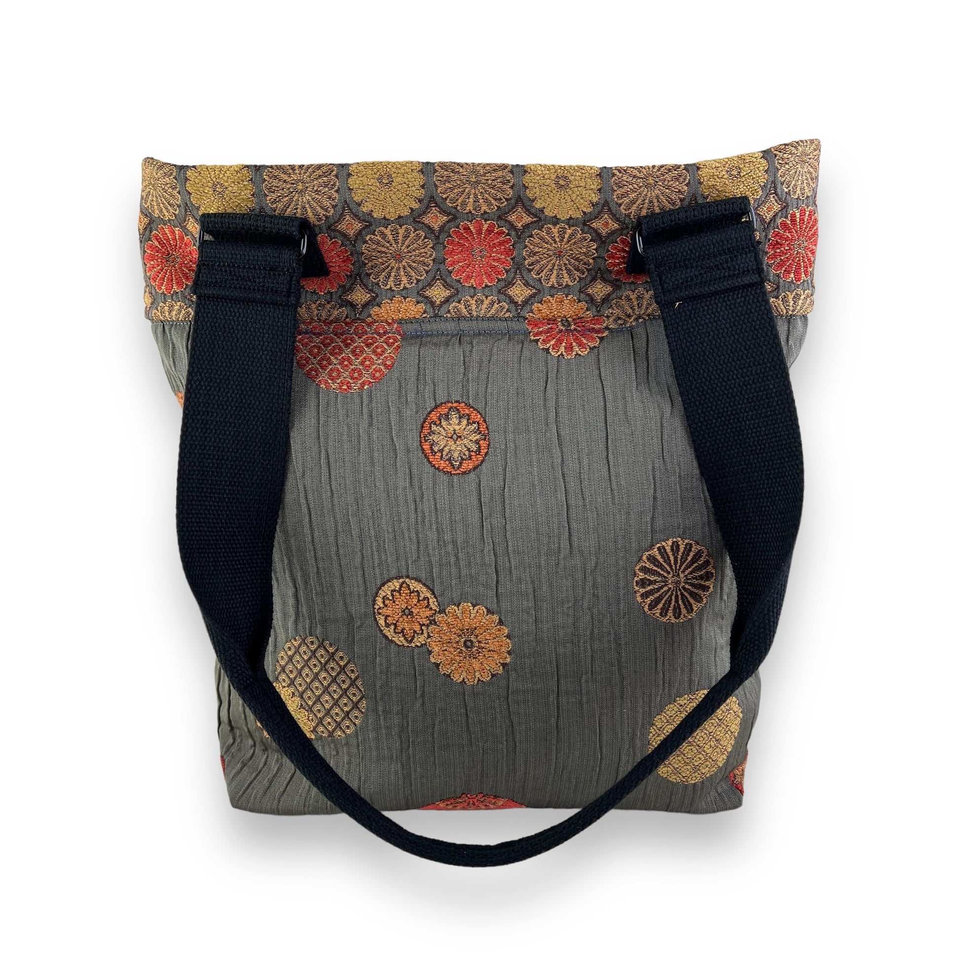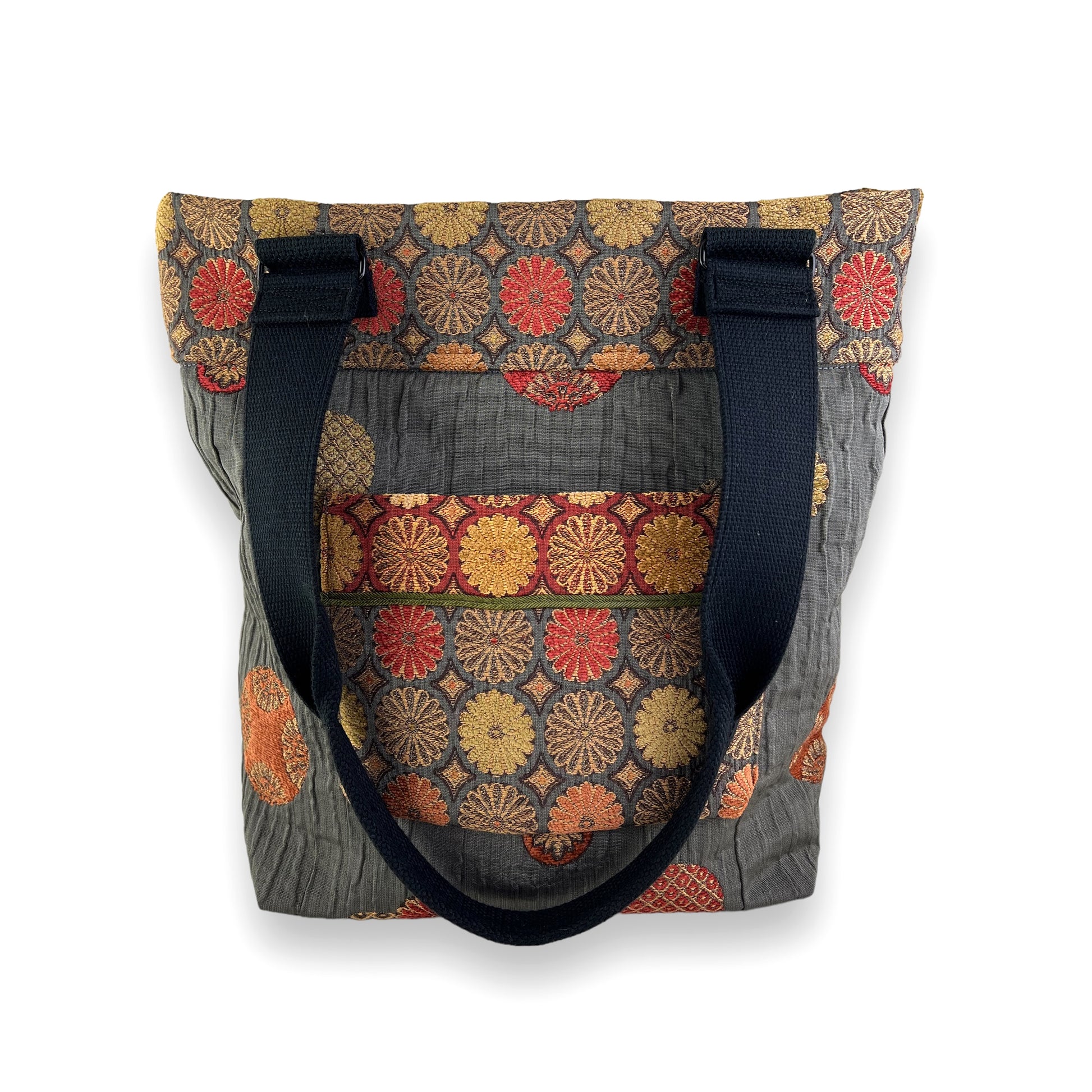 Fresh Tapestry Tote Bag Grey Gold Orange Floral Tapestry Fabrics