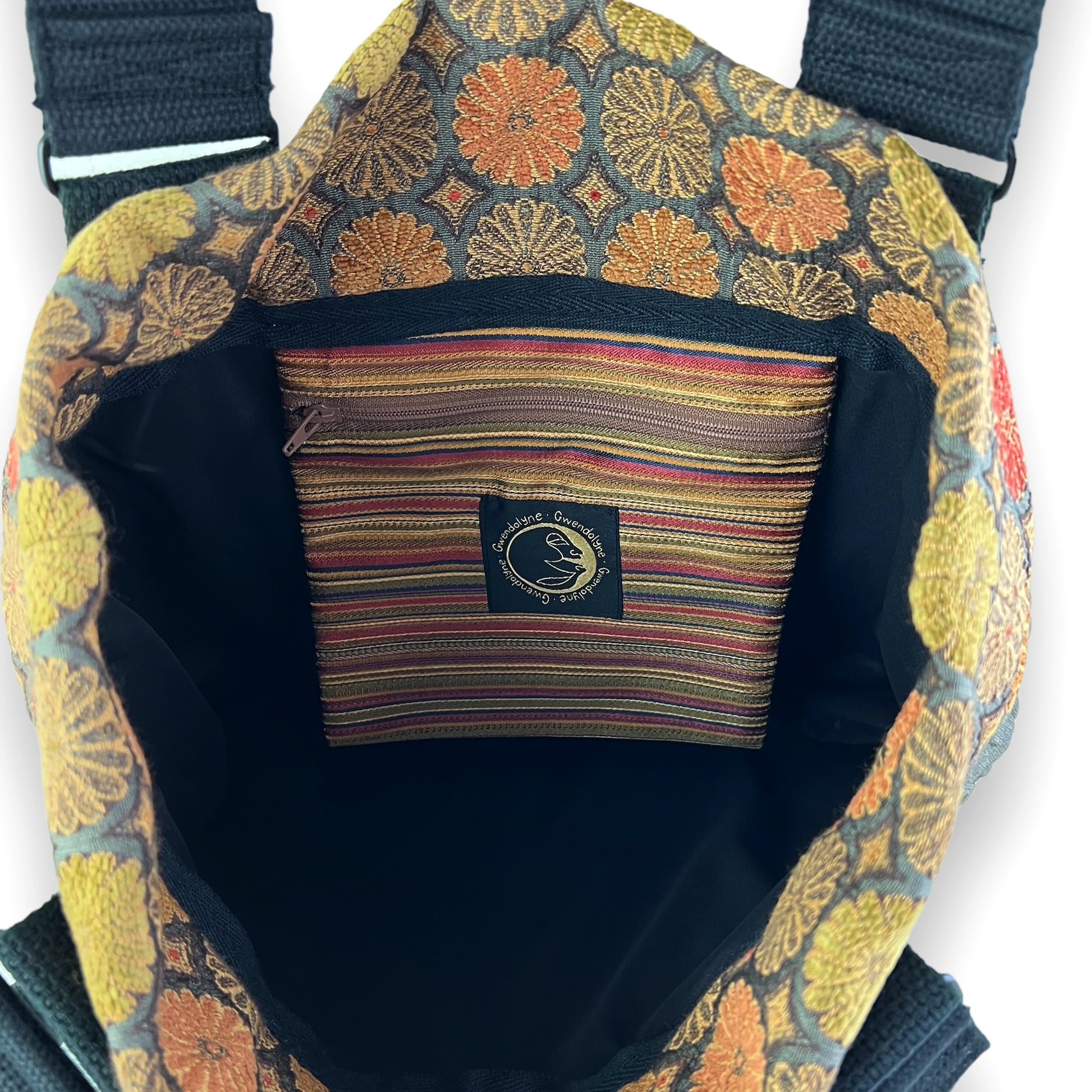 These tapestry fabrics are one of my favourite treasures to have created this tote from. The colours will be a great accent to most outfits if that what you are looking for. Remember this tote is made from strong tapestries and is built to be enjoying for years to come.