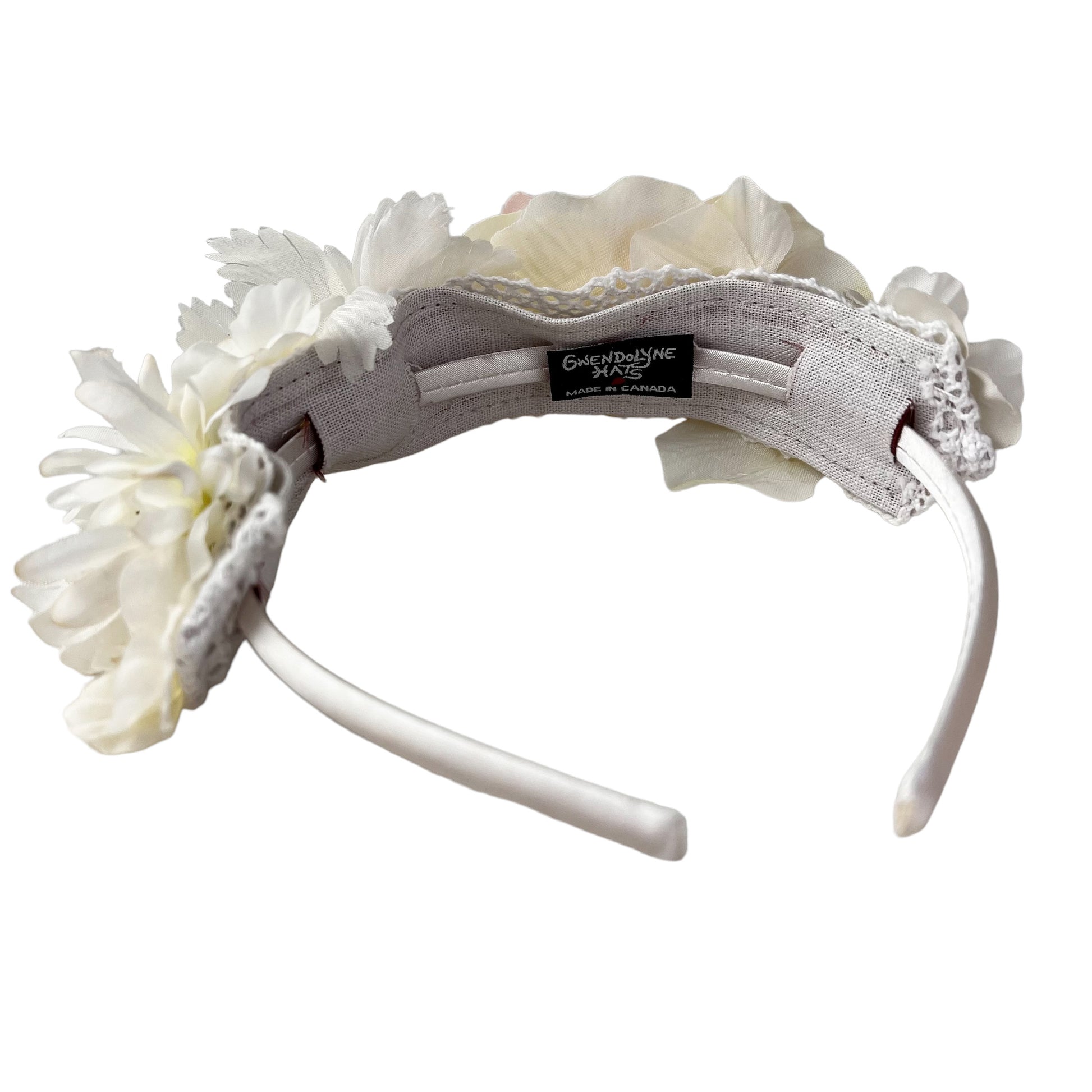 Girls Floral Hairband Pastel Peach Rose white flower Tiara