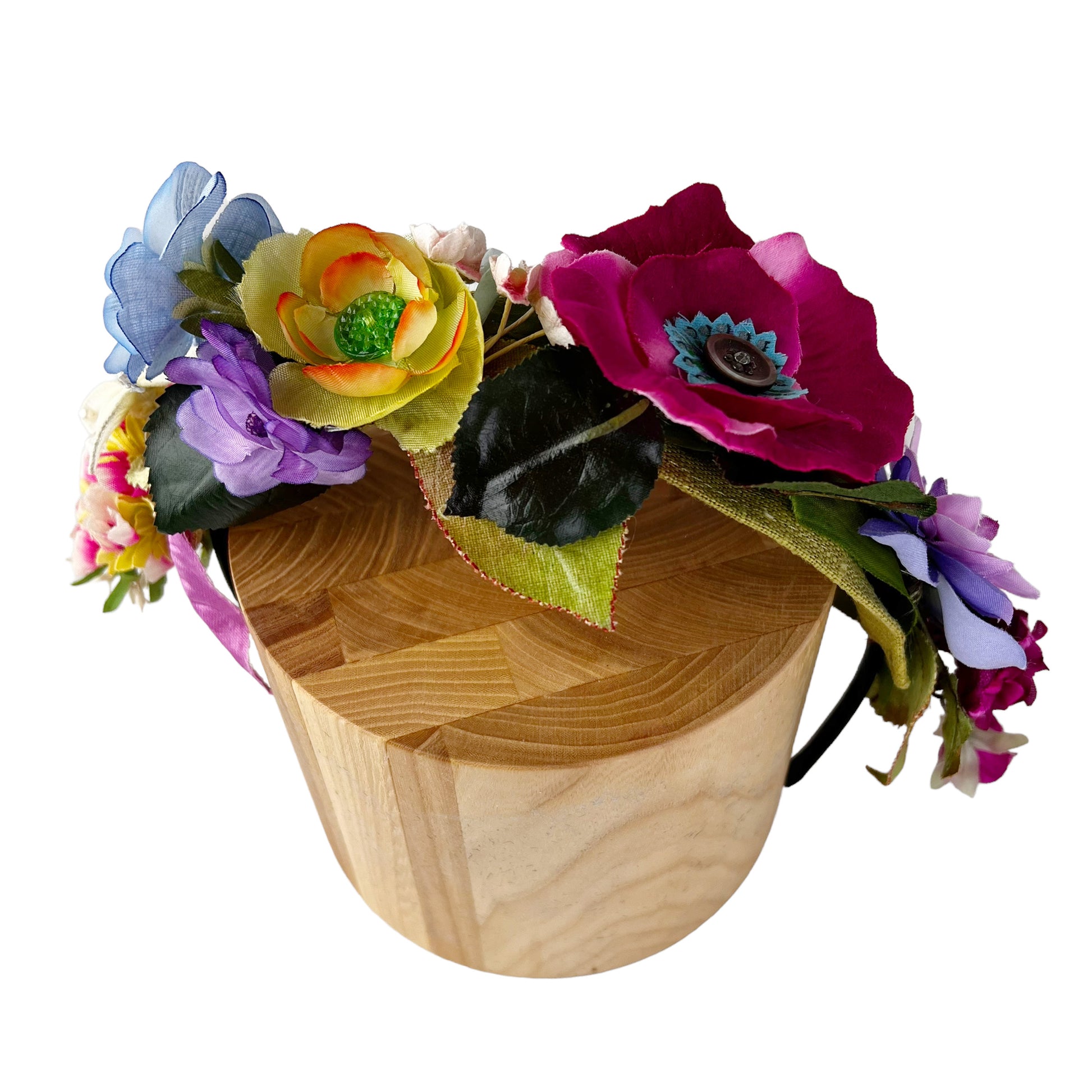 This flower crown headband fits all sizes of heads for girls ages 3 to 8.