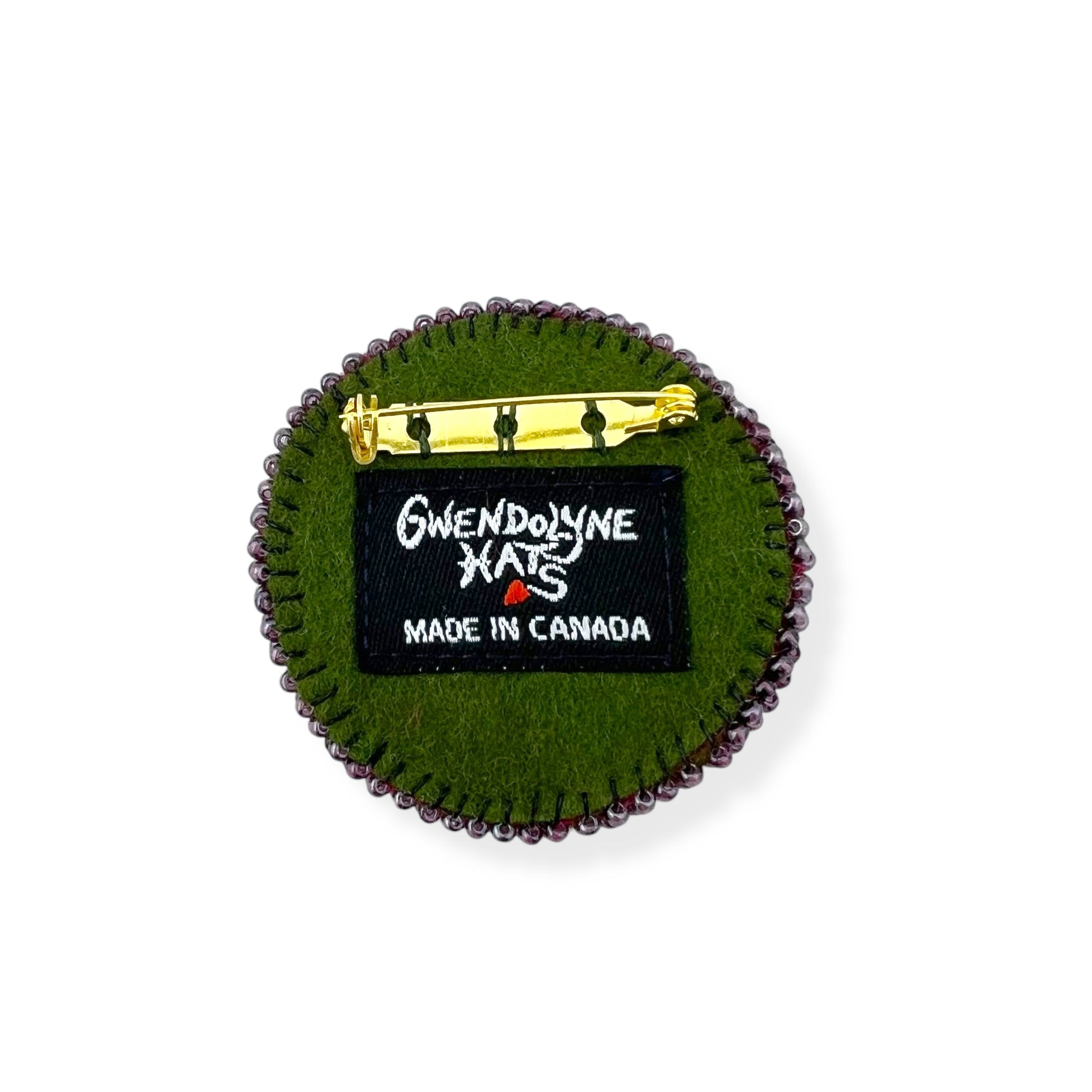 To create this brooch I work with coloured carded wool fleece, needle felting the wool  into this unique design.  Once finished I make a hand sewed beaded border with a lock brooch pin on the back.