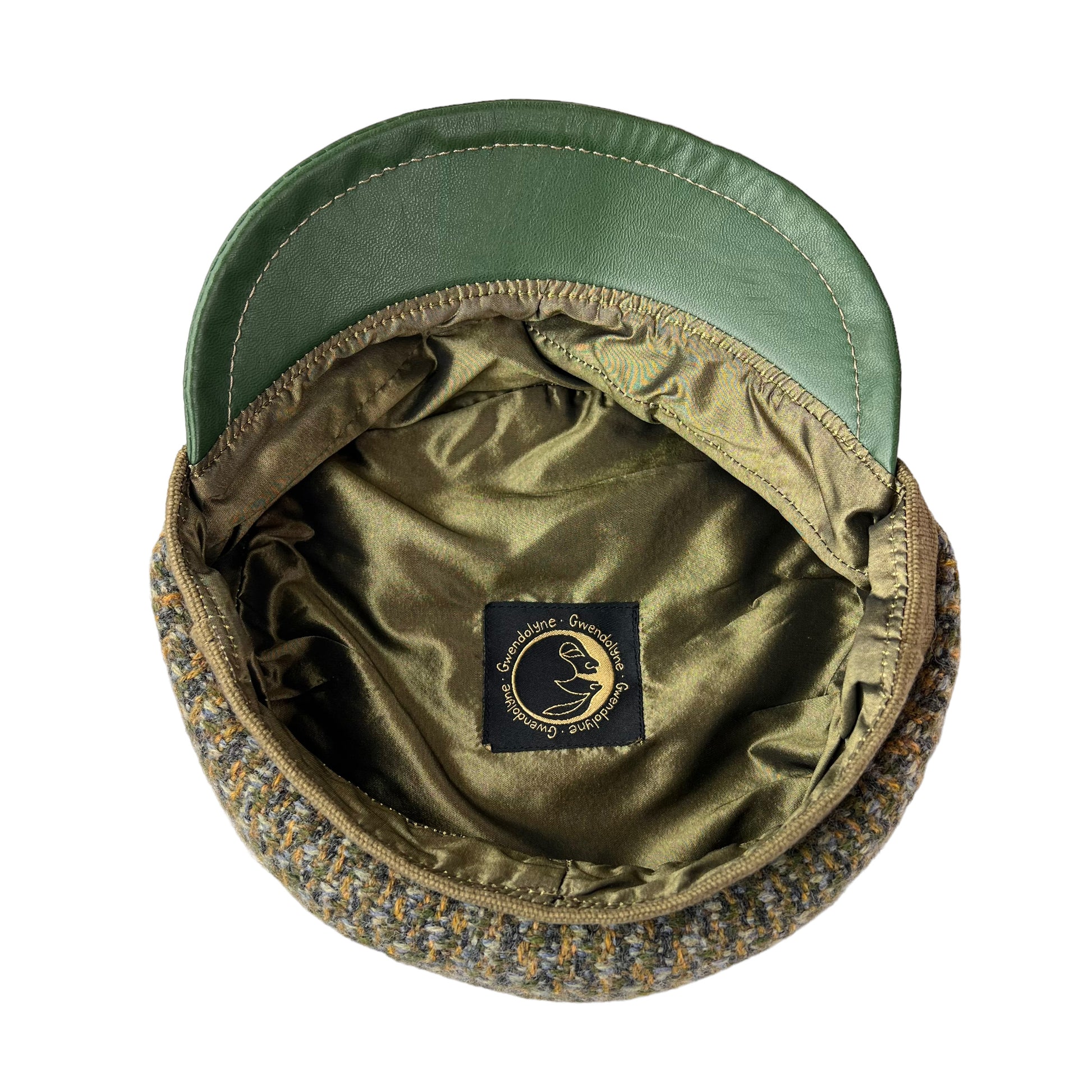 The lining is cut from a olive green taffeta silk which makes the cap very breathable and eliminates hat hair, due to the natural choice of materials.