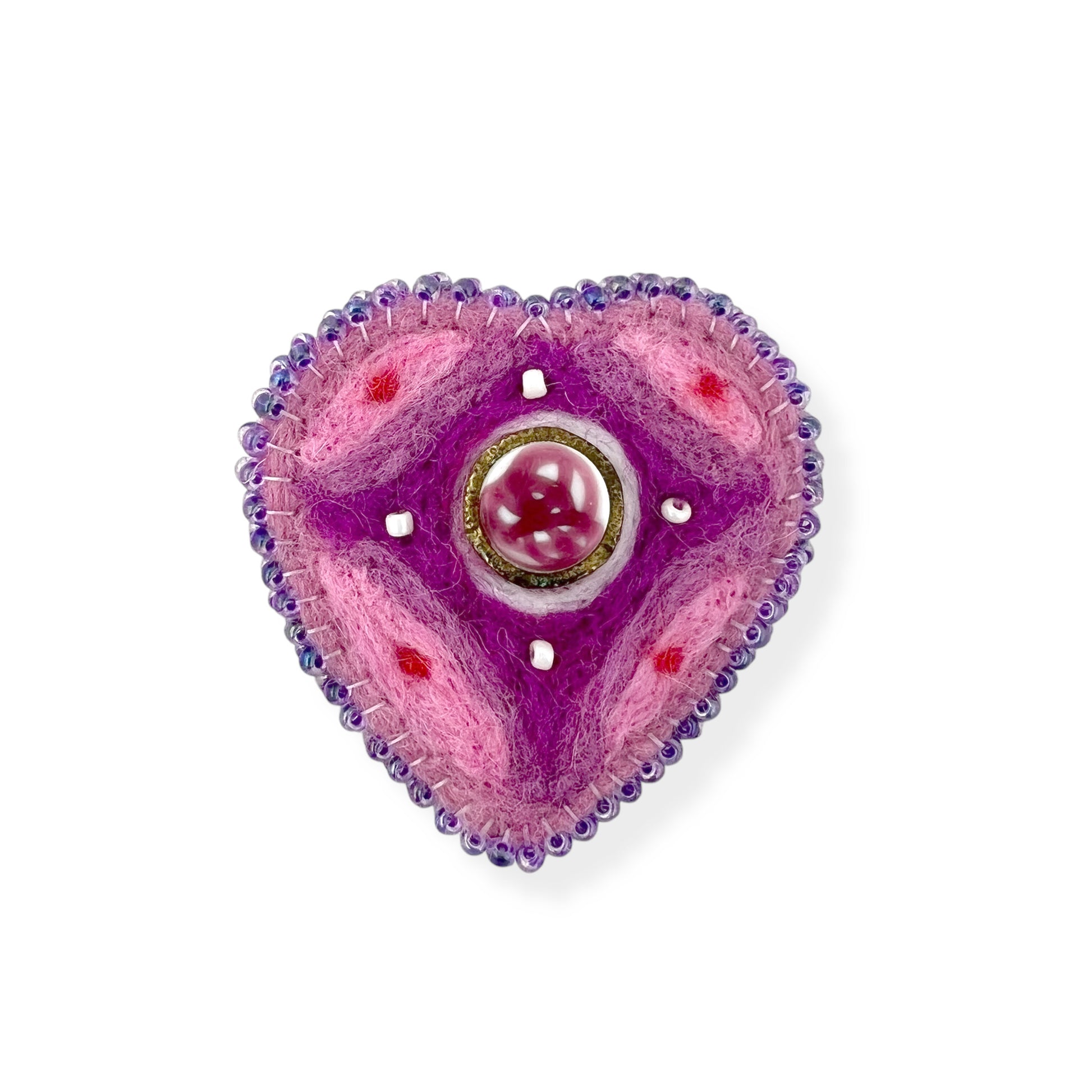 This pink heart felted pin is the second brooch I created this year, edition #2.
