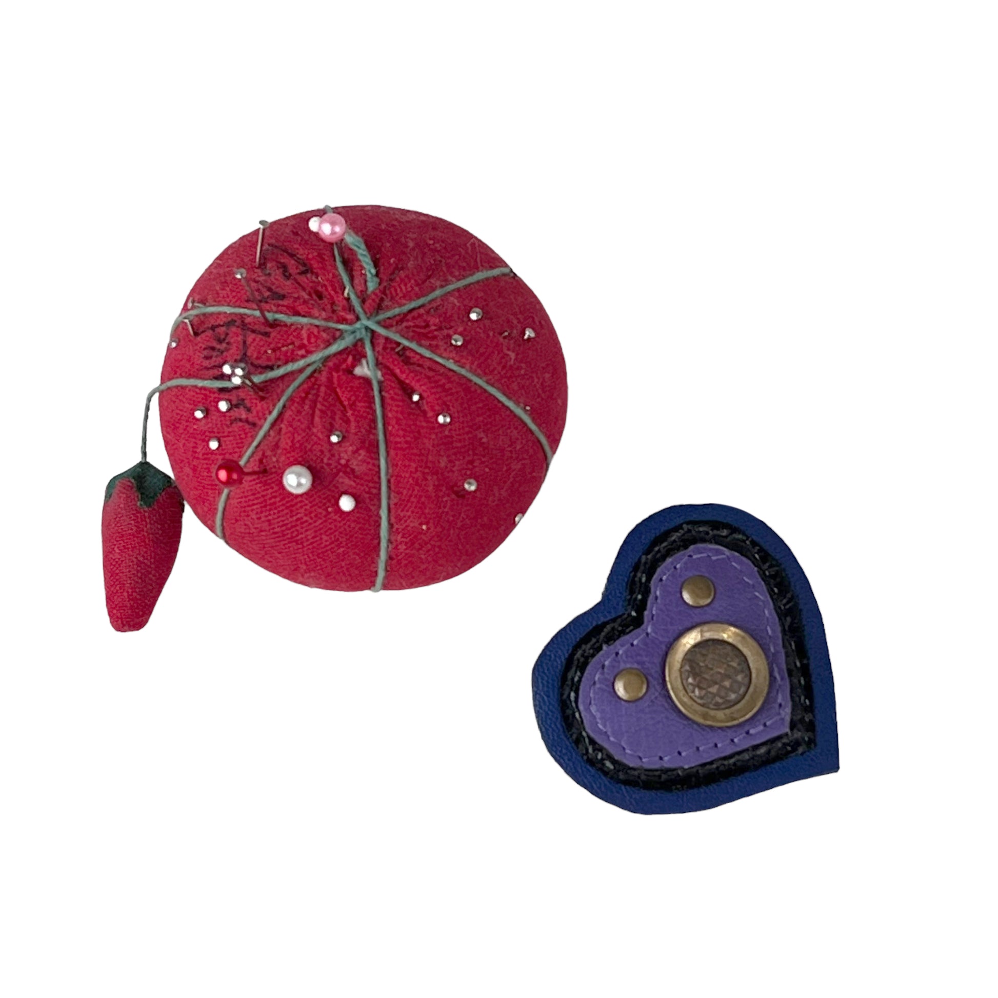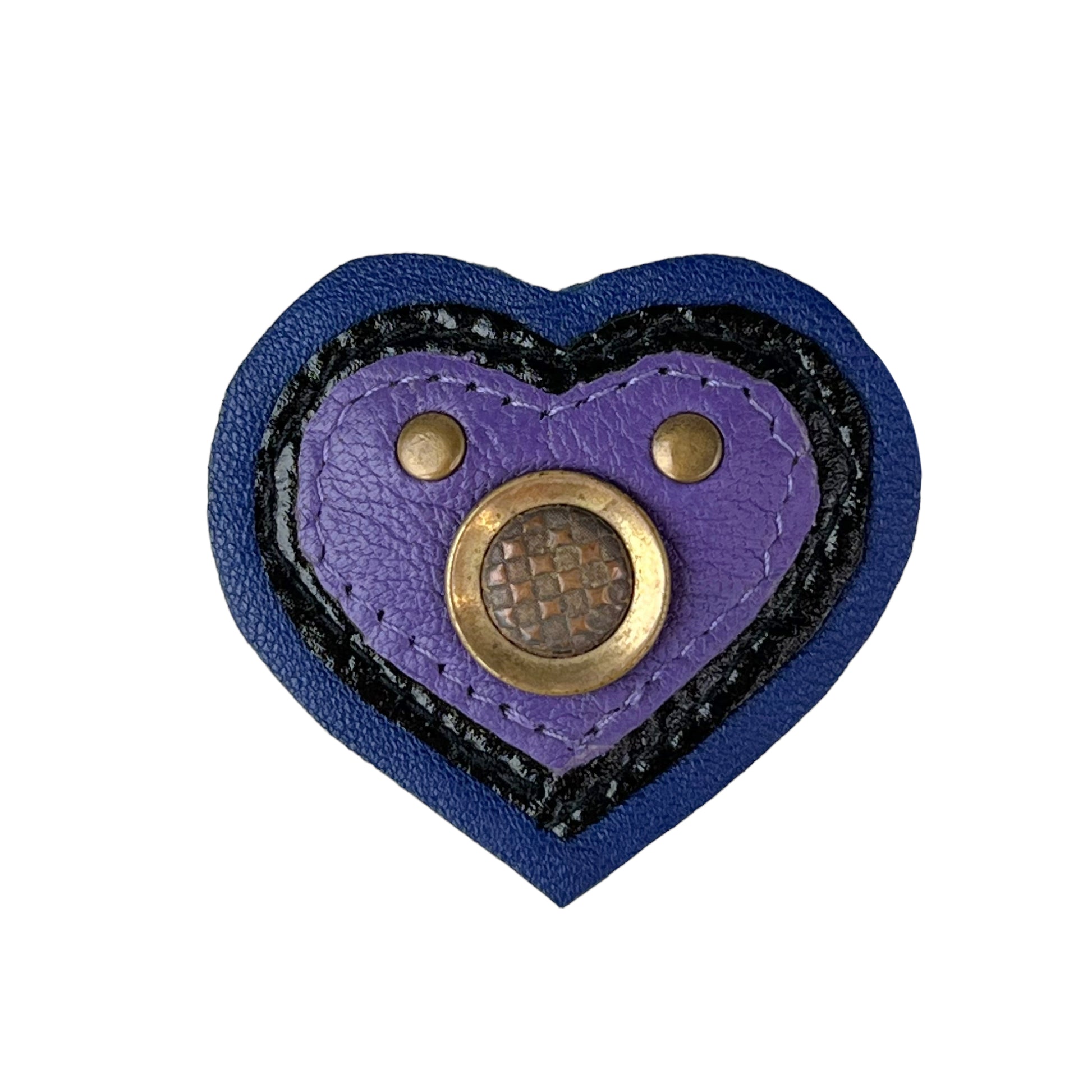 Measuring just under 2" wide this unique sewn lamb leather Heart brooch is finished with a antique Victorian brass button. Riveted on with a metal 1.25 " wide locked pin back.