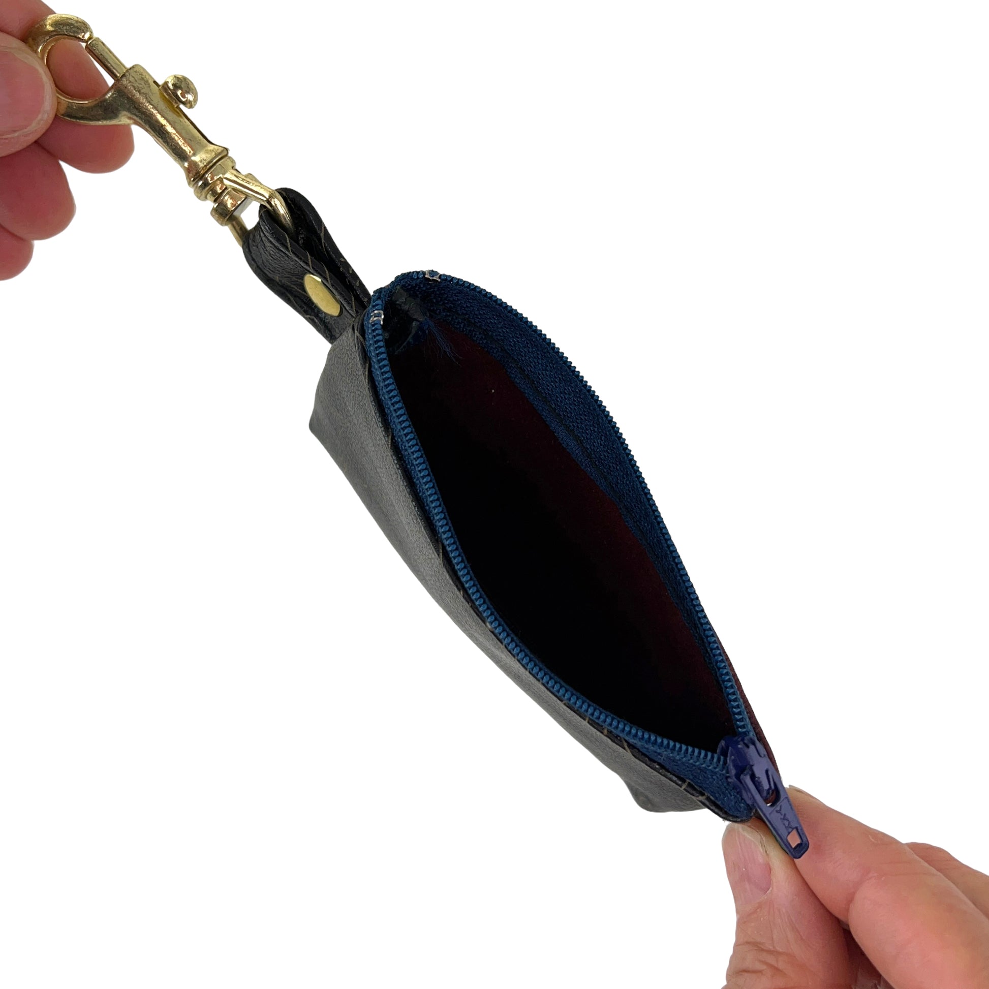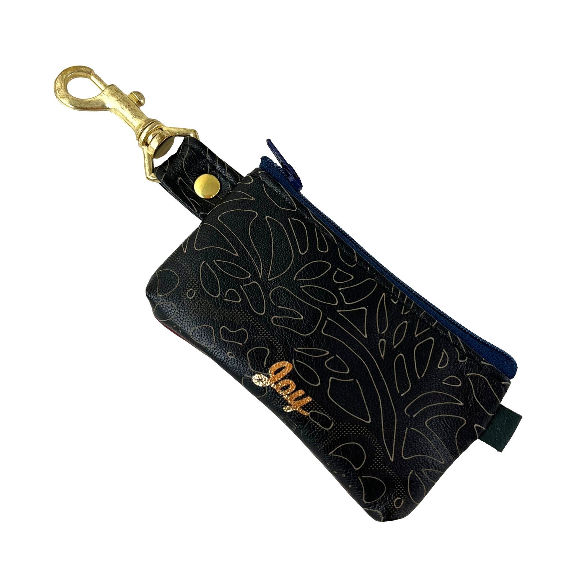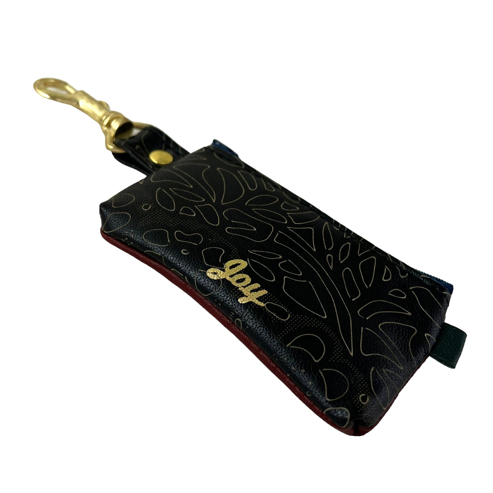 This "JOY" attachable zipper Positive Change / Card purse is made from hand cut lamb leather that has been embossed with gold leaf on both sides. Each one is unique with it's own colour combination. Made to attach to ones key ring.