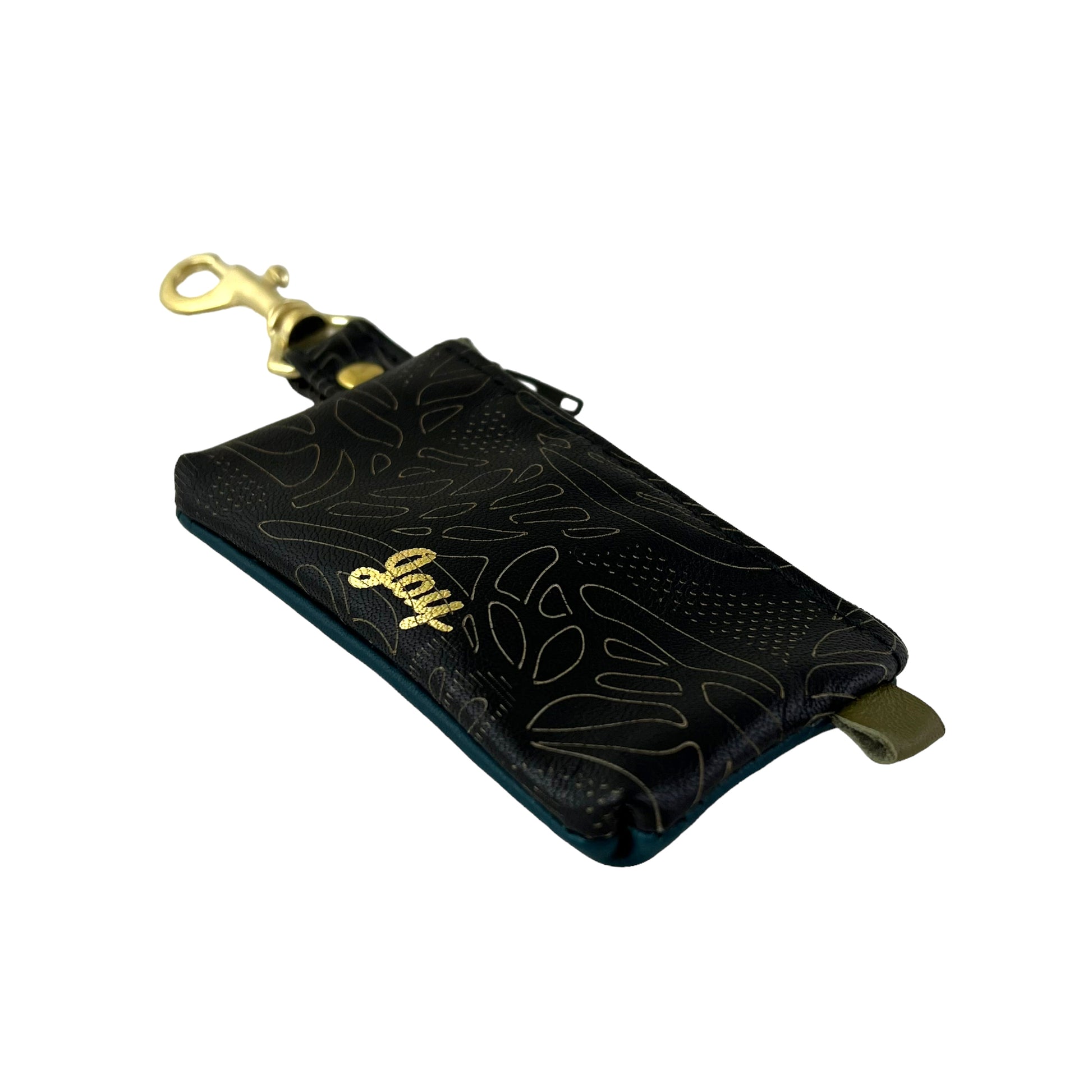 This "JOY" attachable zipper Positive Change / Card purse is made from hand cut lamb leather that has been embossed with gold leaf on both sides. Each one is unique with it's own colour combination. Made to attach to ones key ring.