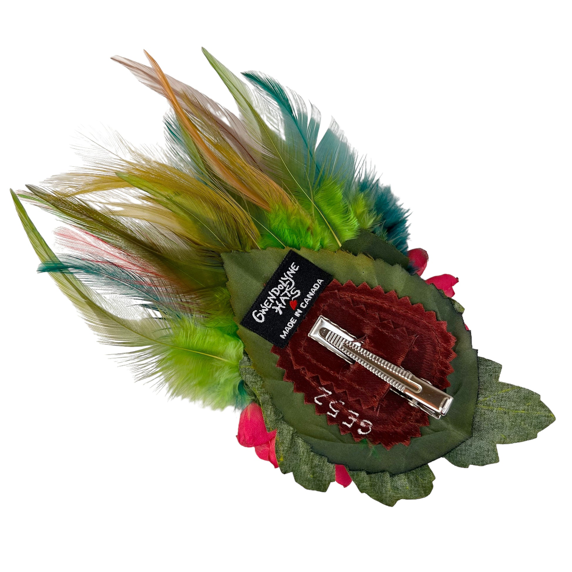 This one of a kind hair clip accessory measures 3.5” wide by 6.5” long.