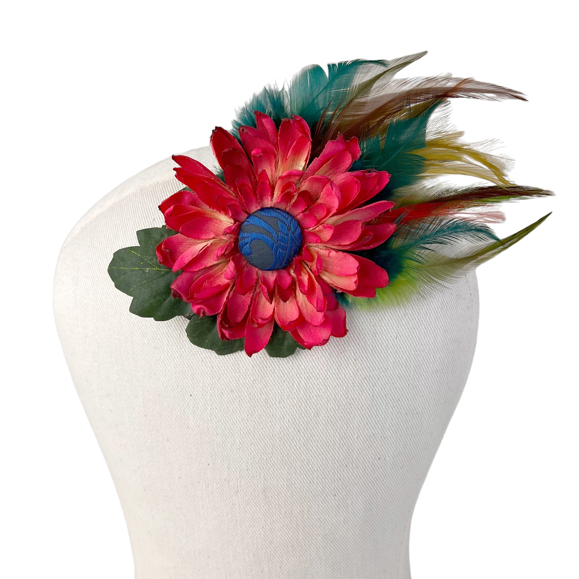 Large Flower Feather Hair Clip Coral Red