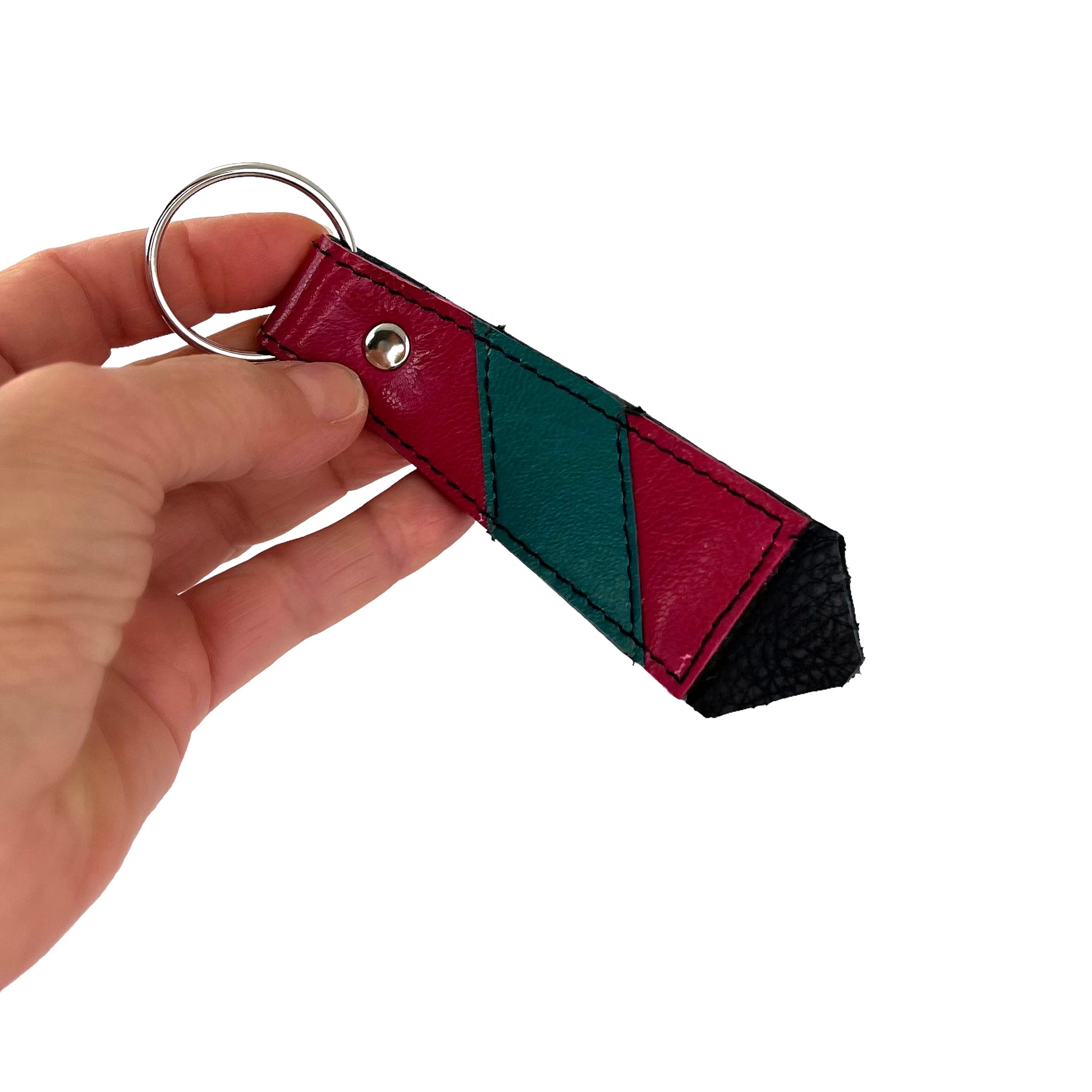 This large unique pink green handmade key ring is both funky is totally Boho. I really like the feel and the size of this key fob design.