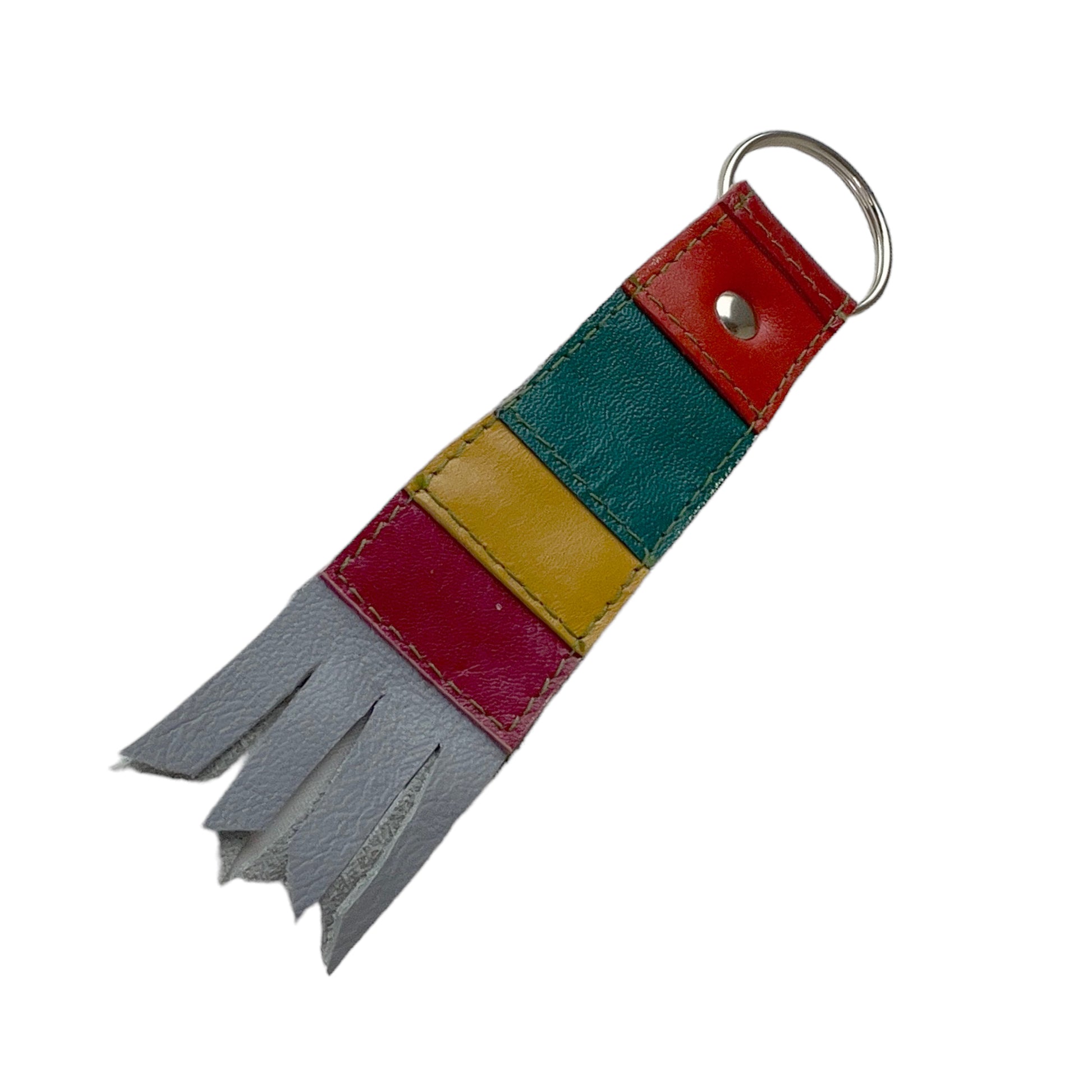 This large unique stripe handmade key ring is both funky is totally Boho. I really like the feel and the size of this key fob design.