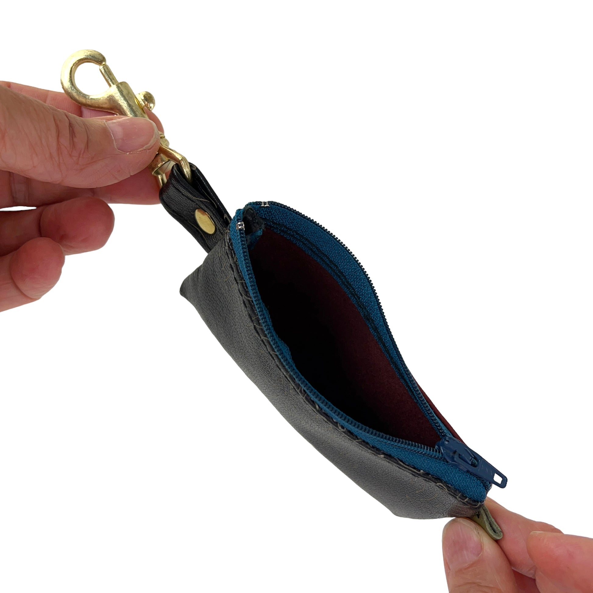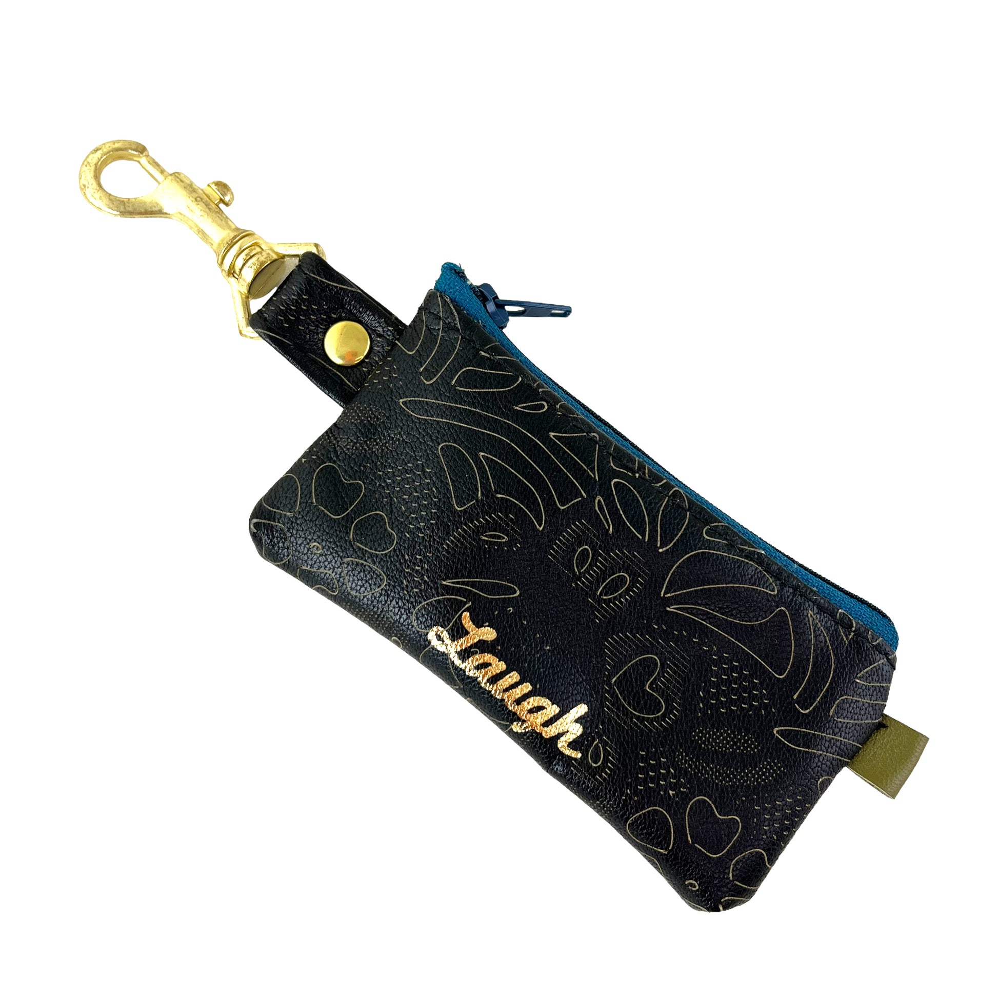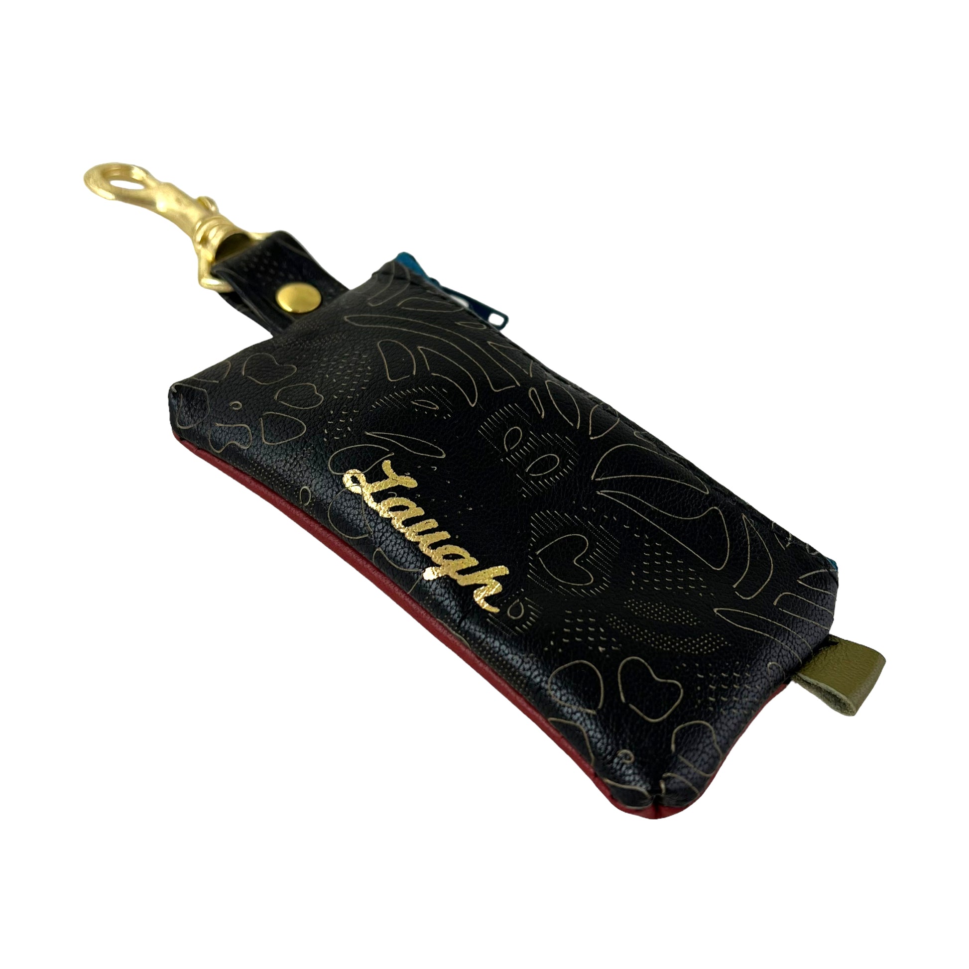 This "LAUGH" attachable zipper Positive Change / Card purse is made from hand cut lamb leather that has been embossed with gold leaf on both sides. Each one is unique with it's own colour combination. Made to attach to ones key ring.