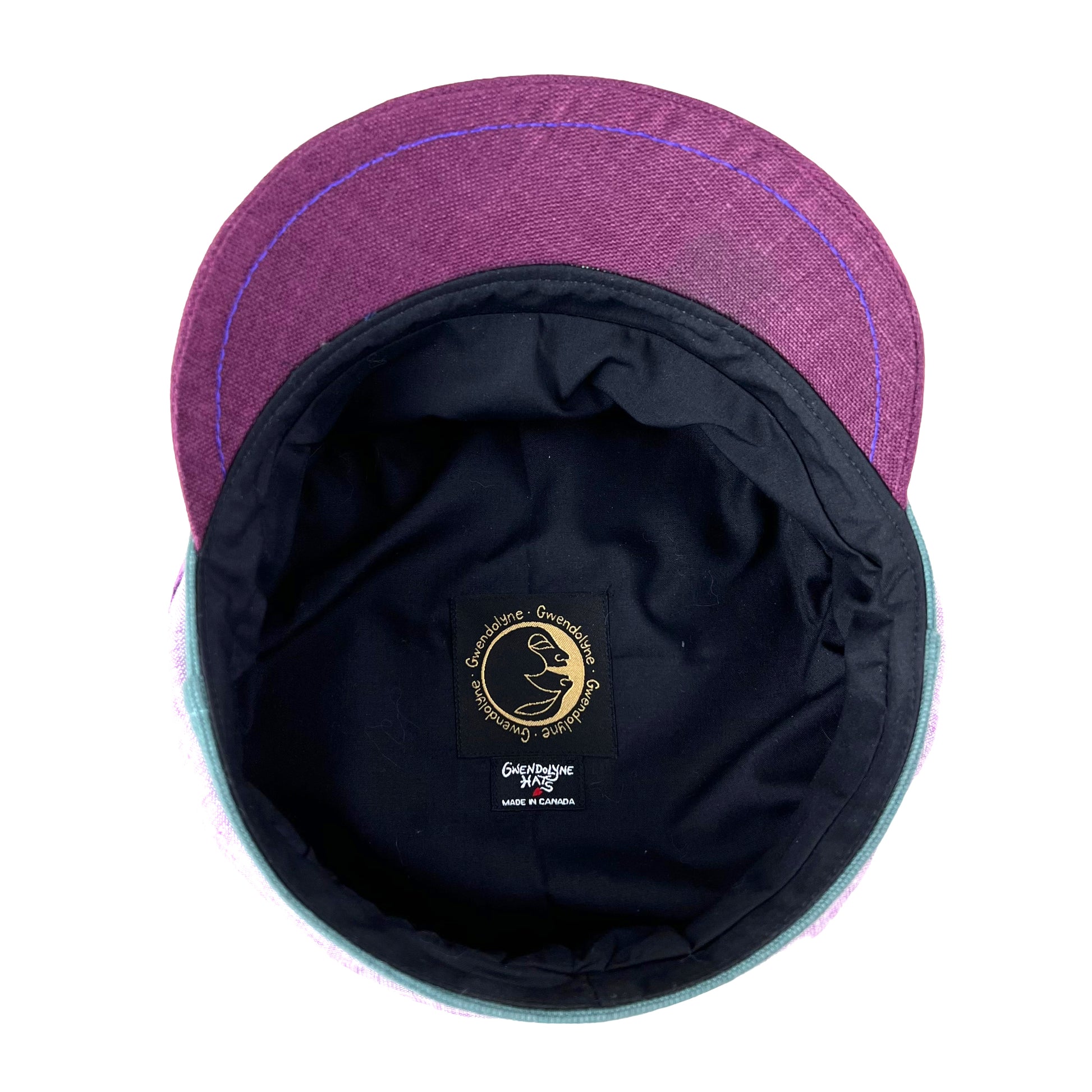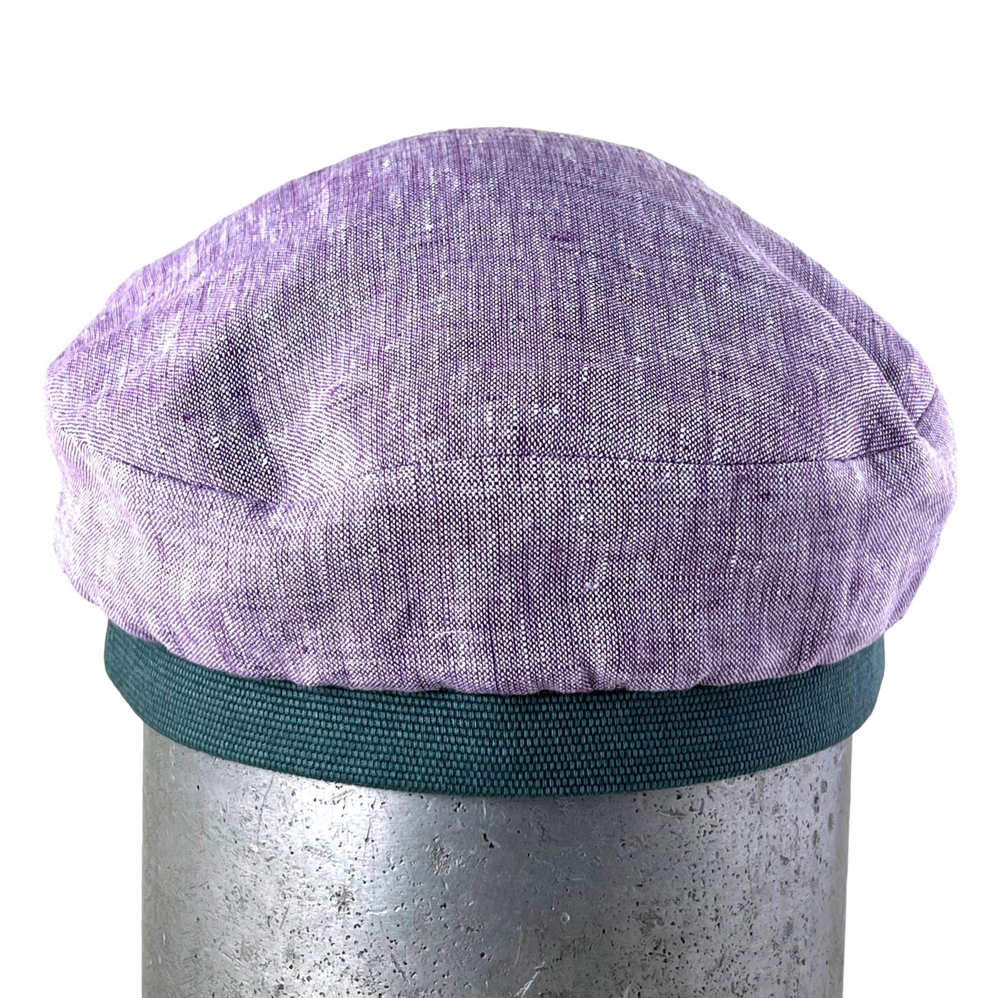 Lilac with Sage Green Band Burgundy Peak Robin Linen Cap Size Medium Small
