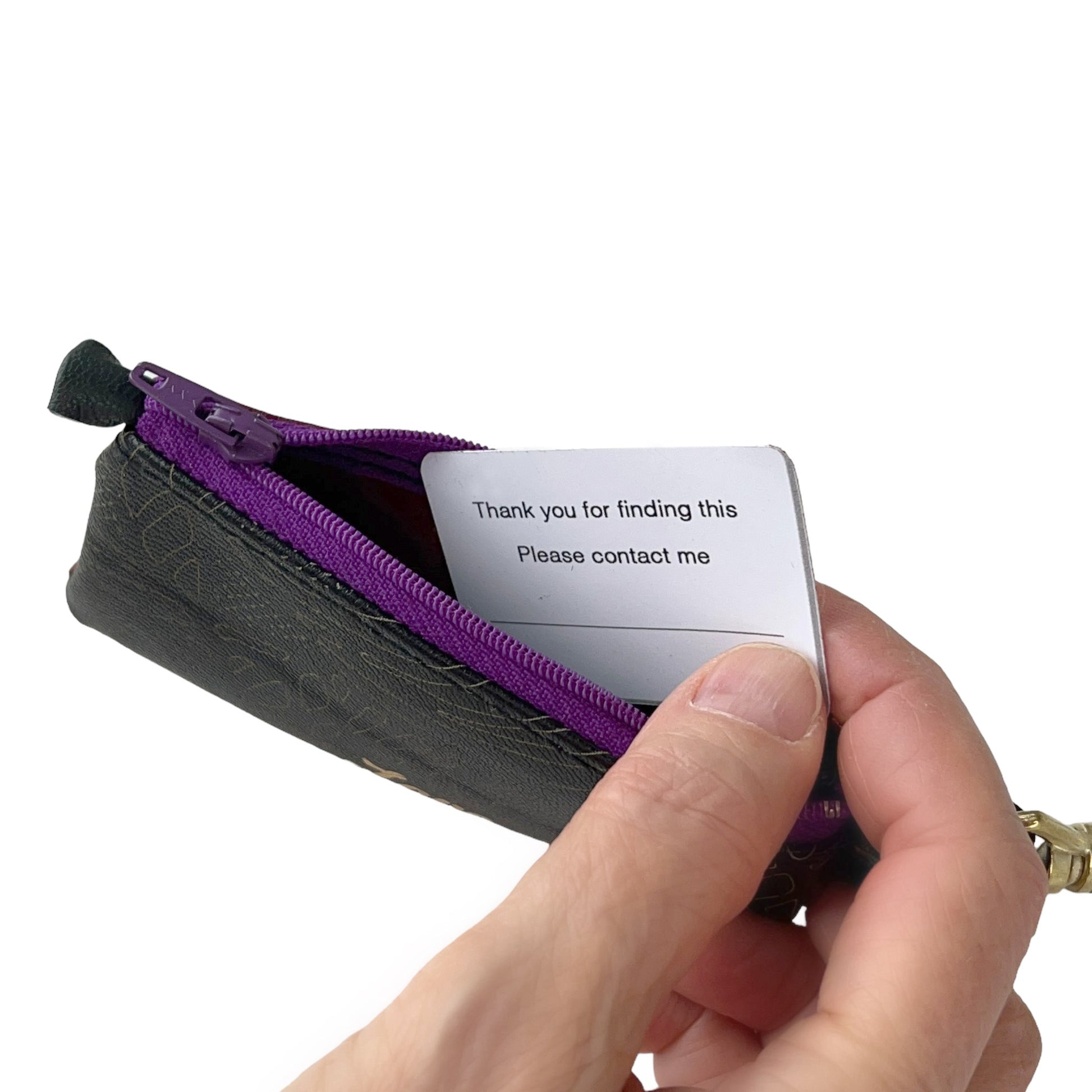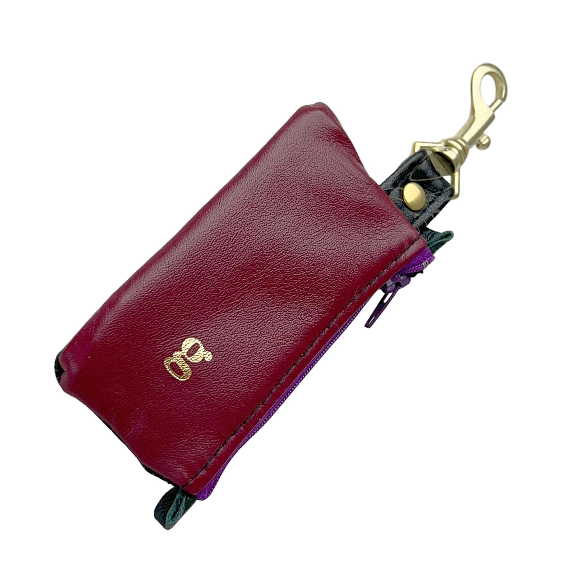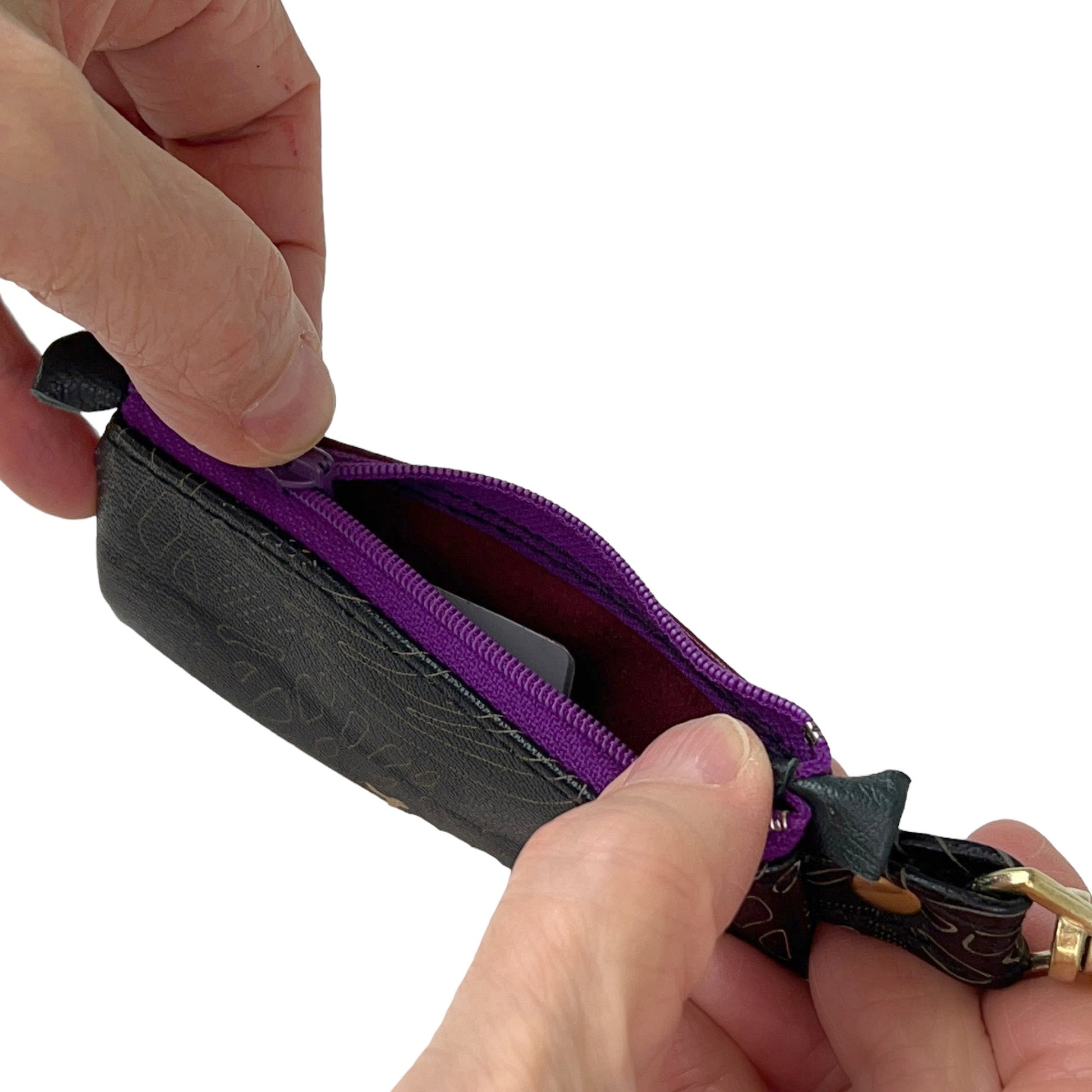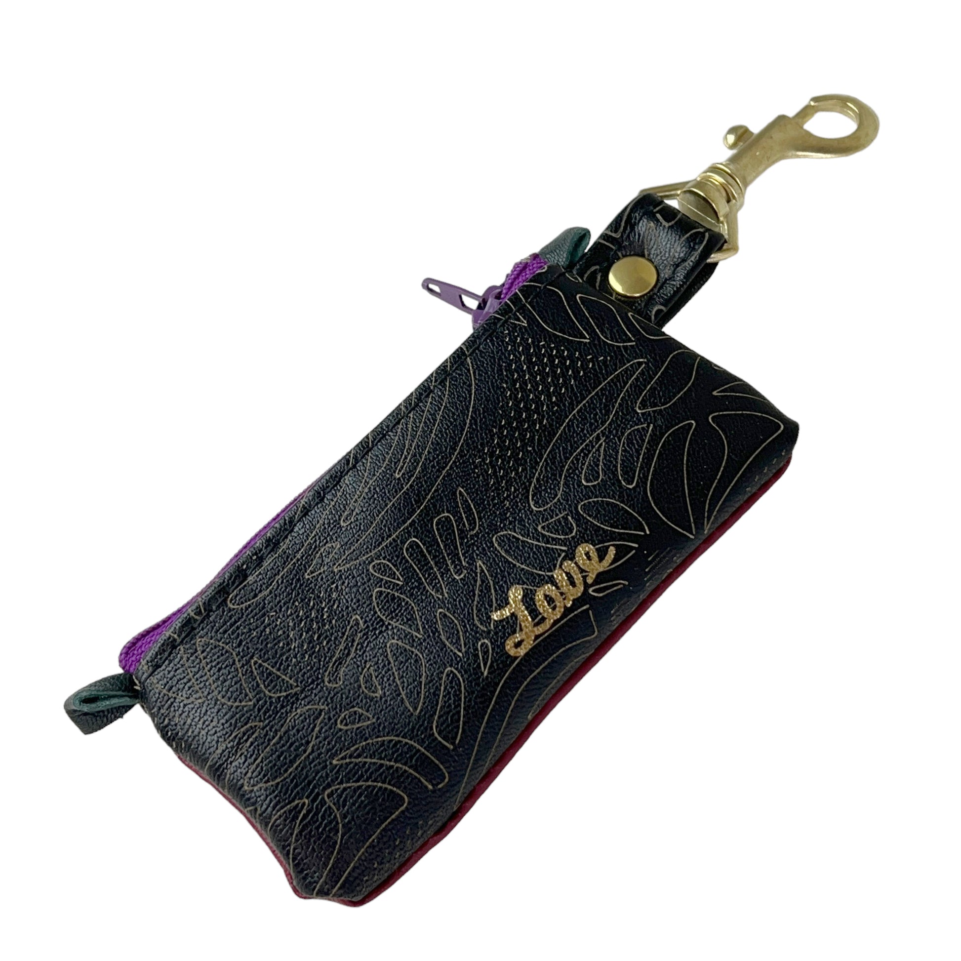 This "Love" attachable zipper Positive change and card purse is made from hand cut lamb leather that has been embossed with gold leaf. Each one is unique with it's own color combination. Made to attach to ones key ring.