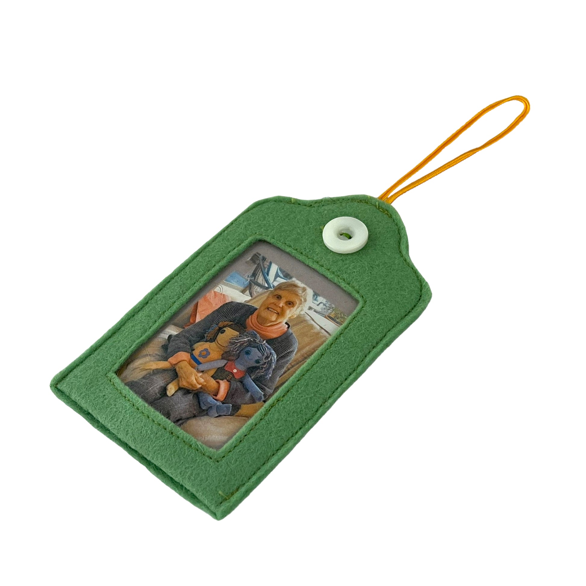 I was quite taken with these felt frames and purchased eleven of them! I envision inserting photos of my family and friends to adorn my holiday tree and then gifting them to the individual shown in a given frame. Each frame is embellished with a vintage button and has its own unique personality. I am delighted with this purchase!