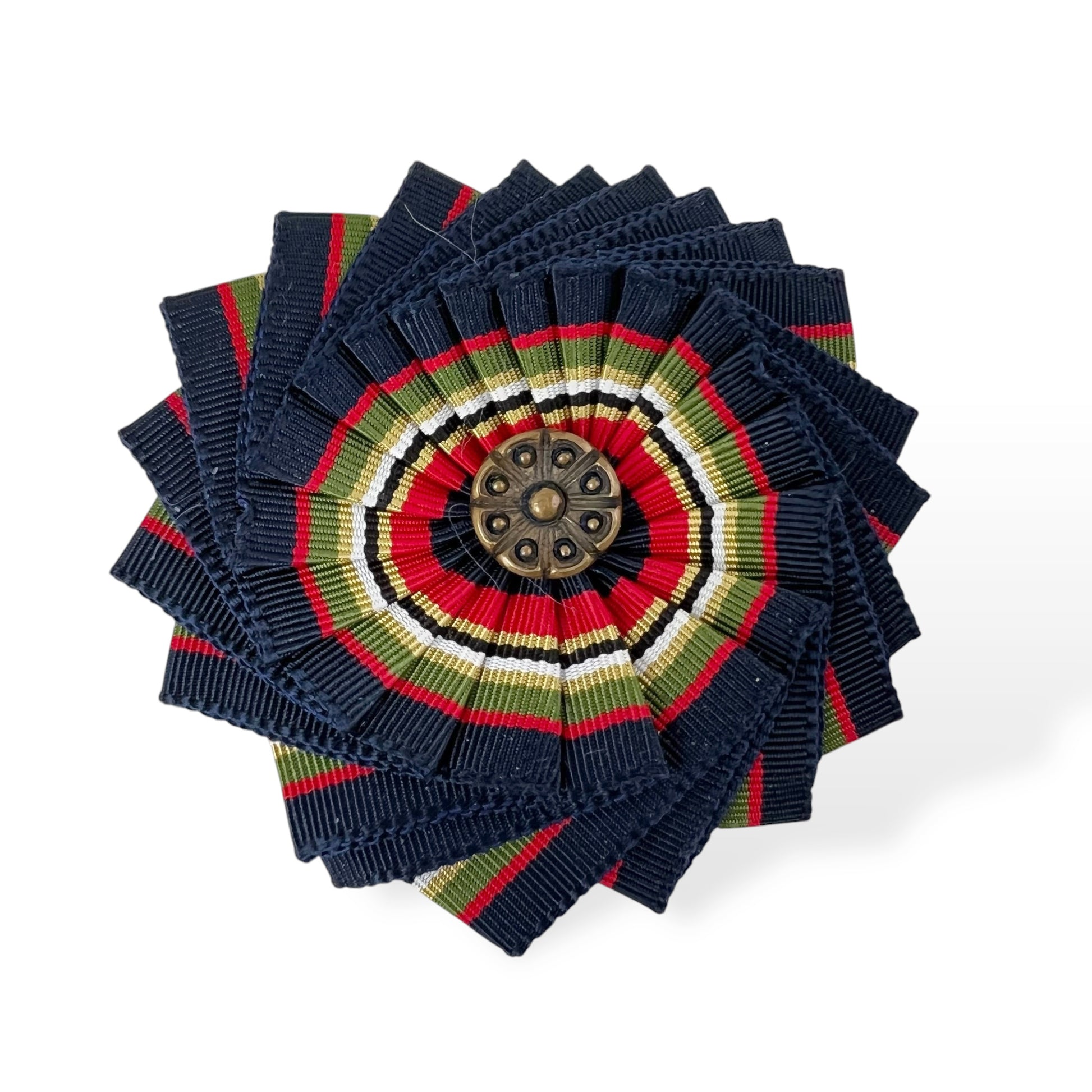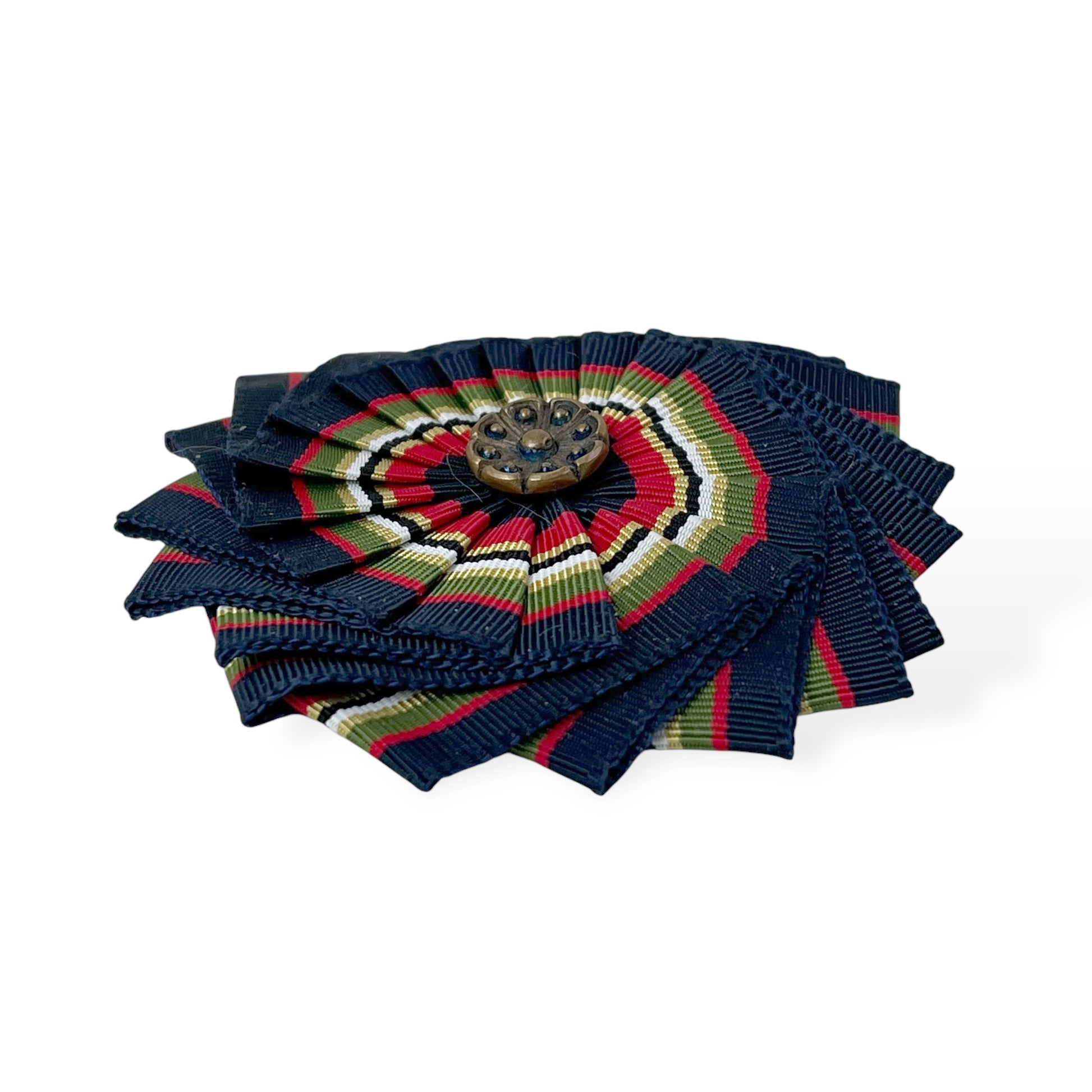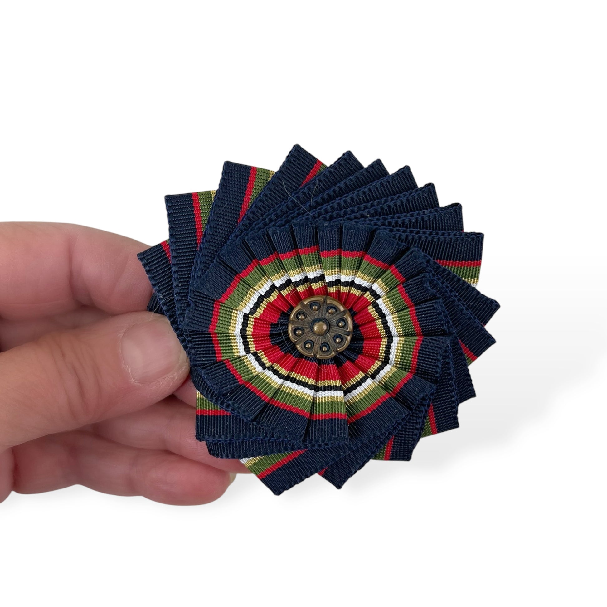 Navy Red Green White Antique metal Button Cockade Ribbon Brooch edition #2
