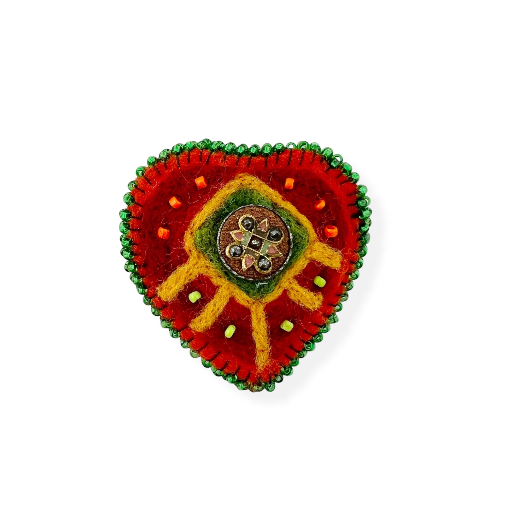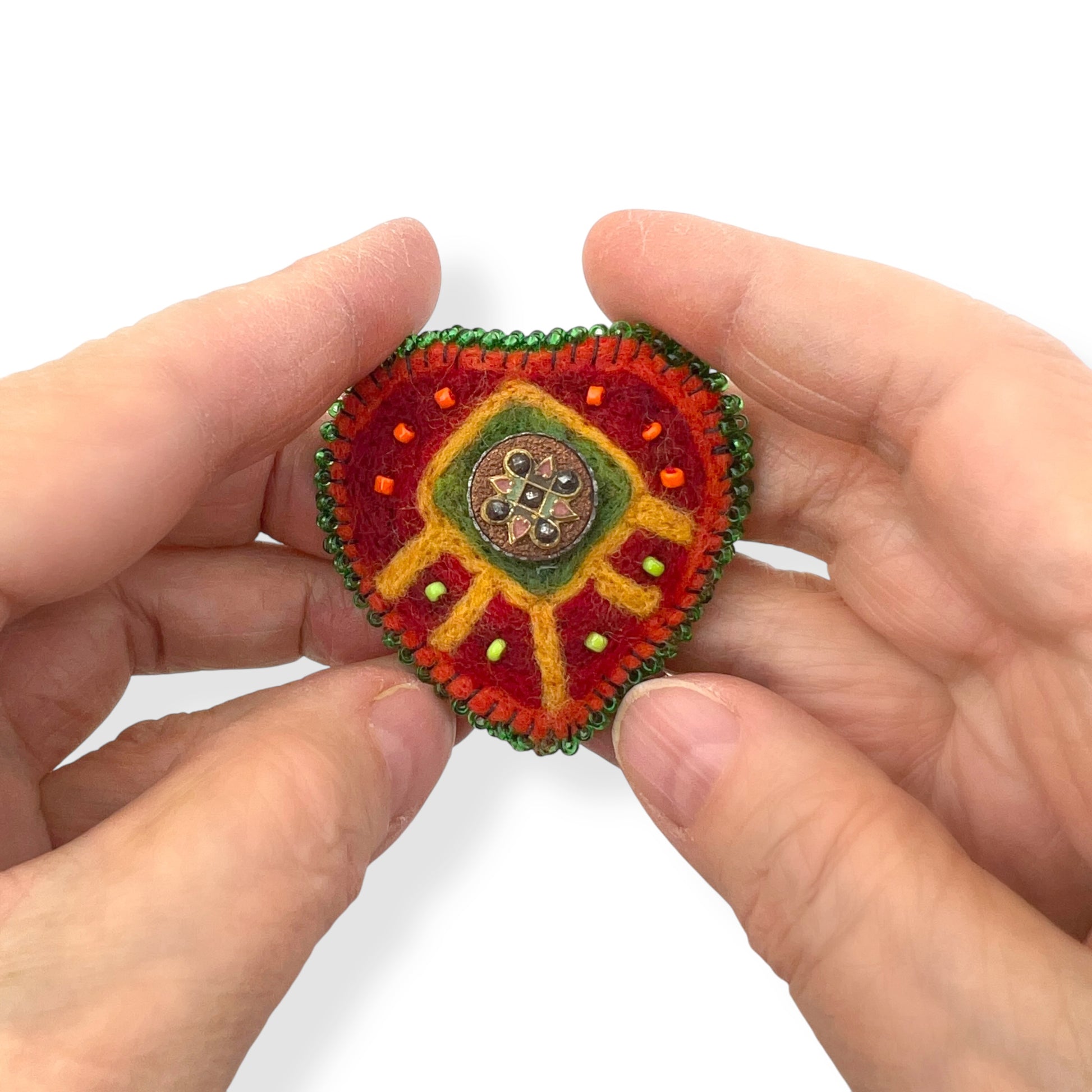 Orange Red Green Hand Felted Heart Brooch 2025 Edition #10
