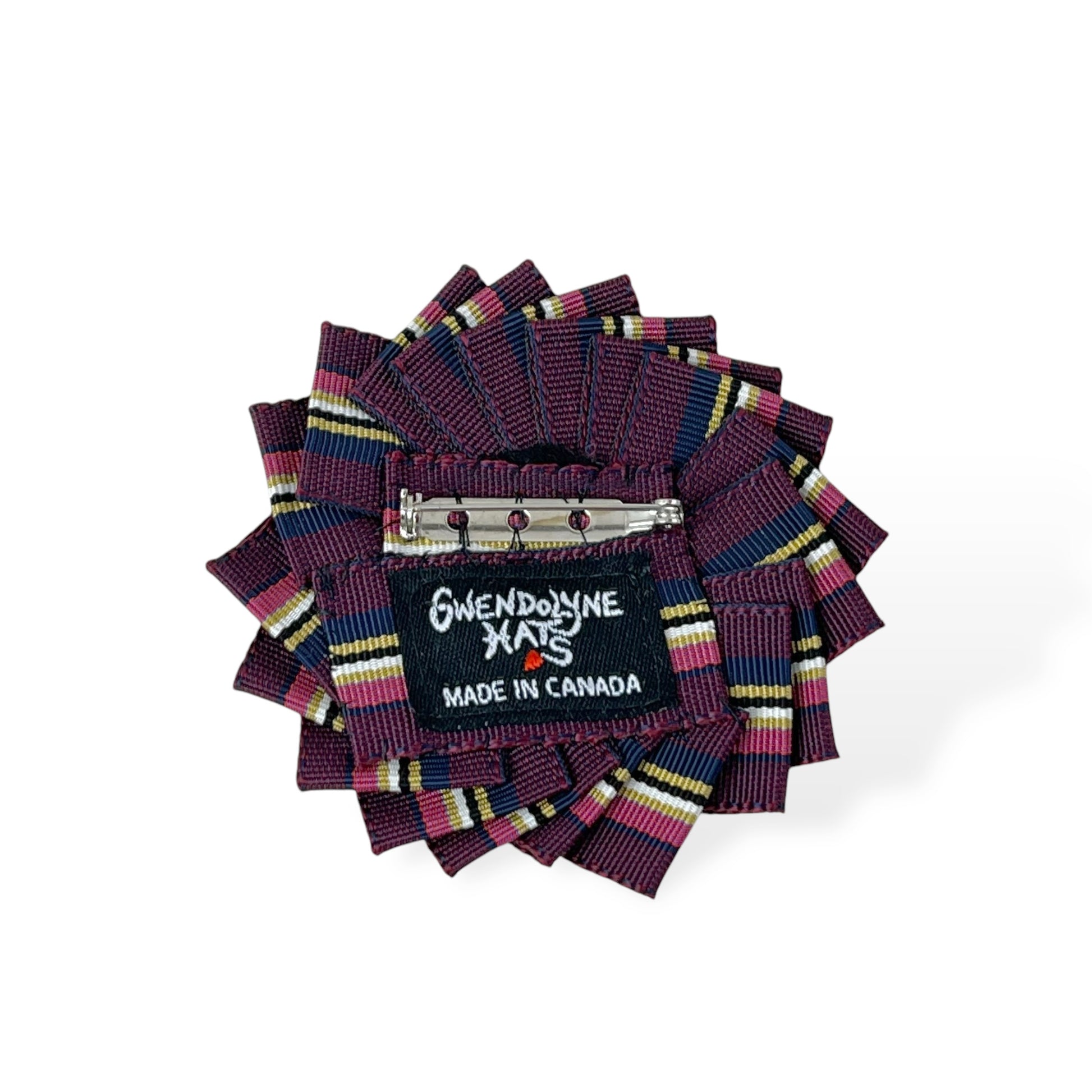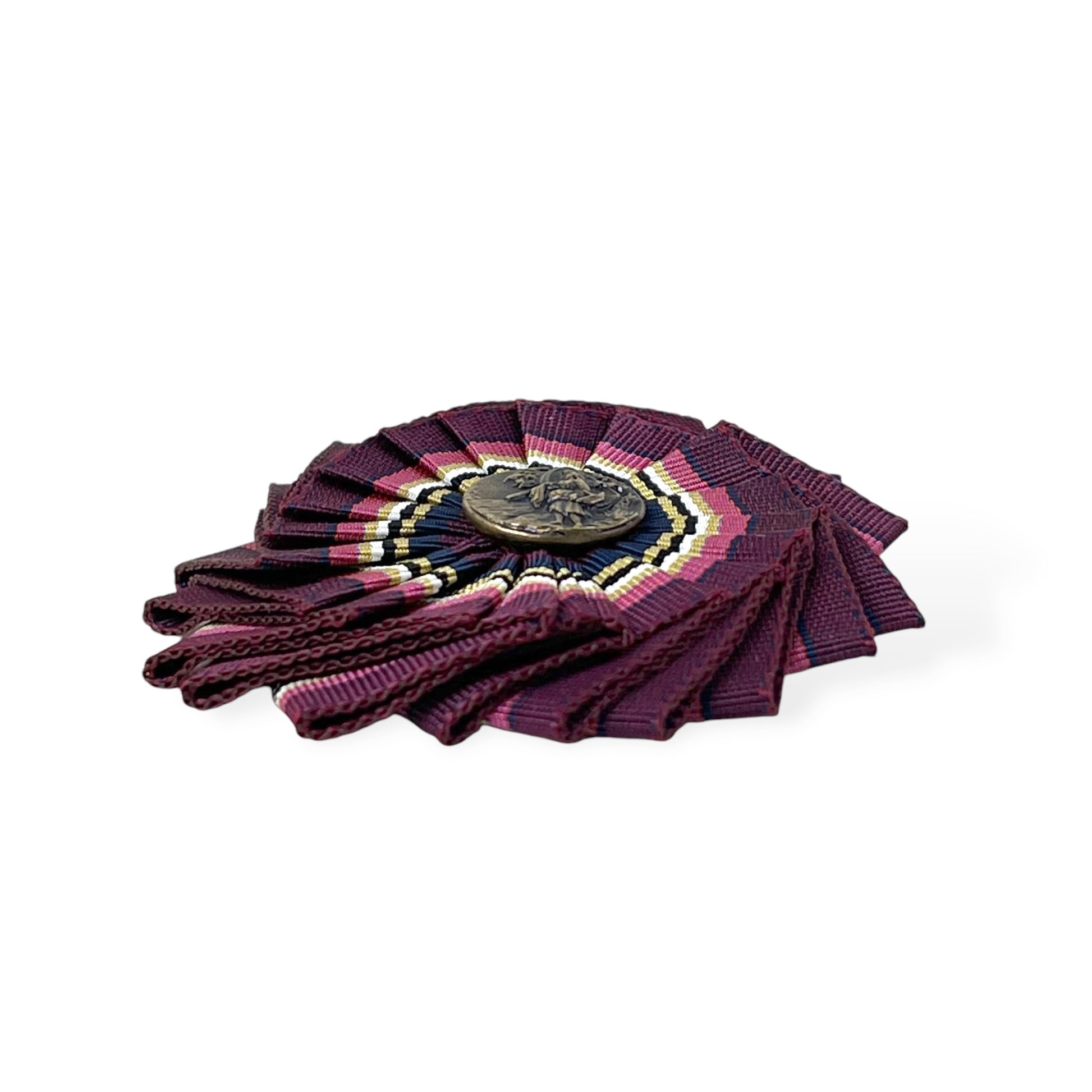 Purple Pink White Cockade Ribbon Brooch Antique Metal Picture Button edition # 7