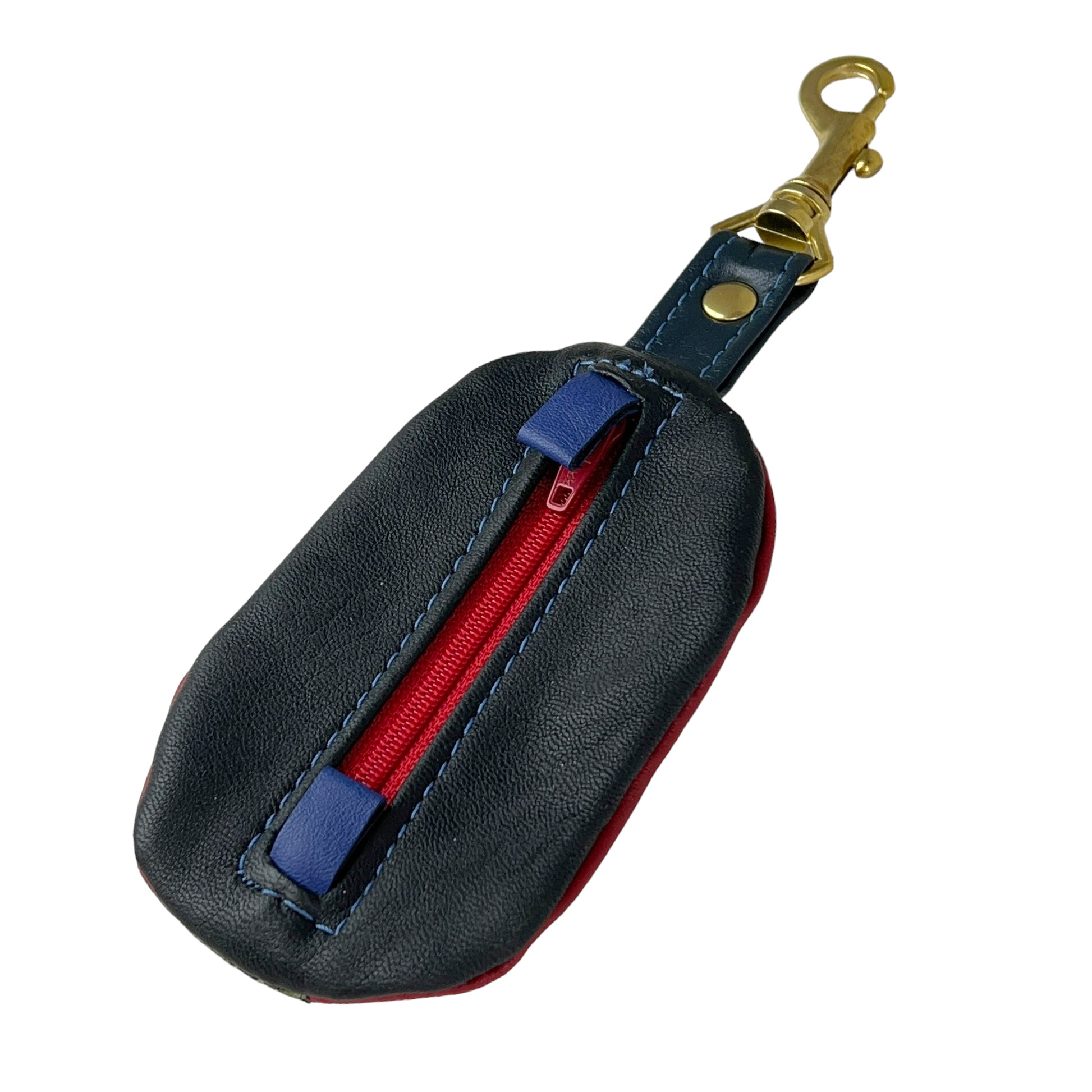 This unique black and red lamb leather zipper coin purse is for ones change. It measures 4.5" long and 2.75" wide.