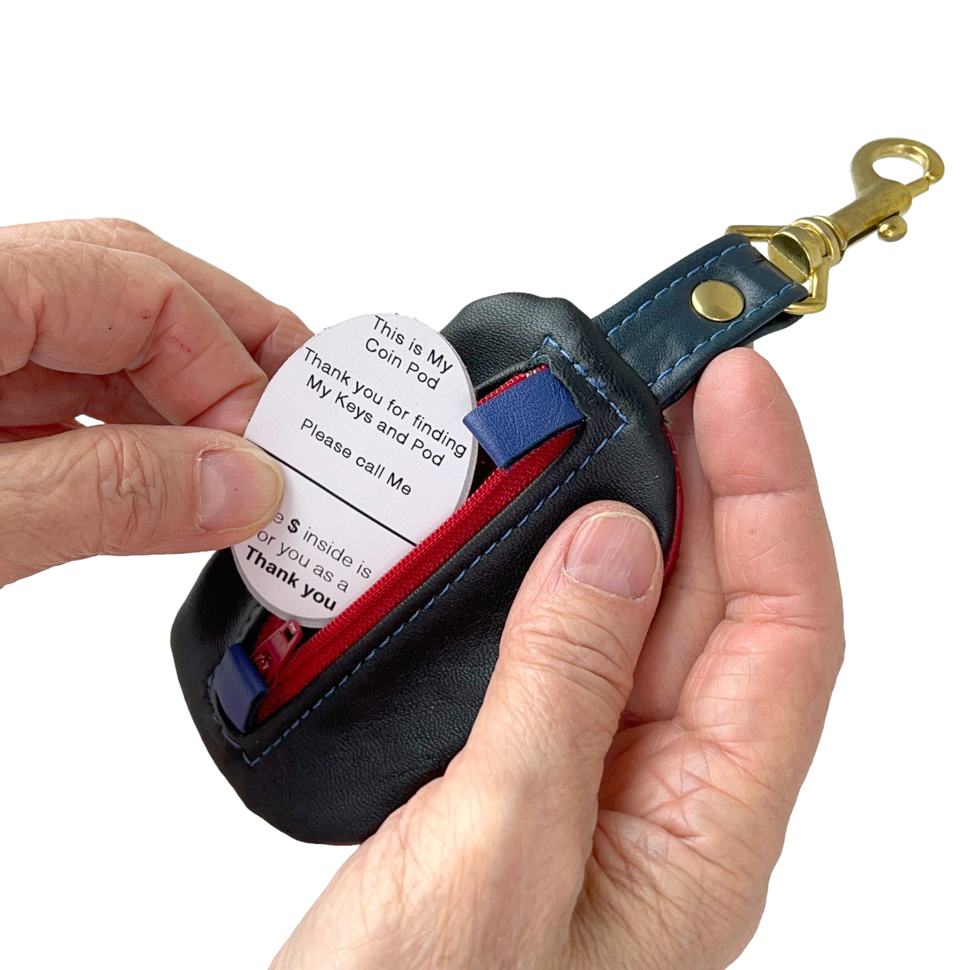 “This is my Coin Pod. Thank you for finding my keys and pod. Please call ….. The $ inside is for you as a Thank you”