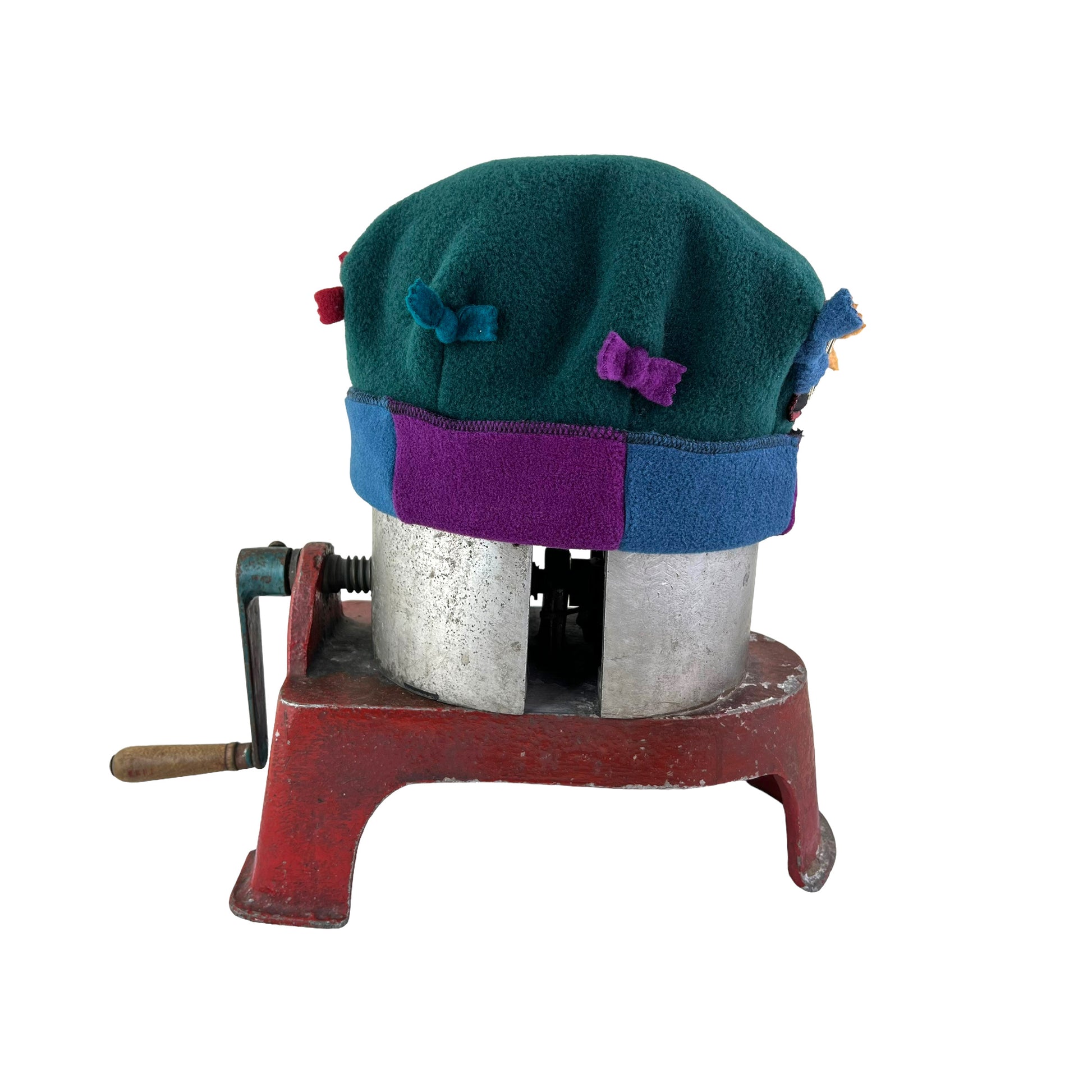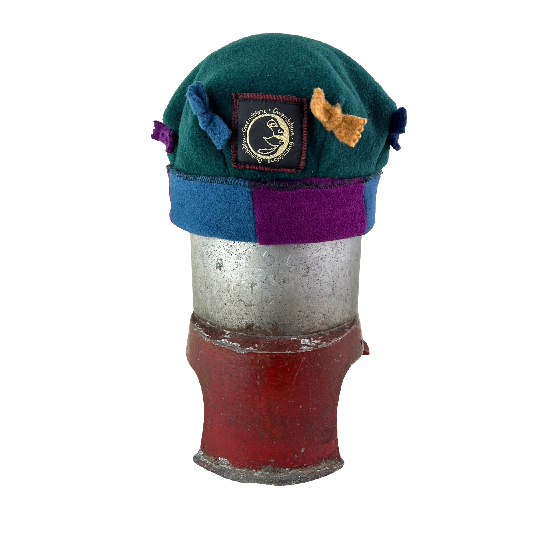 This large size 3 colour polar fleece hand cut colourful hat is one of a kind. It fits someone's head that measures 23" in the round.