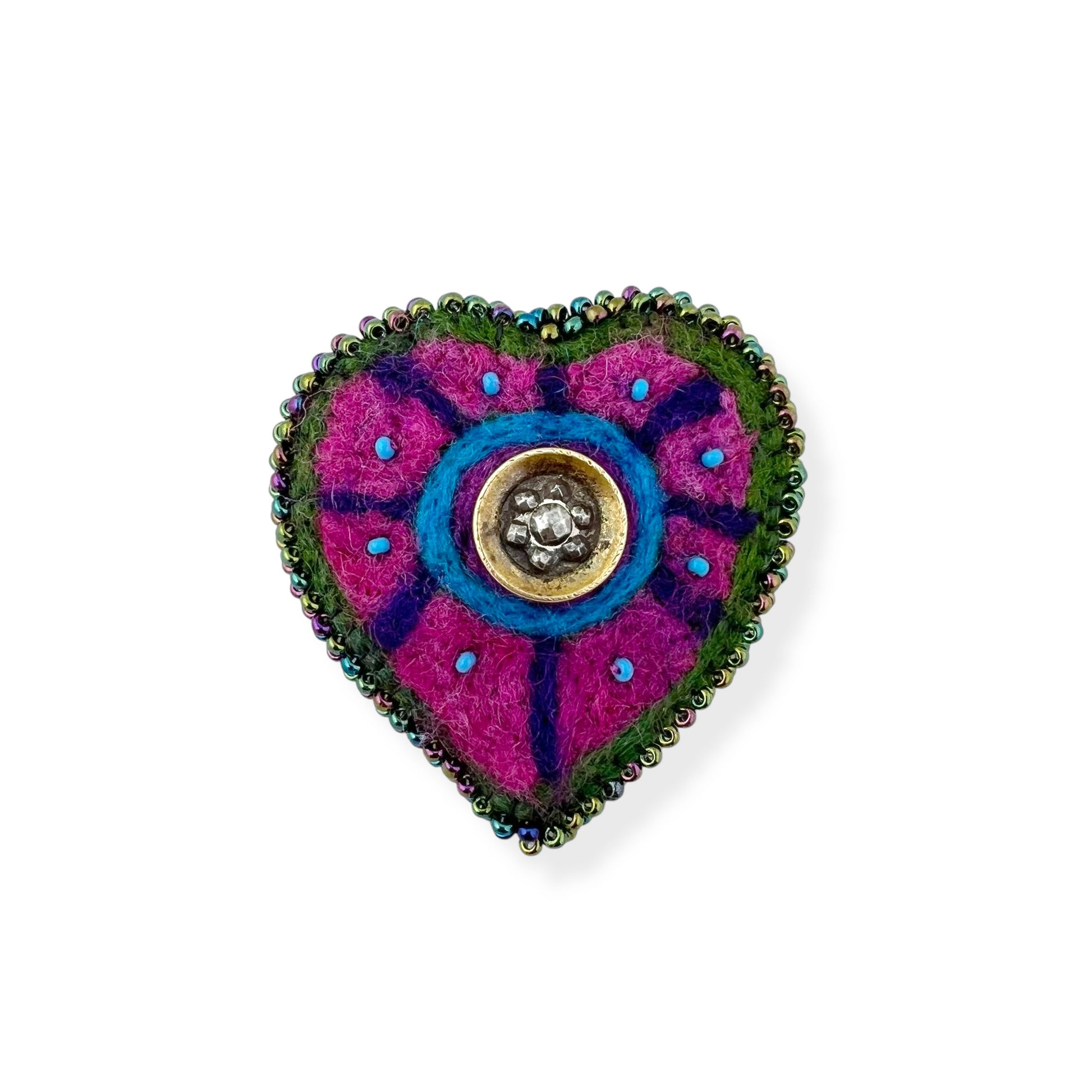 Purple Pink and Green Hand Felted Heart Brooch 2025 Edition #8