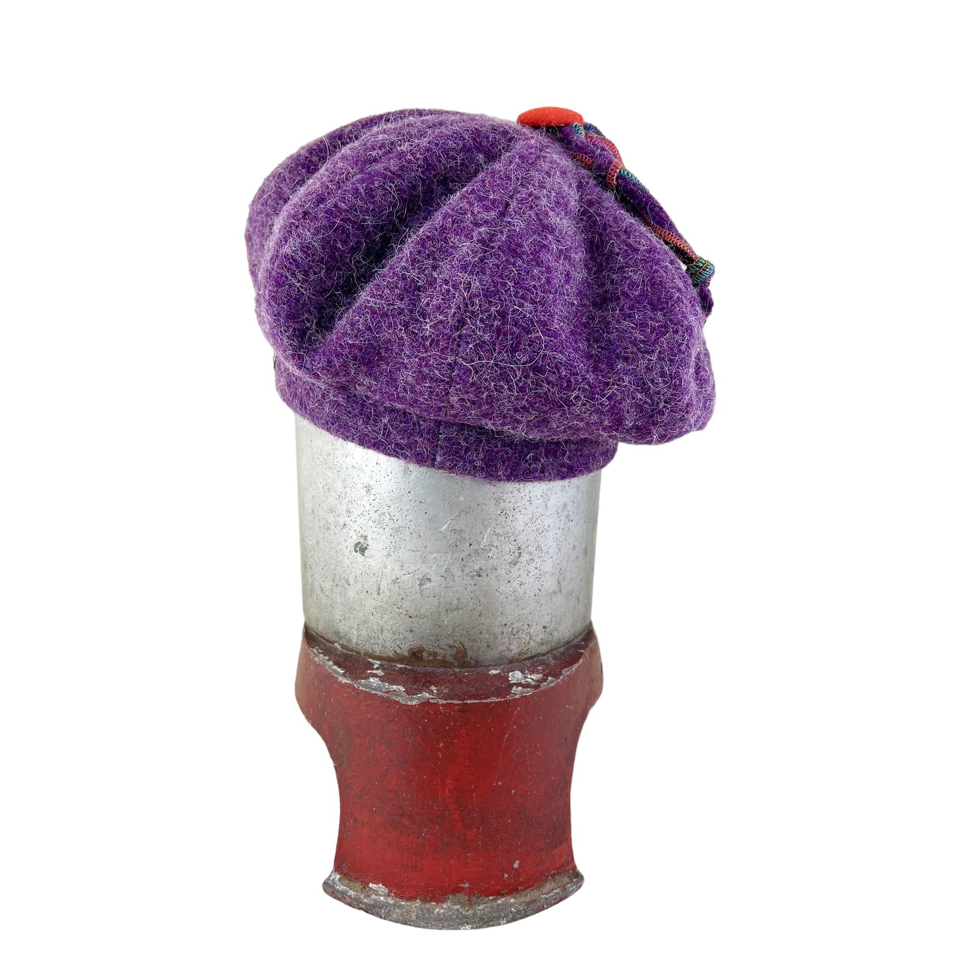 Purple Pumpkin Wool Knit Beret Tam Medium to Large Orange Button PPE6