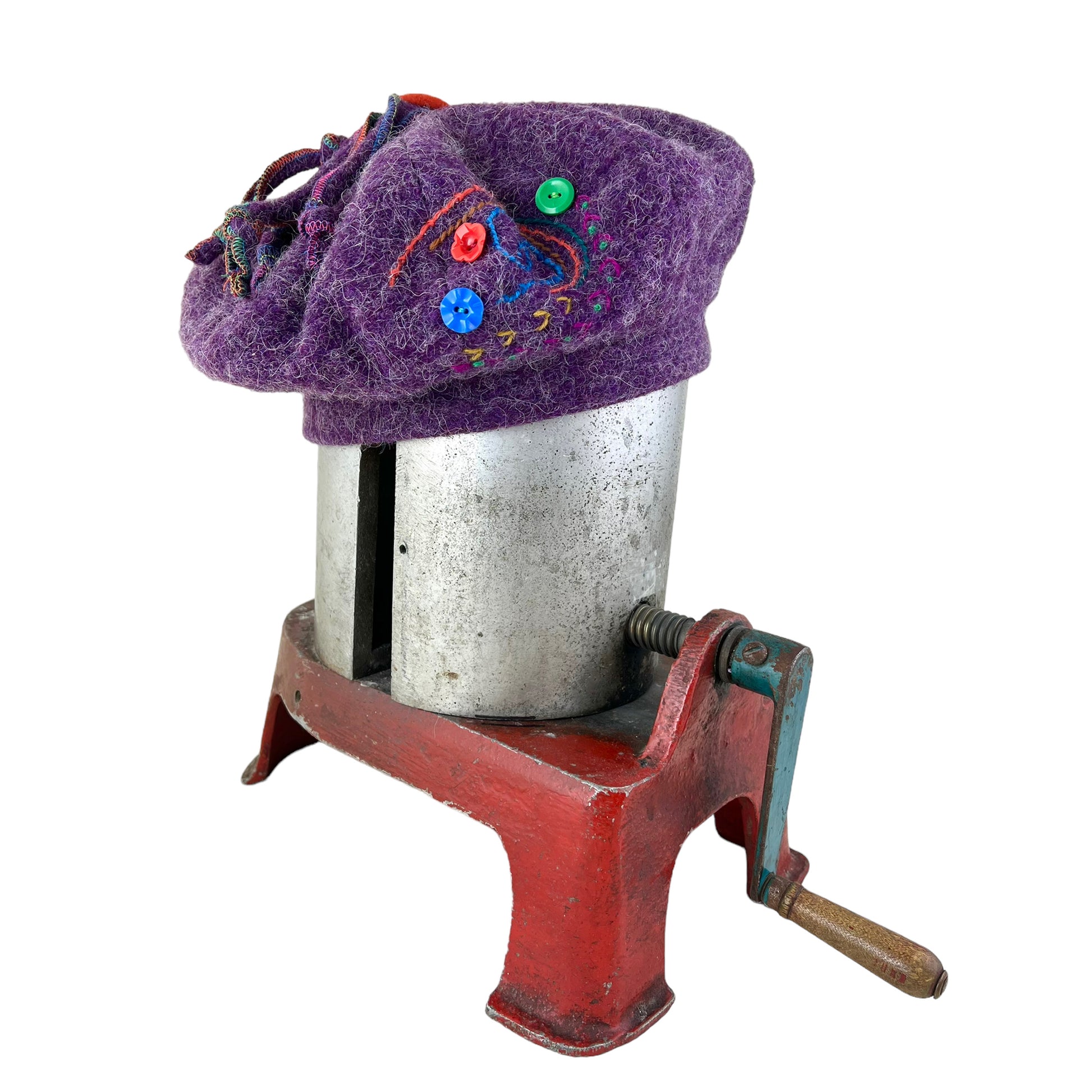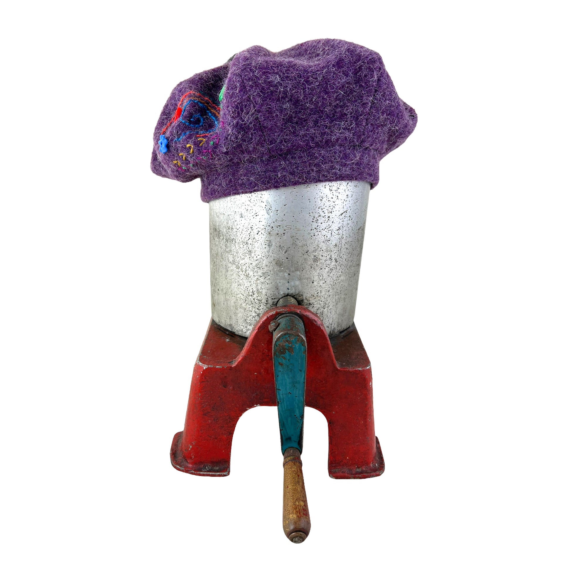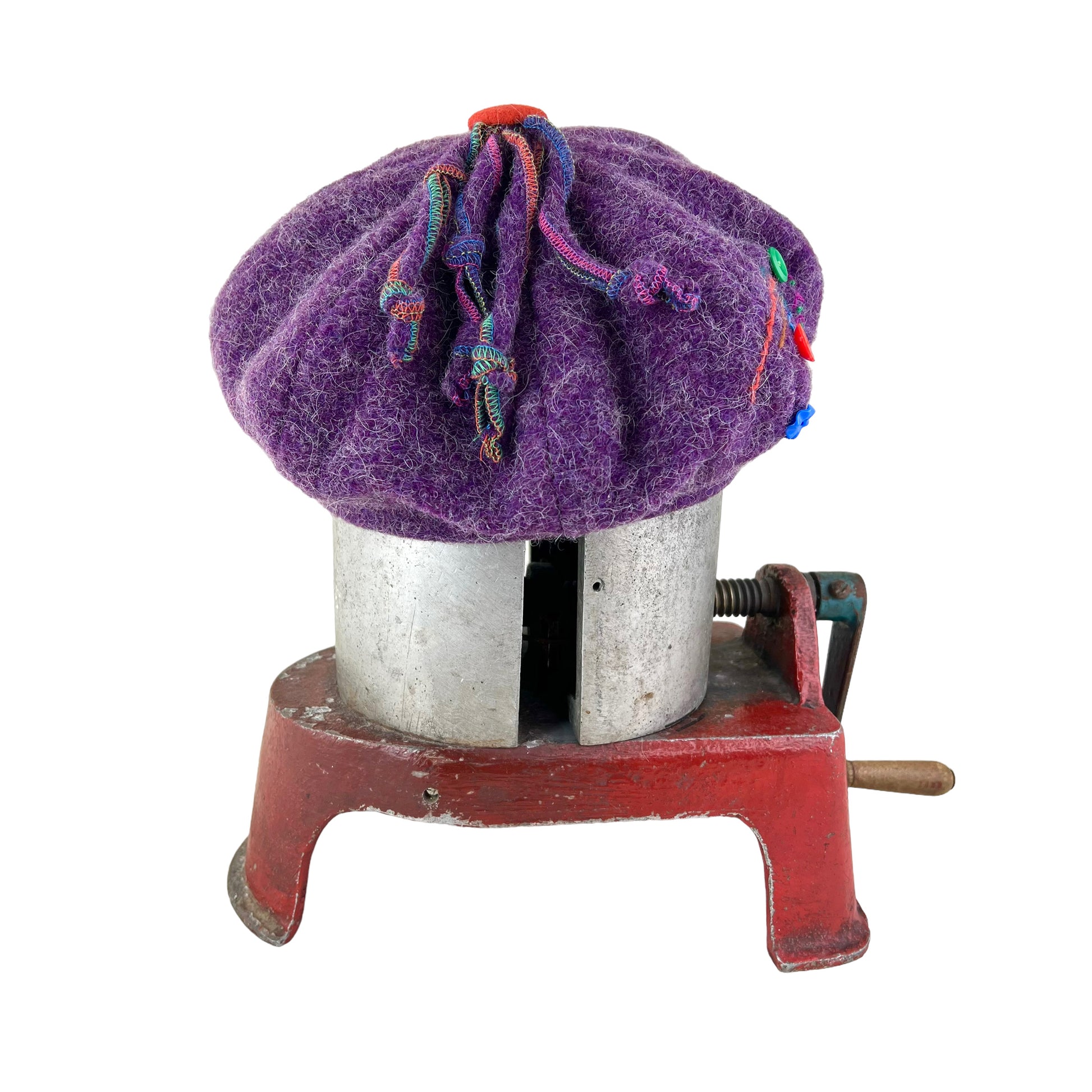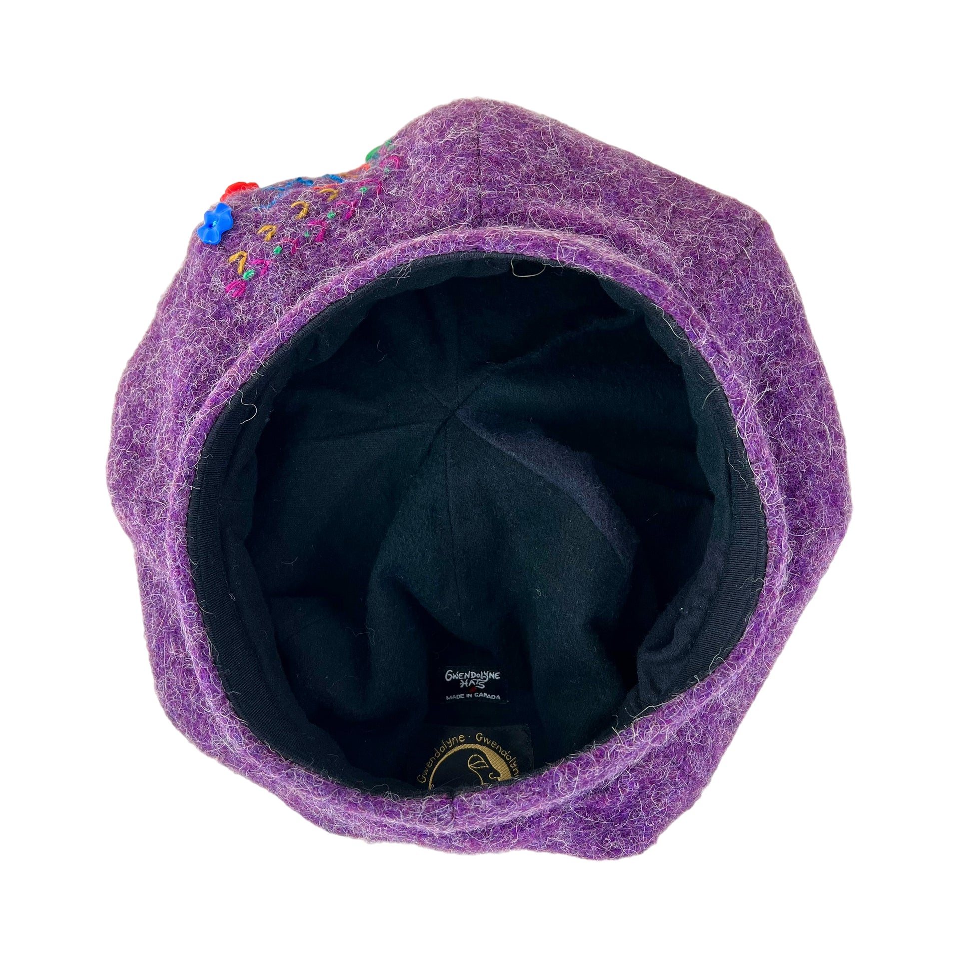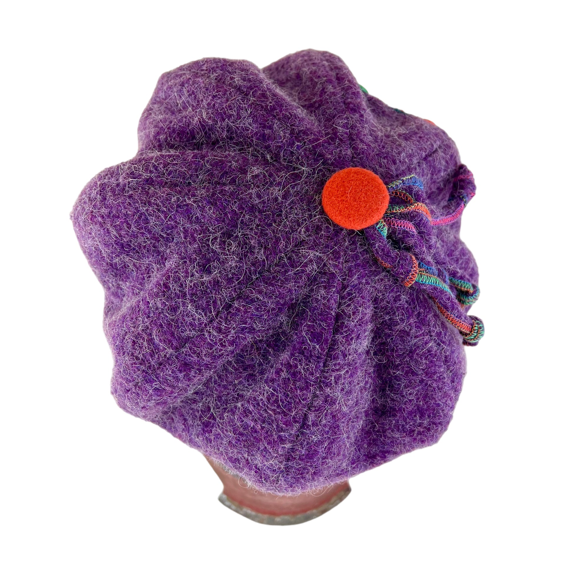 The Purple Pumpkin is a full body wool knit sewn beret tam. It is both cozy and comfy for the cold winter months. This tam has been embellished with some wool hand embroidery and several vintage buttons for some extra fun.