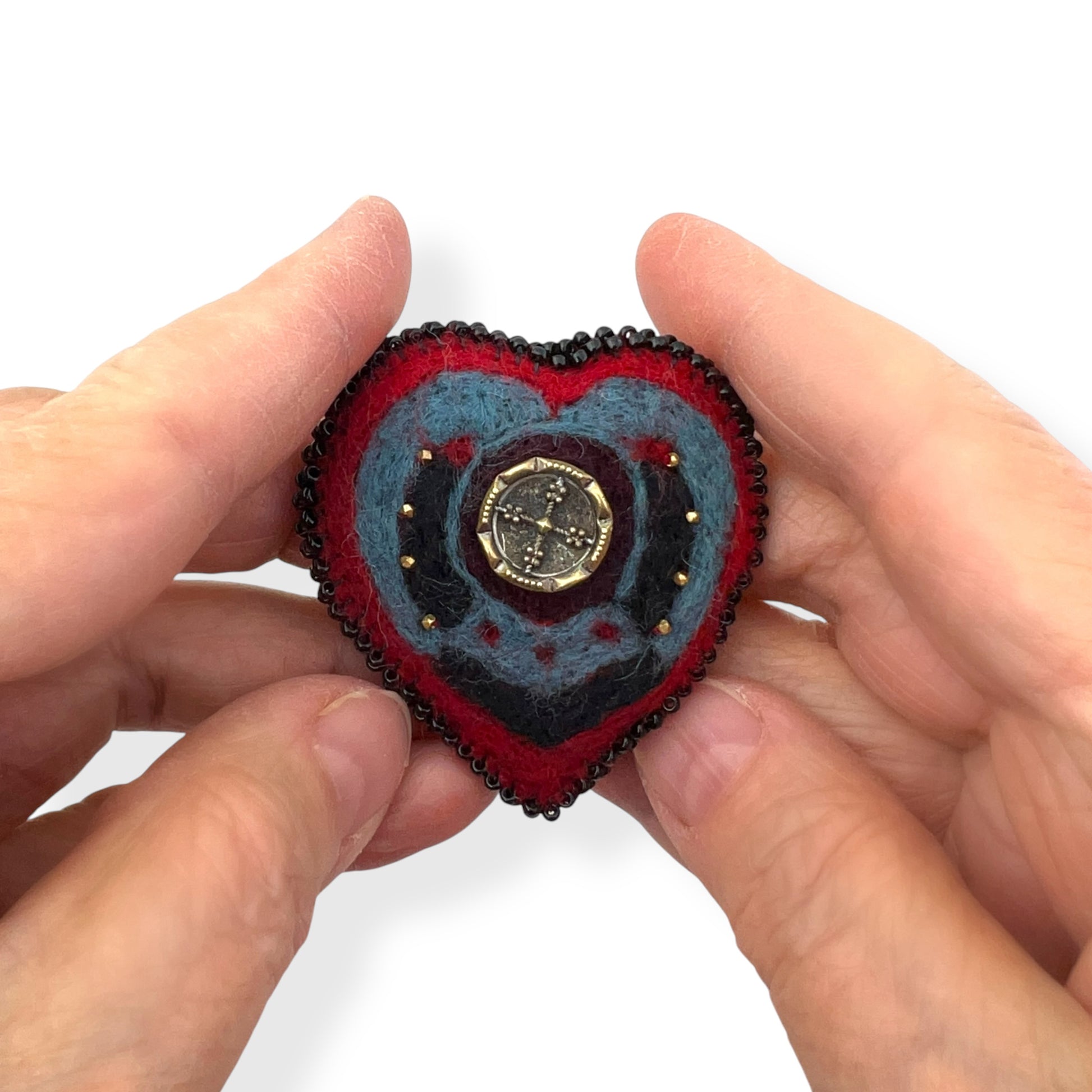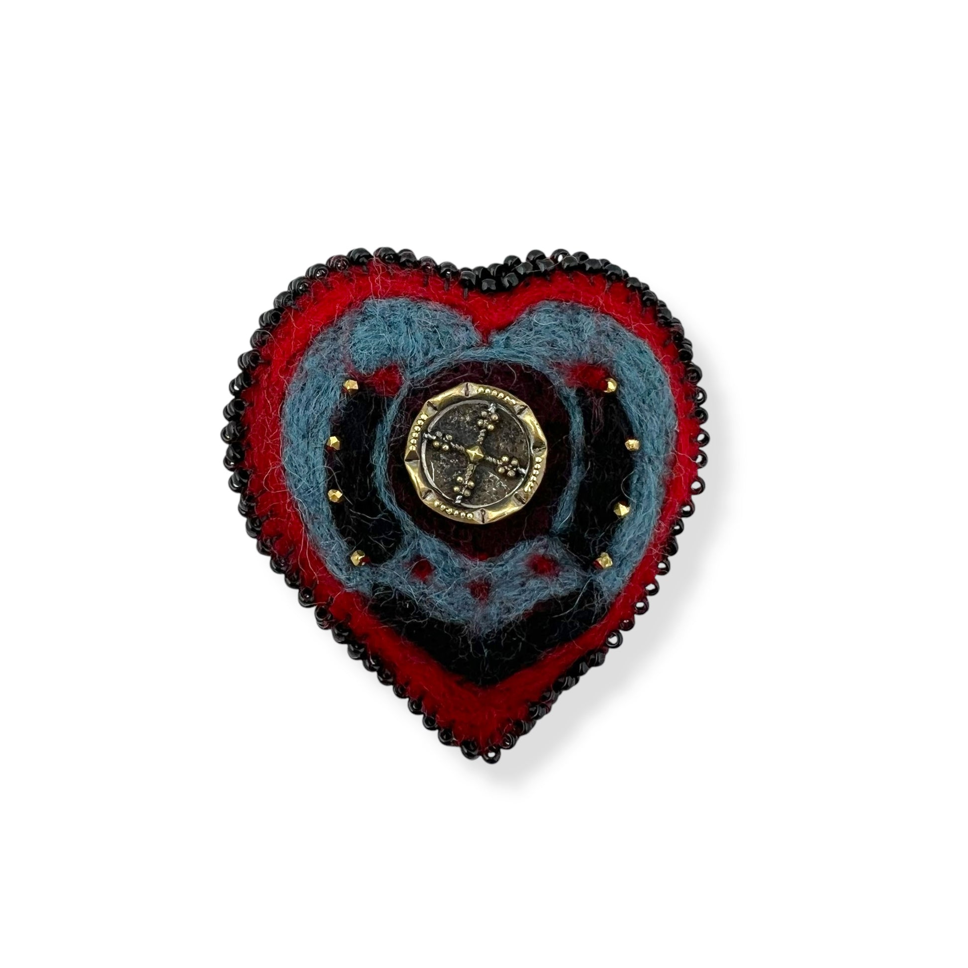 Red and Black Hand Felted Heart Brooch 2025 Edition #9