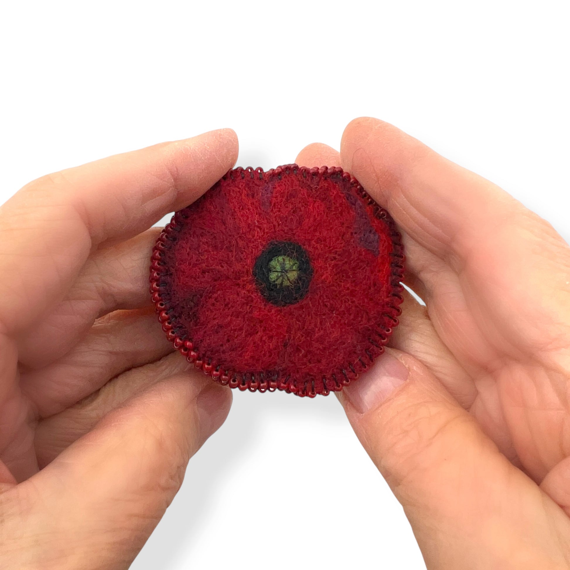 This red and black Poppy Flower Brooch was needle felted with an assortment of wool fleece colours.  A great pin for to wear during the Fall in remembrance of those that gave their lives during the last world wars.